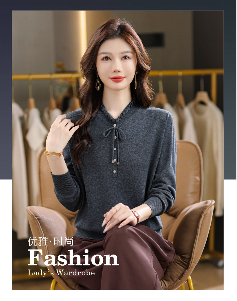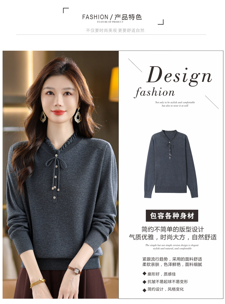 CC木耳领打底衫秋冬内搭漂亮洋气妈妈上衣2025新款宽松显瘦大码毛衣