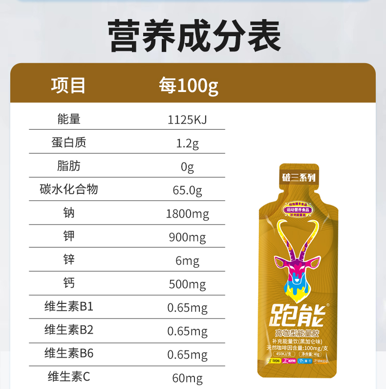 (65%高碳水版)跑能高咖能量胶40克(无防腐剂)(26年10月到期)
