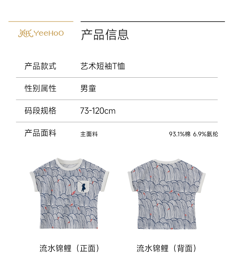 【商场同款】英氏男宝宝短袖T恤夏季新款圆领儿童上衣透气衫