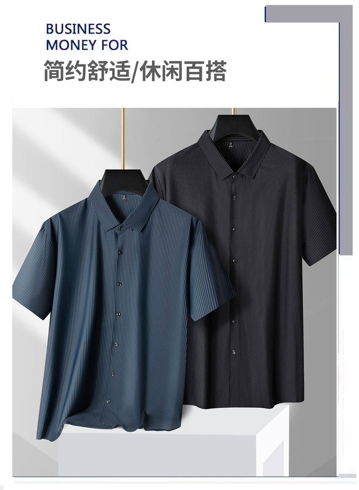 【DPS】大依优型大码男装夏季冰丝短袖衬衫商务休闲百搭上衣翻领衬衣男士