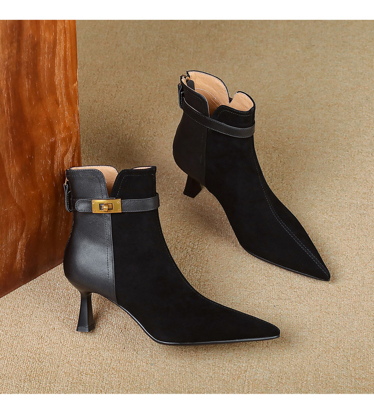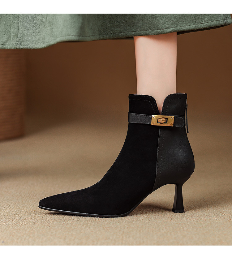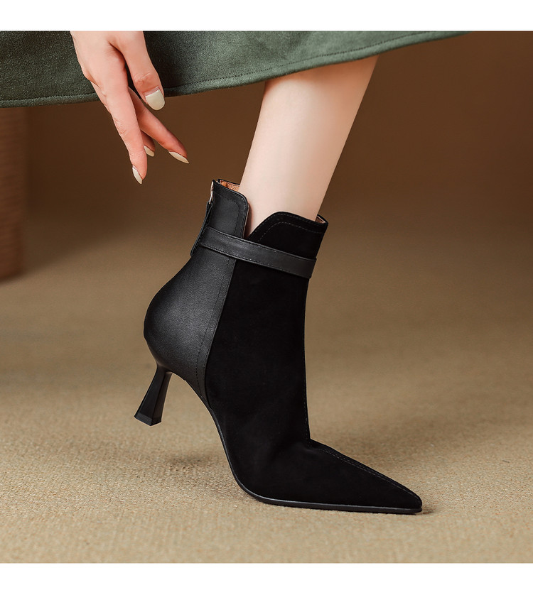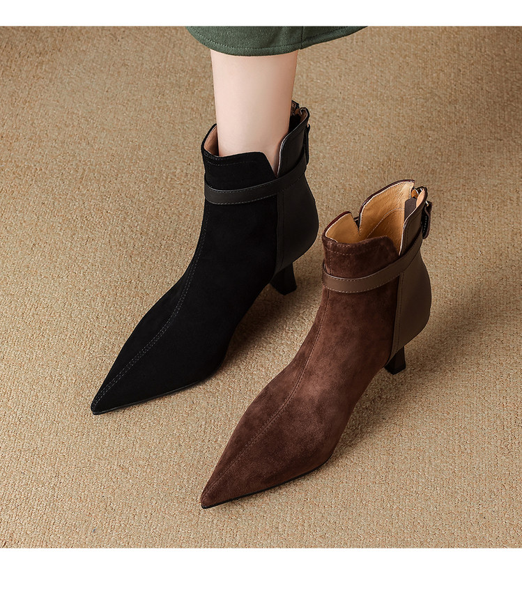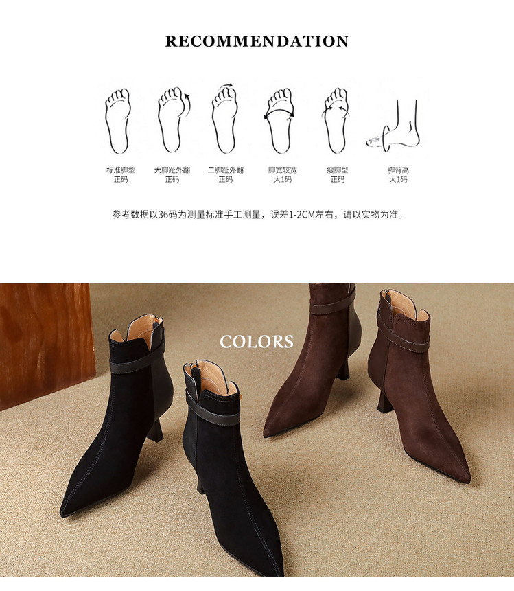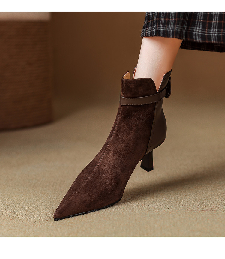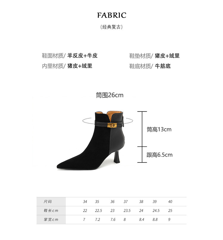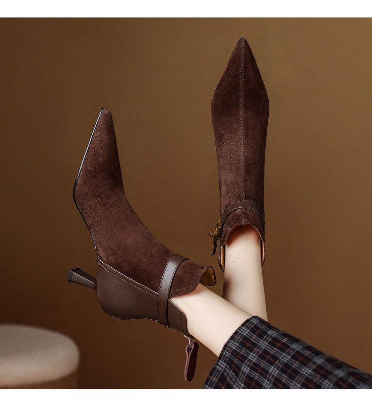 【预售5天】真皮气质翻毛皮绒面高跟鞋女靴,加绒尖头细跟短靴SLLK&sl-8138