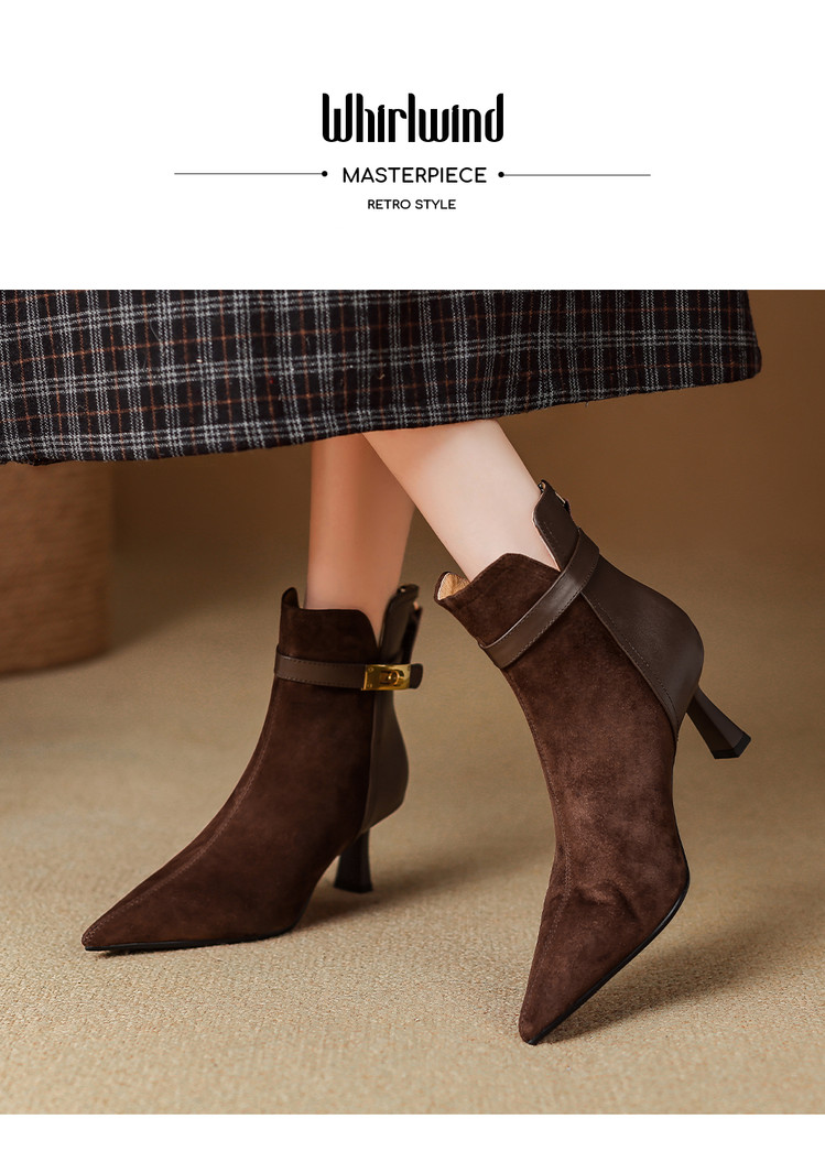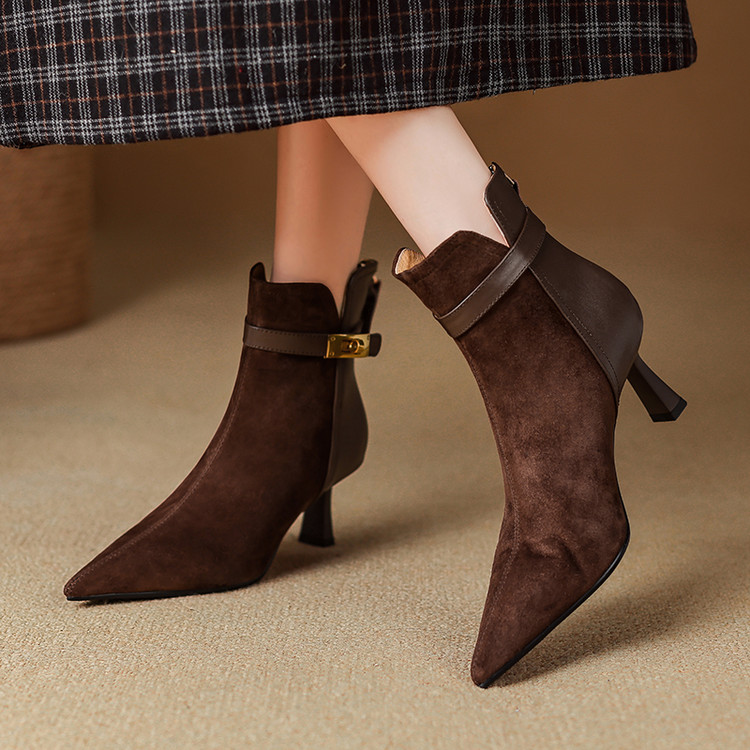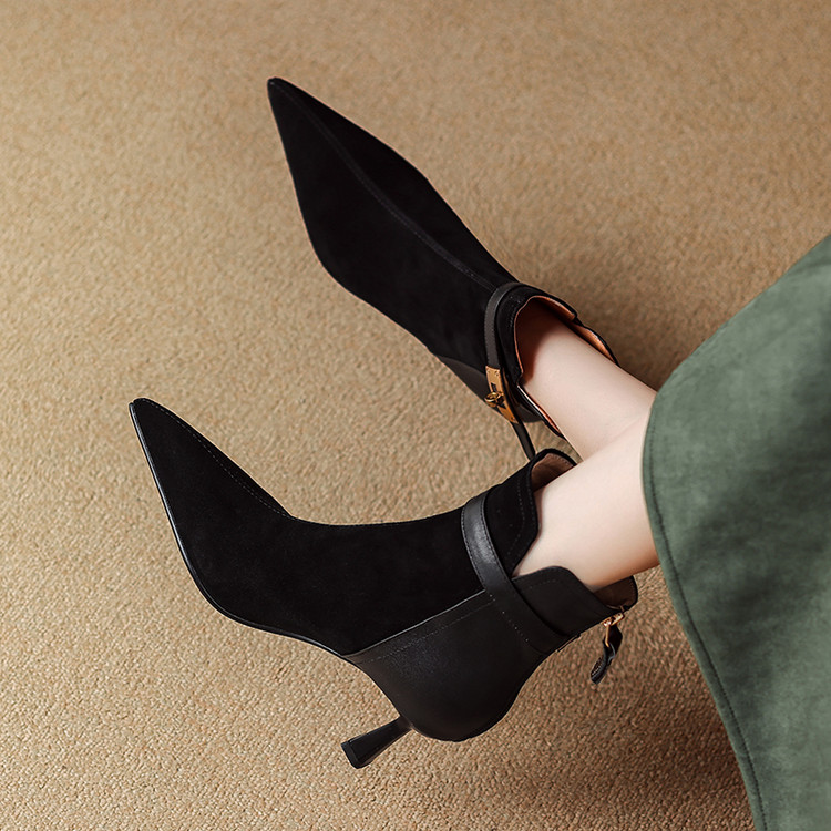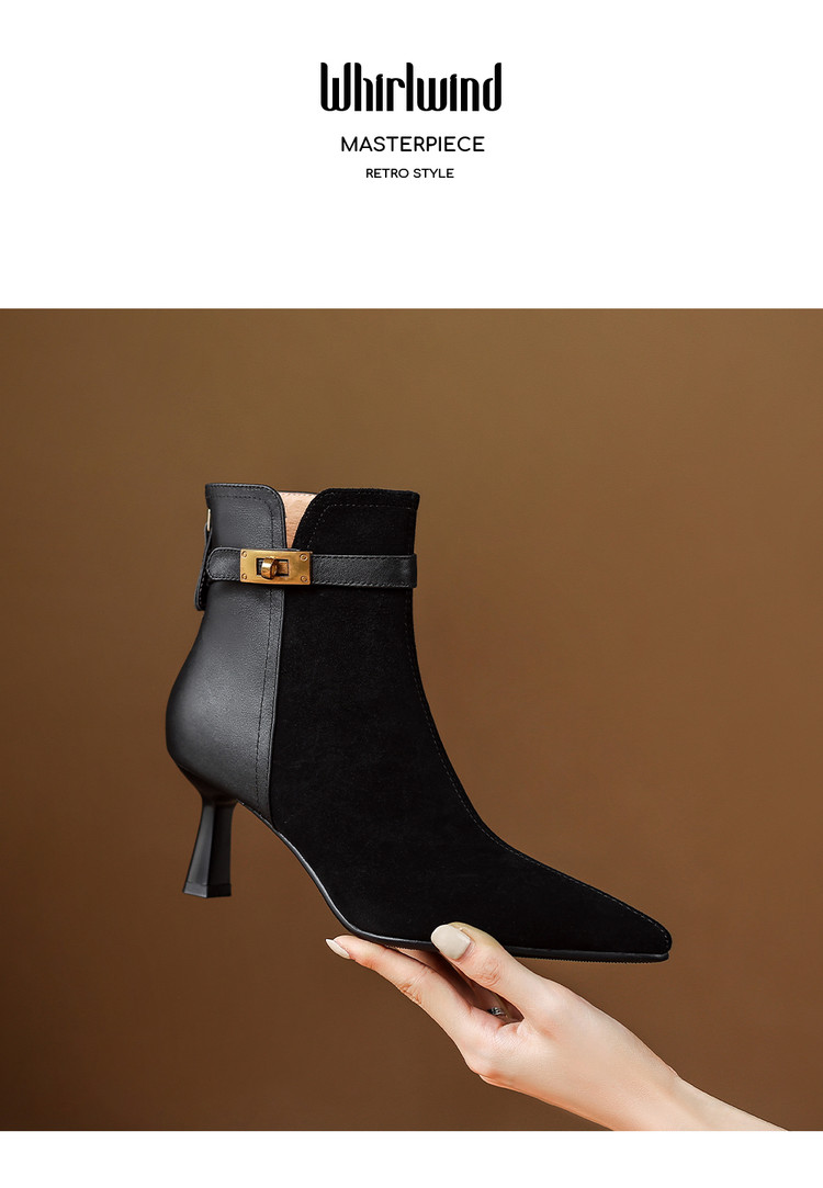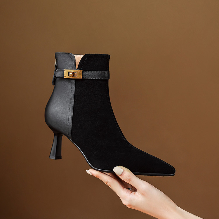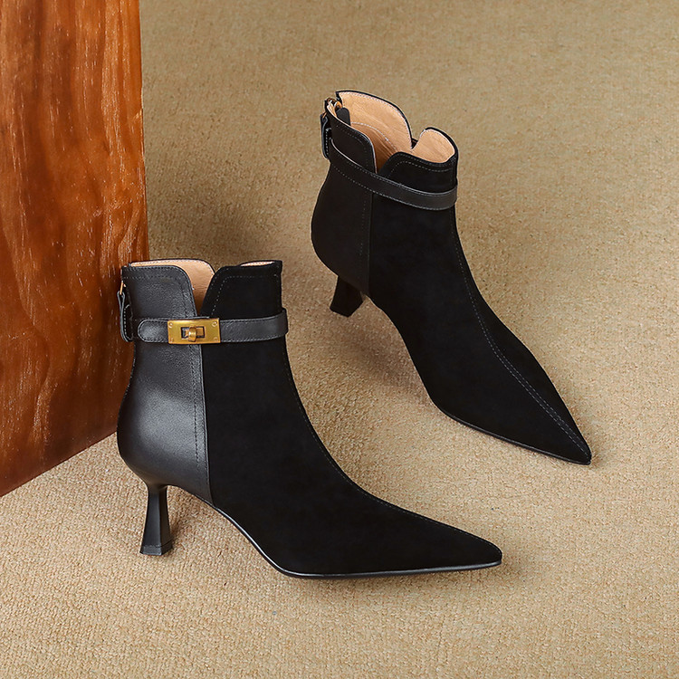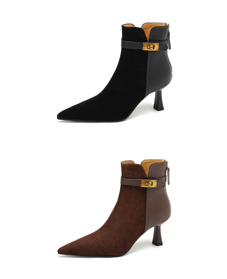 【预售5天】真皮气质翻毛皮绒面高跟鞋女靴,加绒尖头细跟短靴SLLK&sl-8138