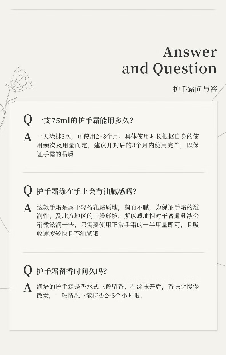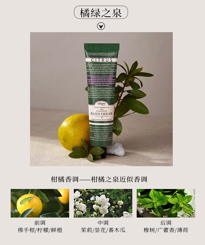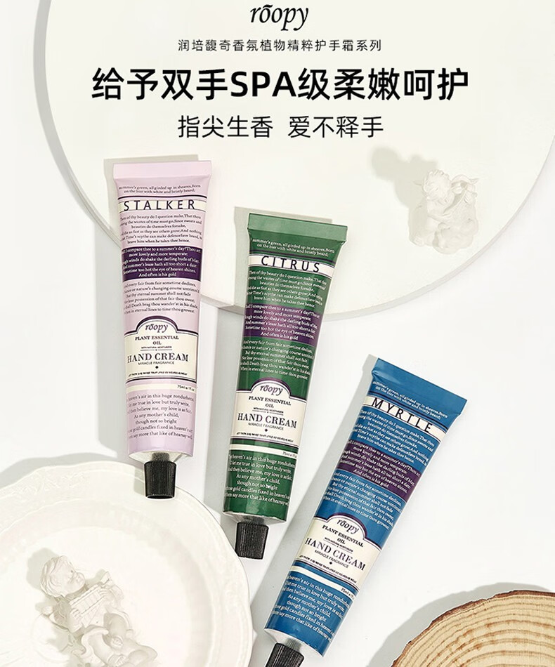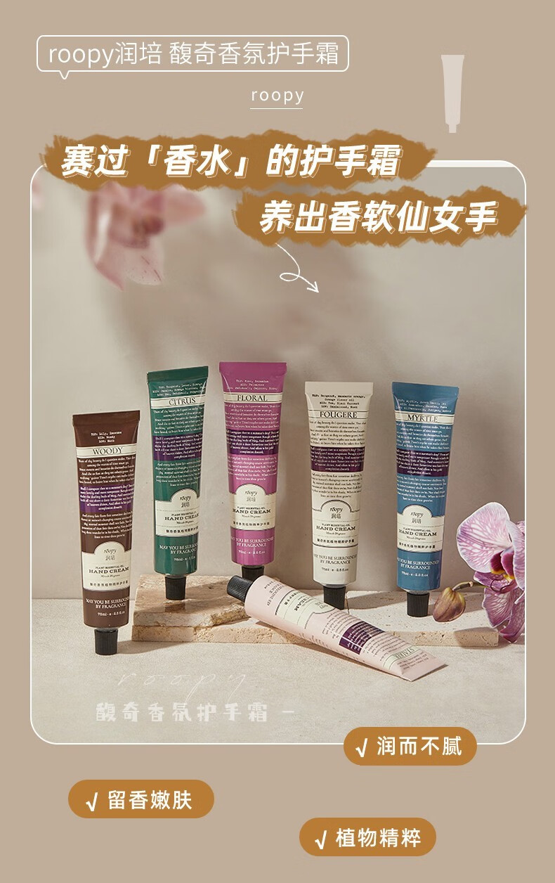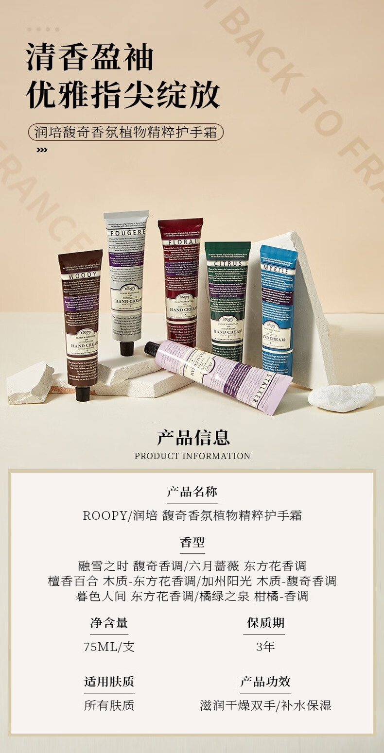 润培roopy香氛保湿滋养护手霜75ml 清爽植物精粹秋冬滋润补水