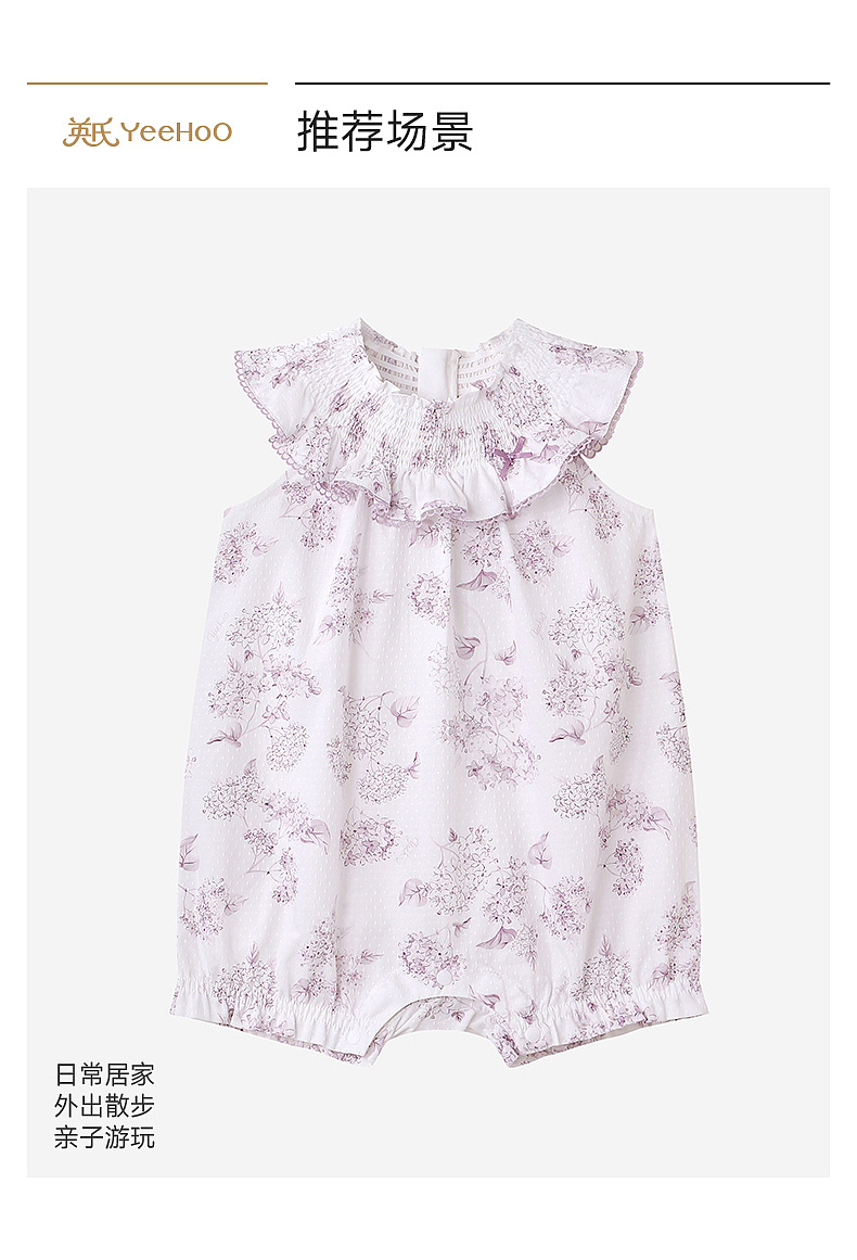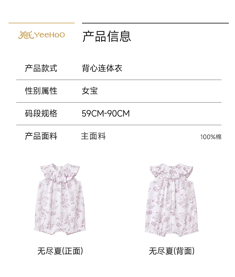 【商场同款】英氏女宝背心连体衣夏新款透气爬服婴儿纯棉短袖哈衣