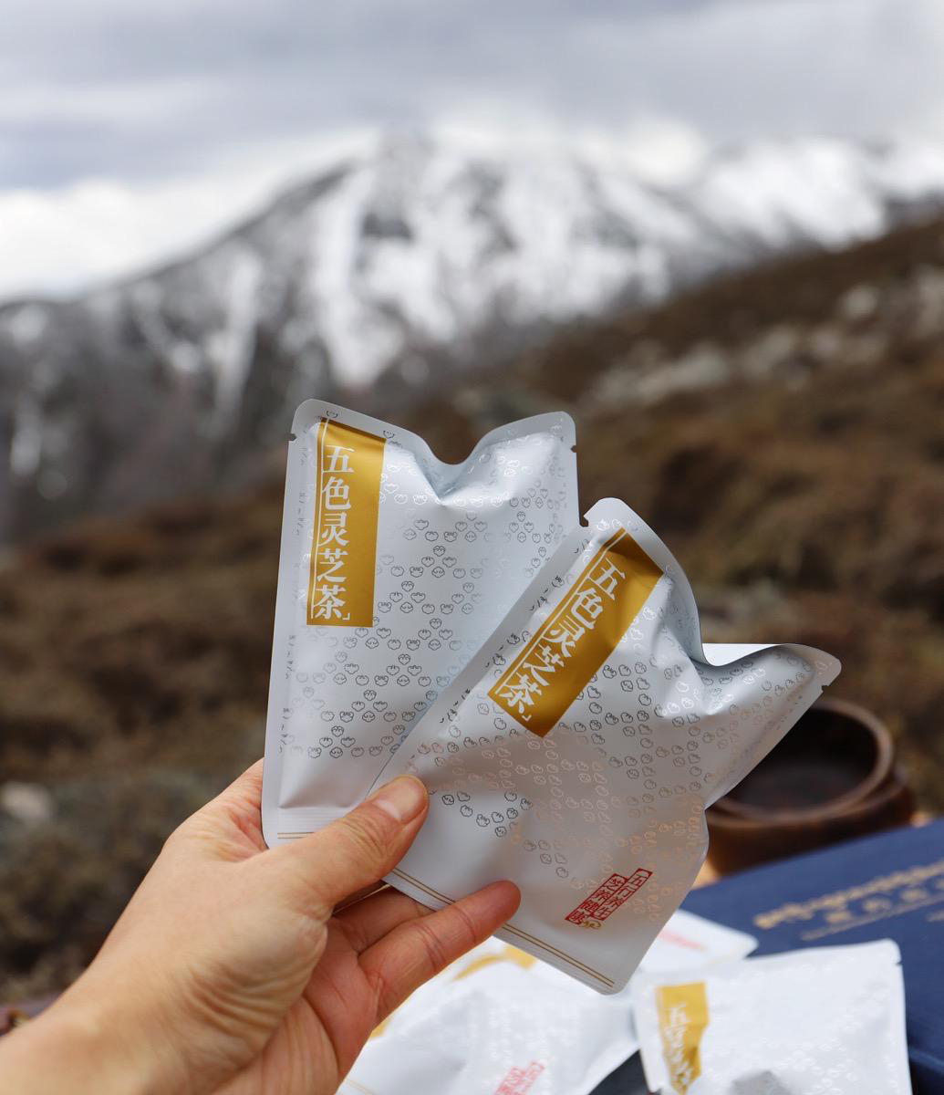 放入五色茶包等水开颜色金黄即可饮用,口感清爽回甘,浓浓菌香味。