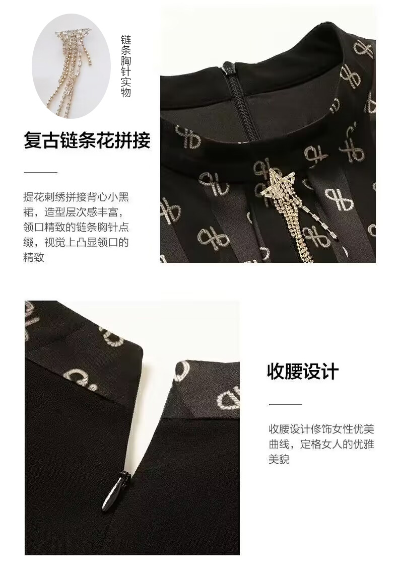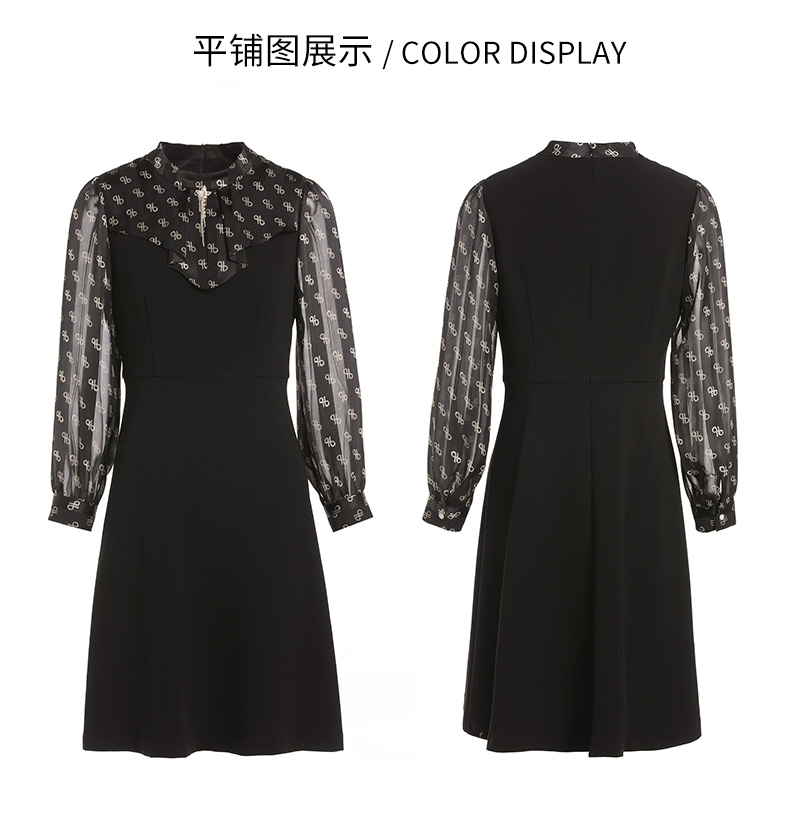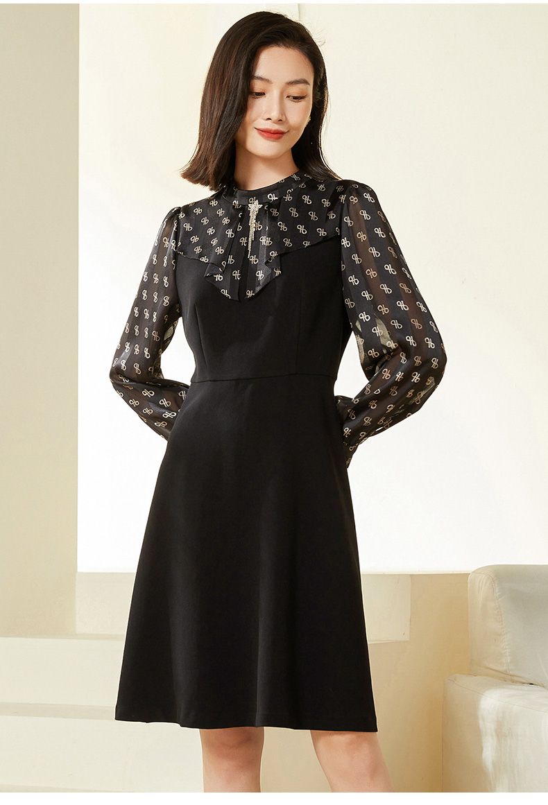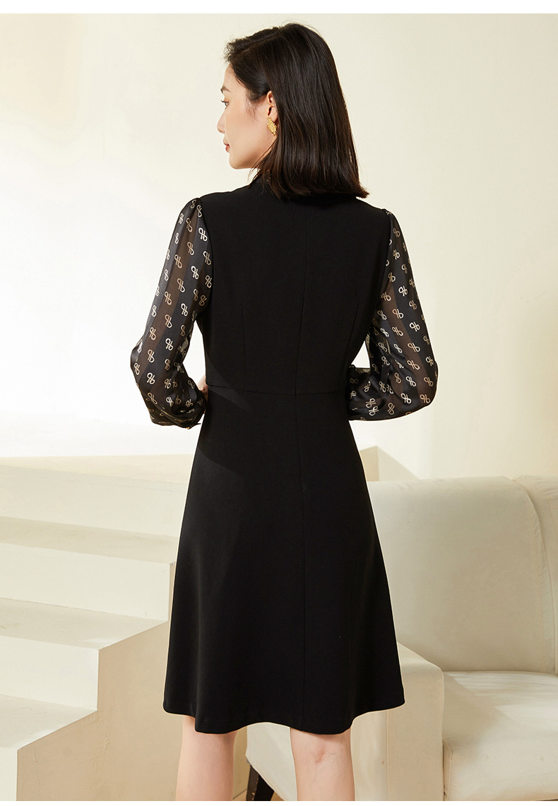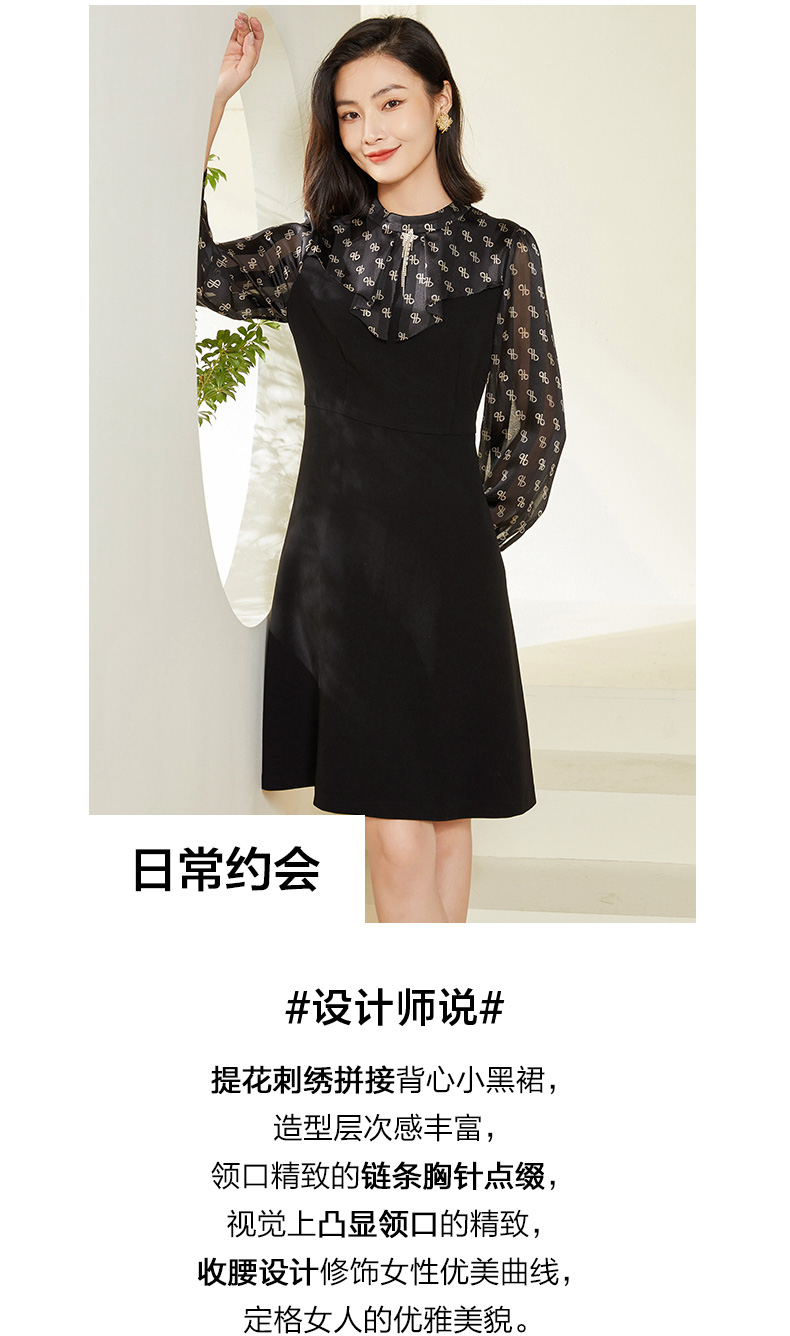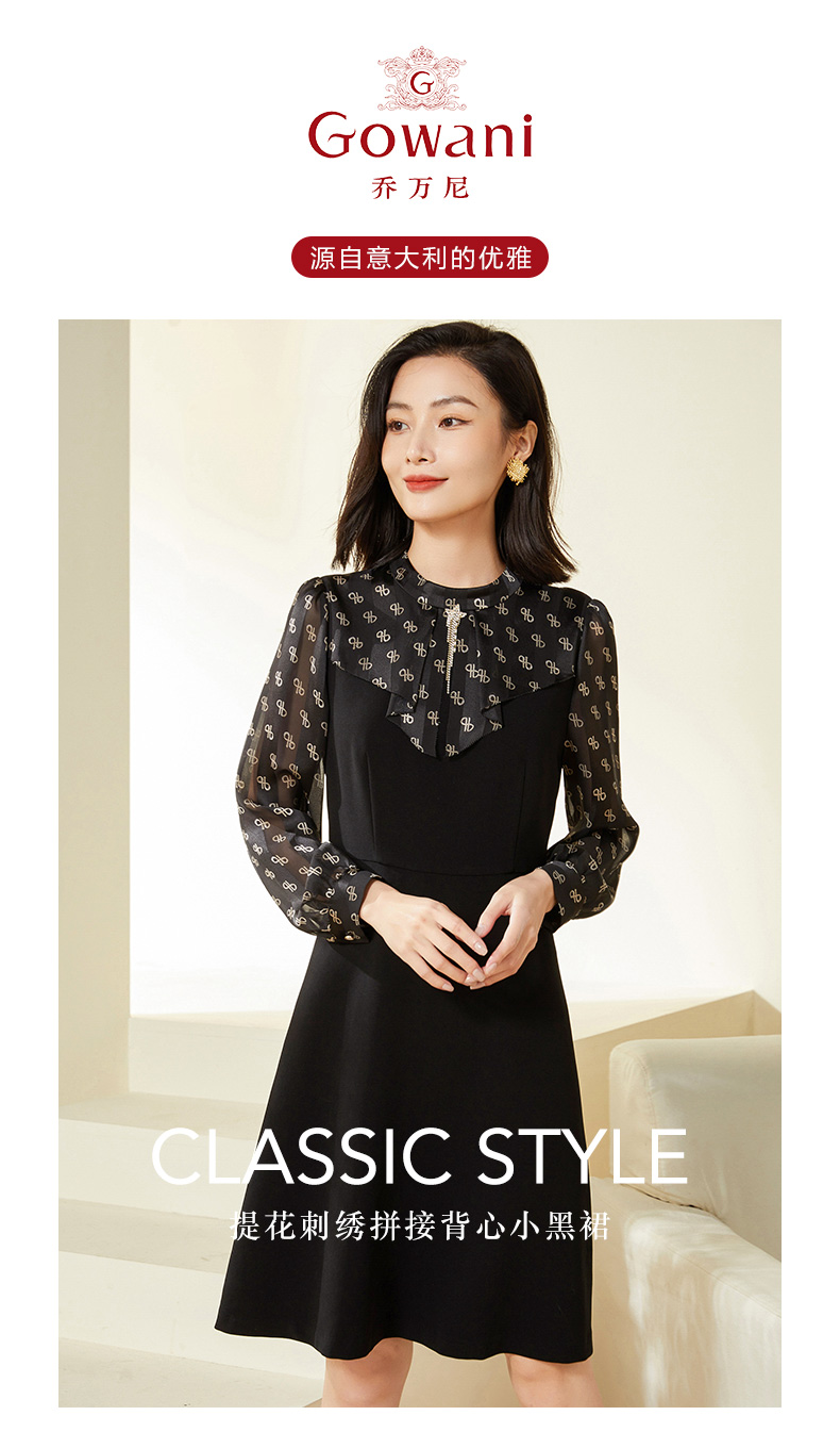 乔万尼春装新款显瘦减龄连衣裙法式收腰小黑裙长袖EF3E857