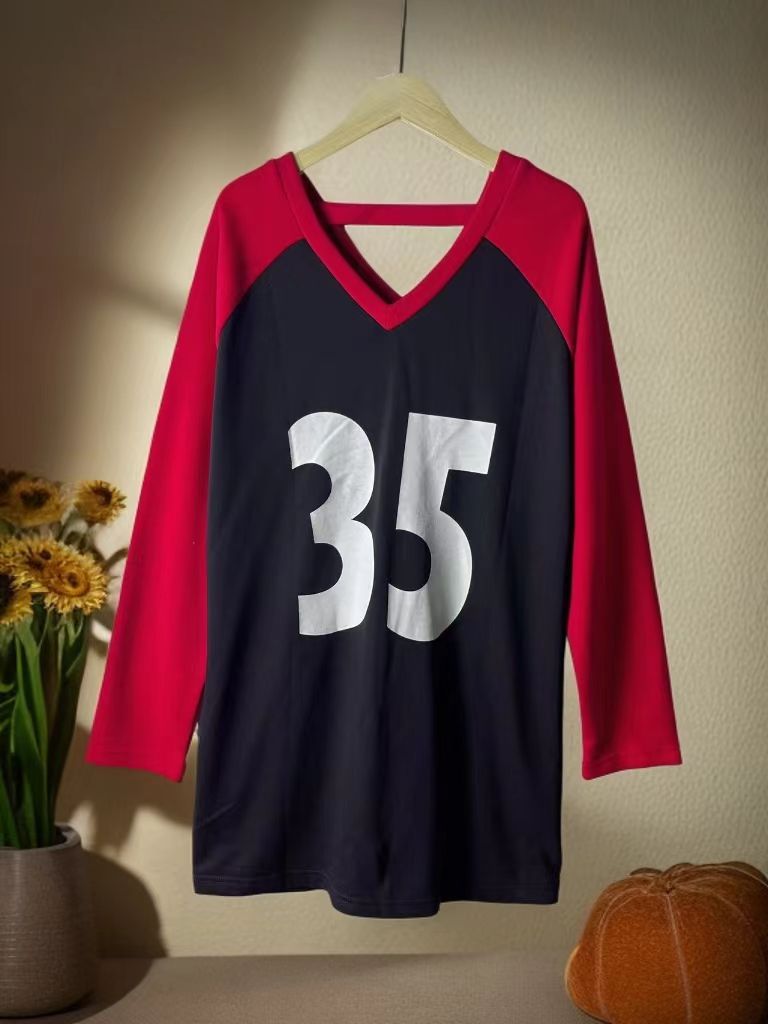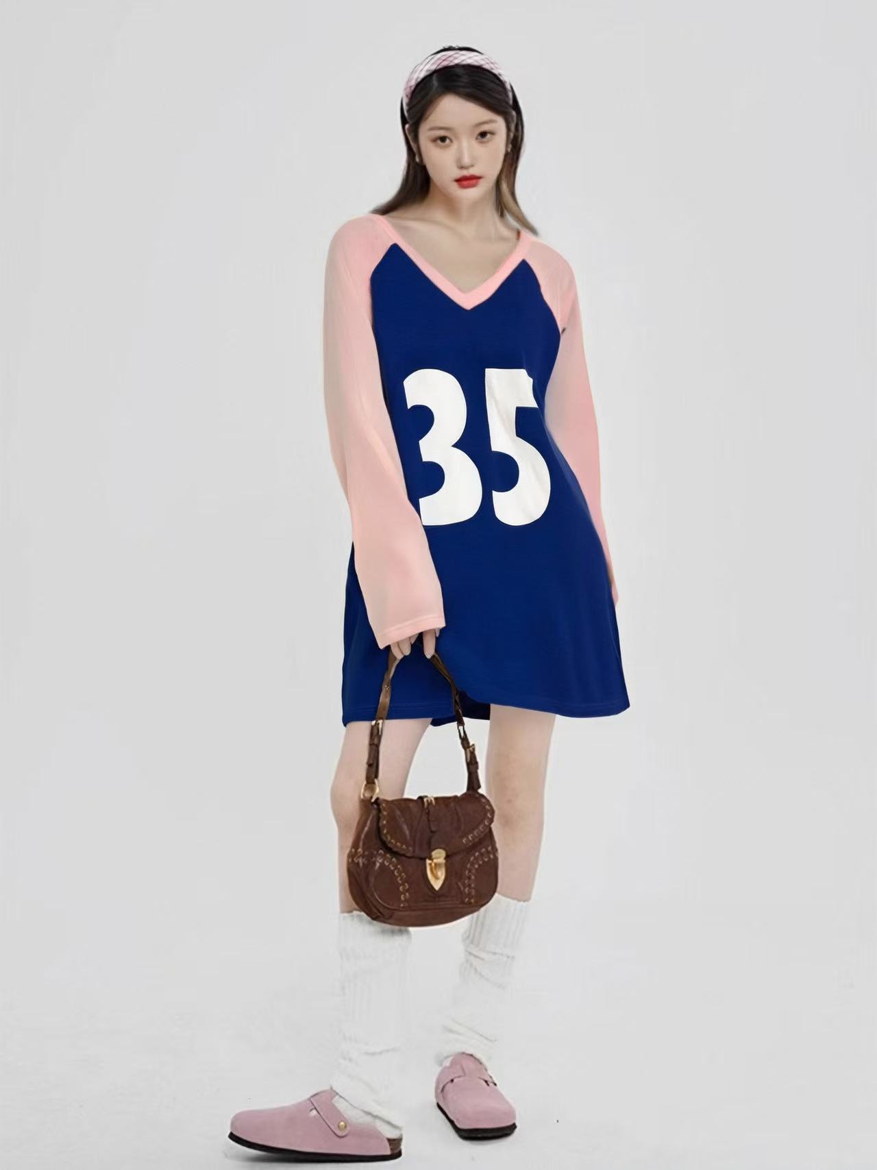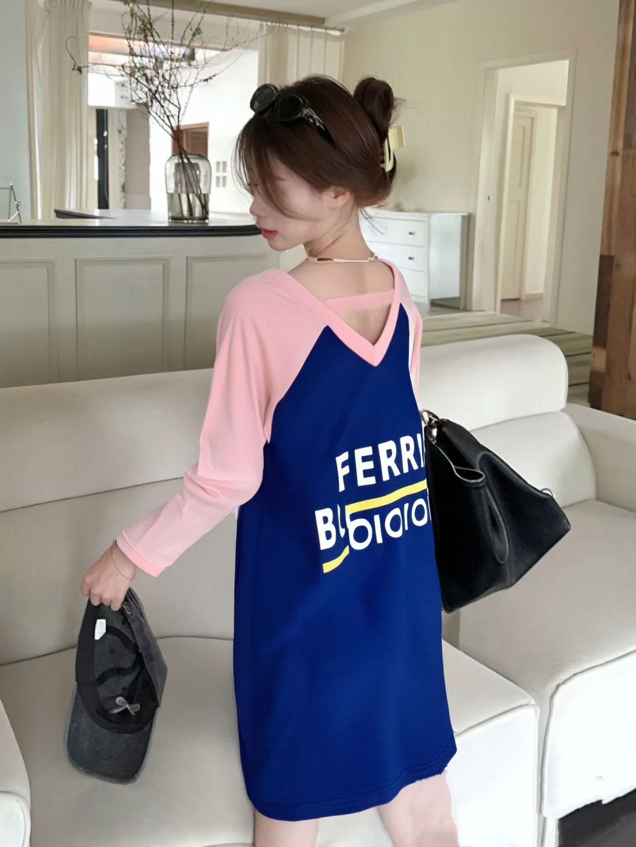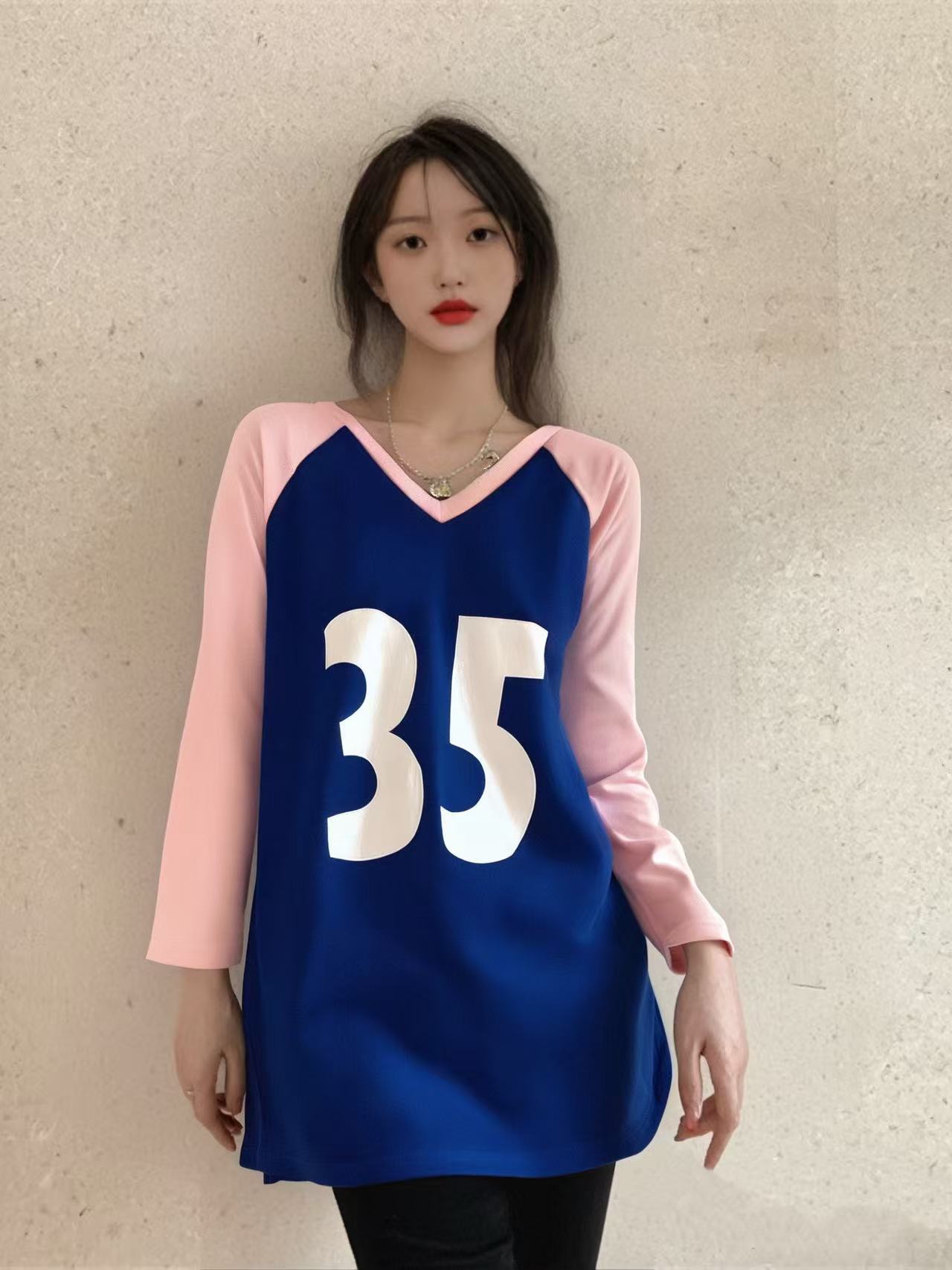 【诗铭洛可】0278长袖卫衣插肩袖V领撞色中长卫衣A6-1