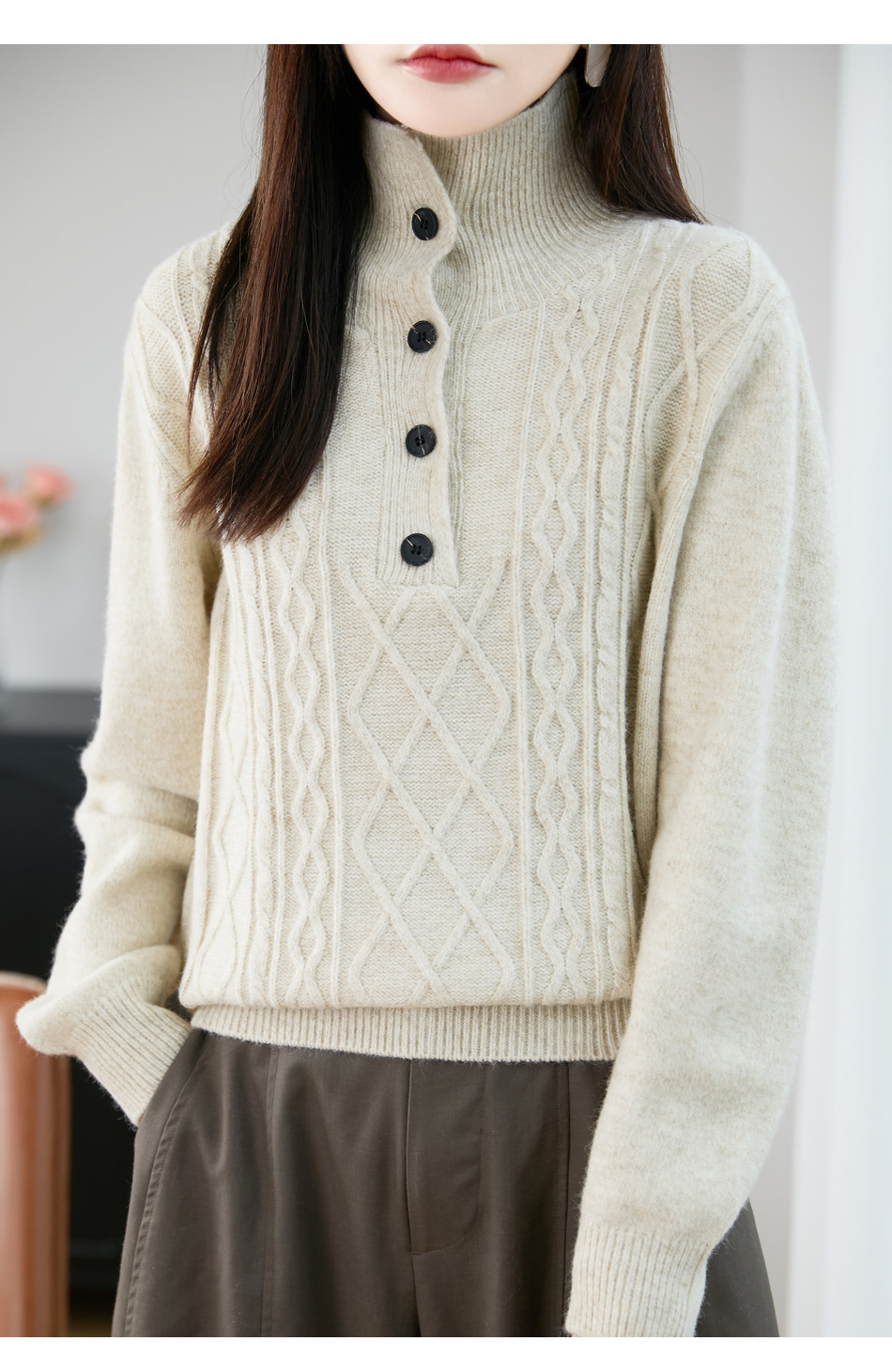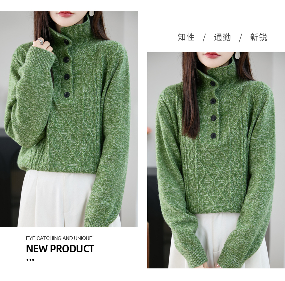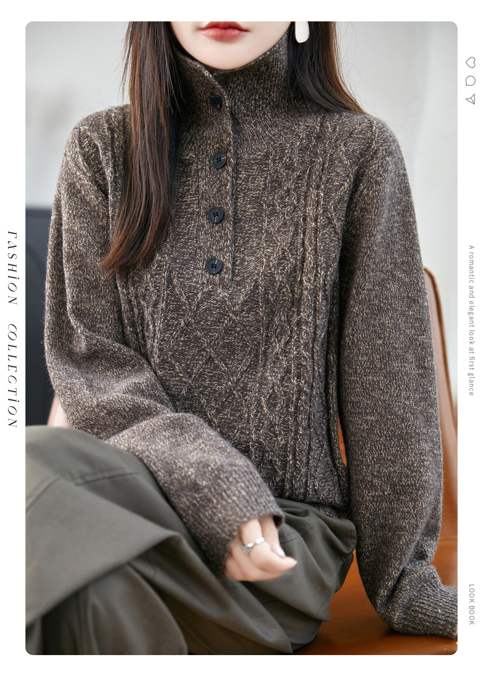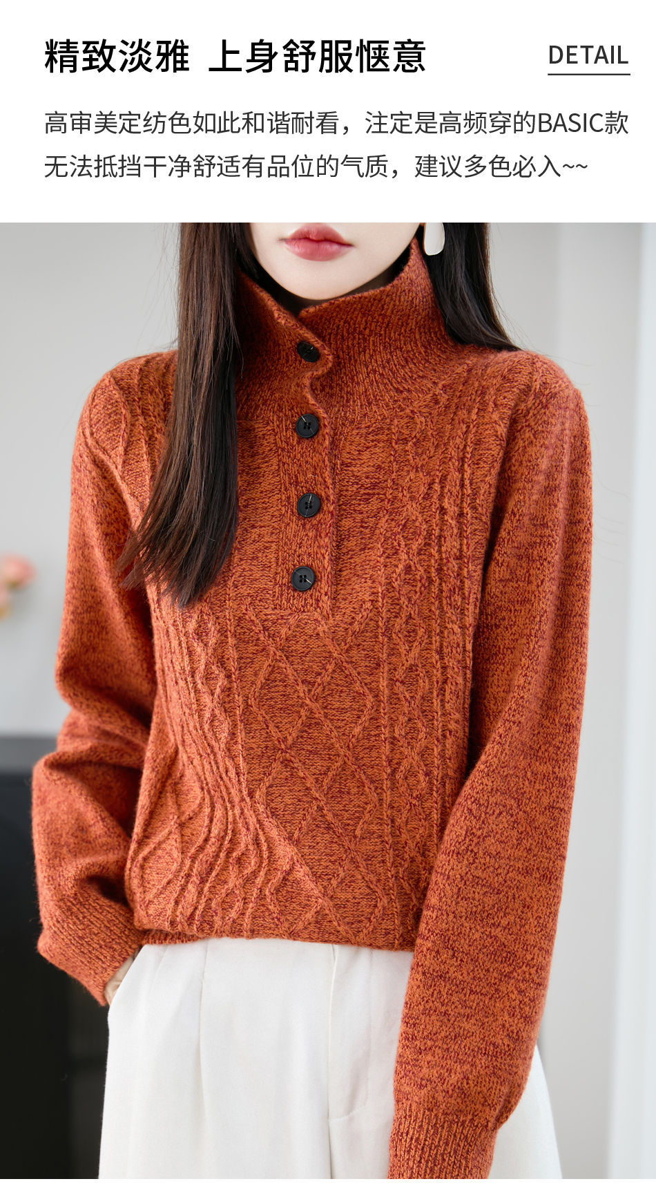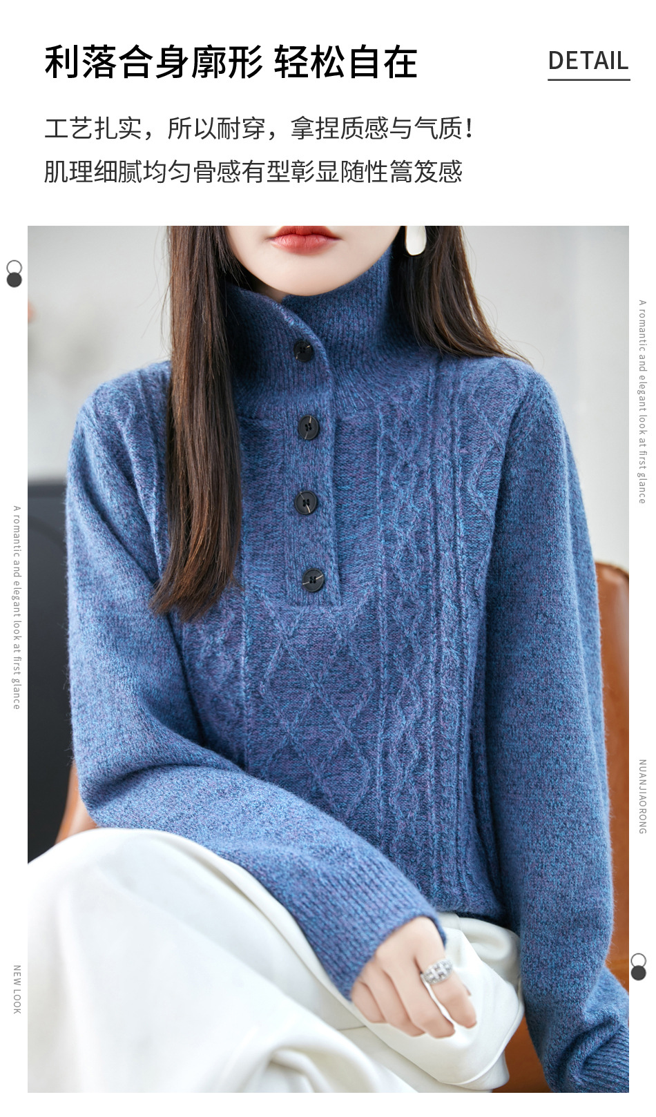 设计感纽扣高领加厚毛衣,外穿复古绞花打底针织衫上衣NJR-2130-52