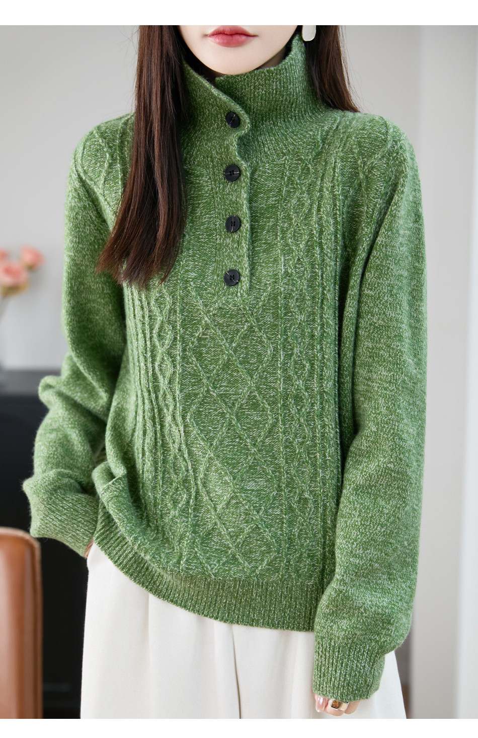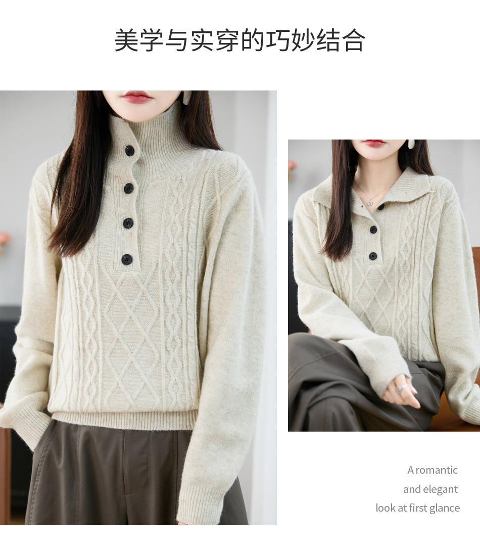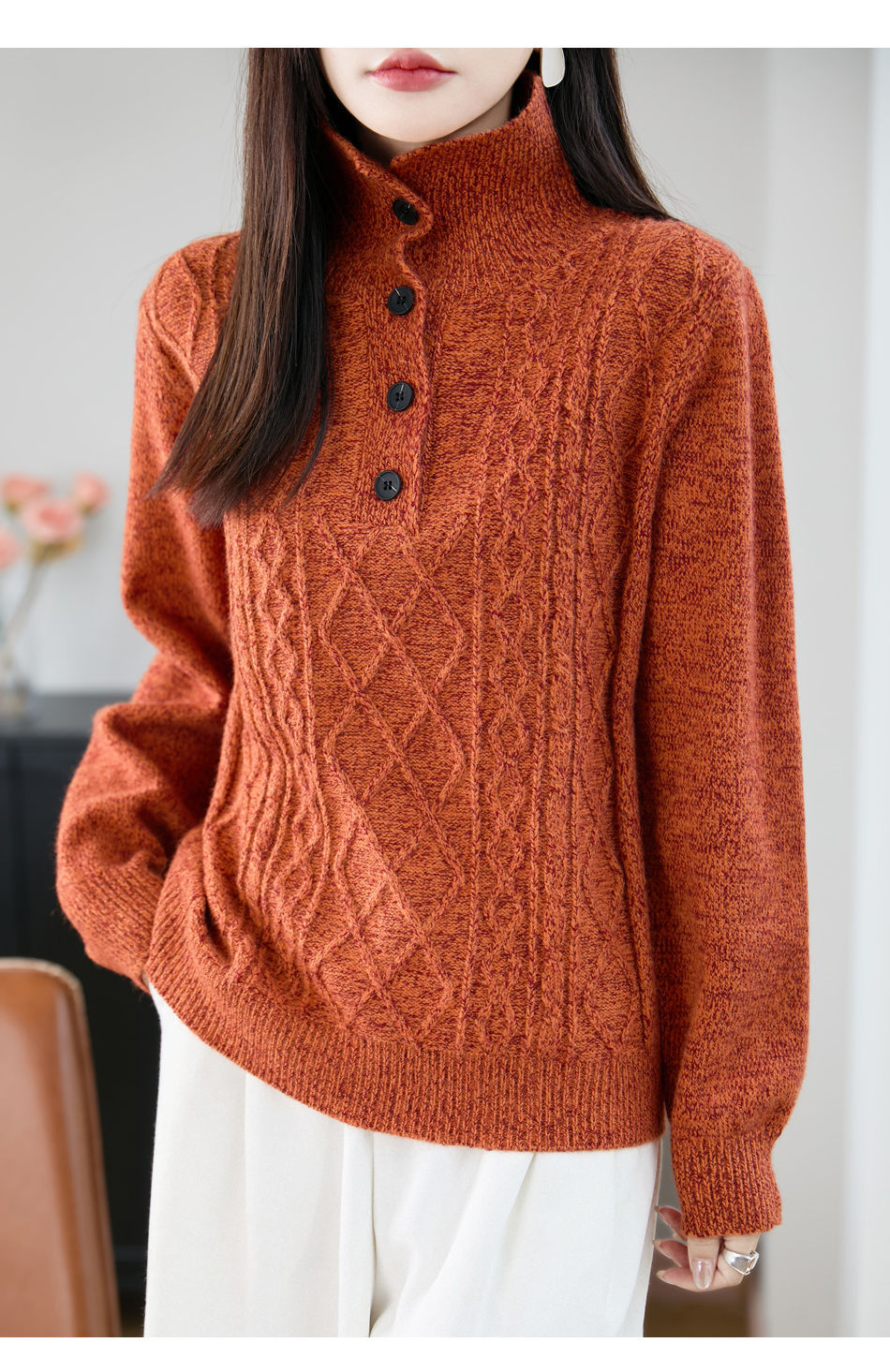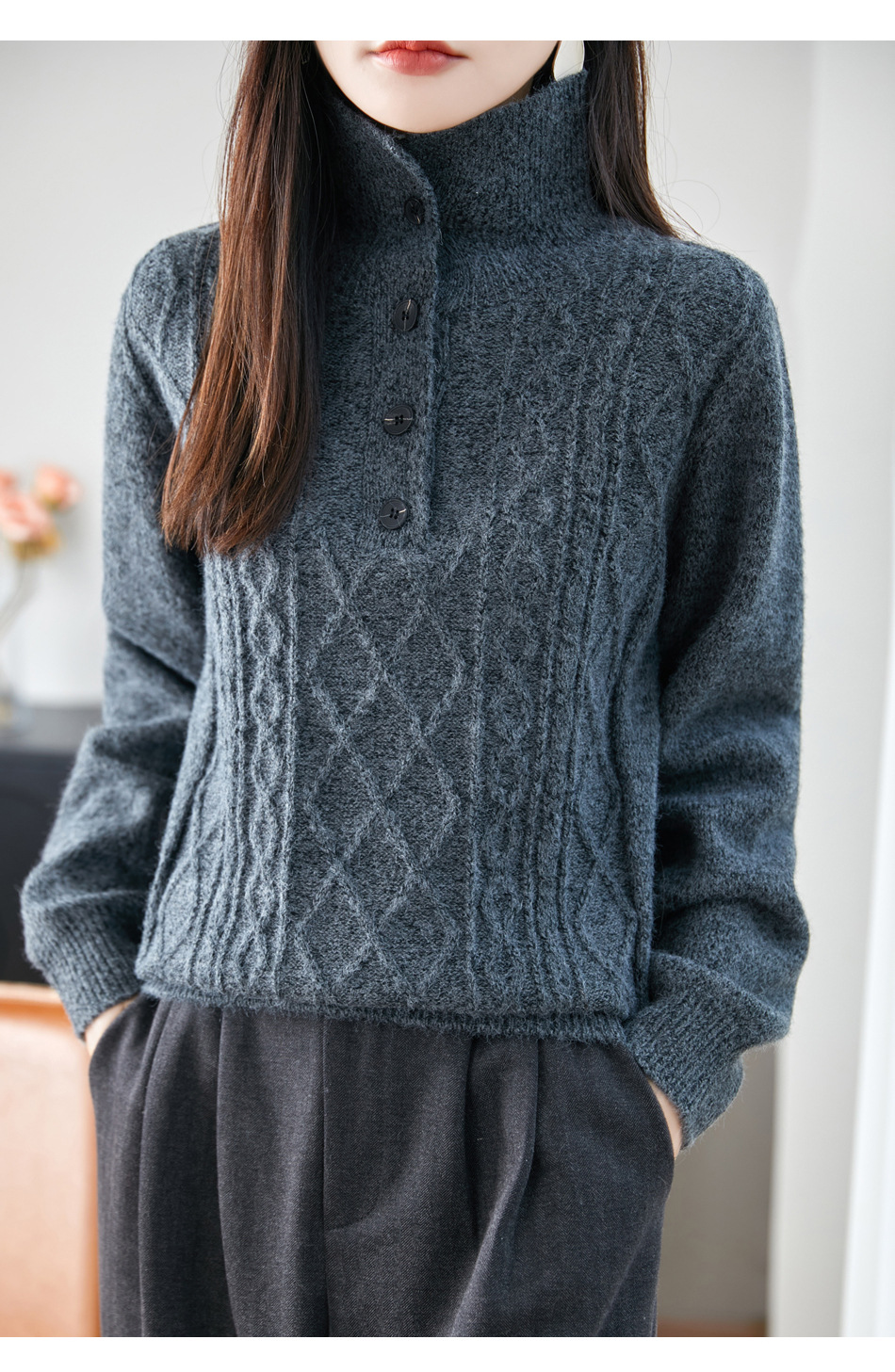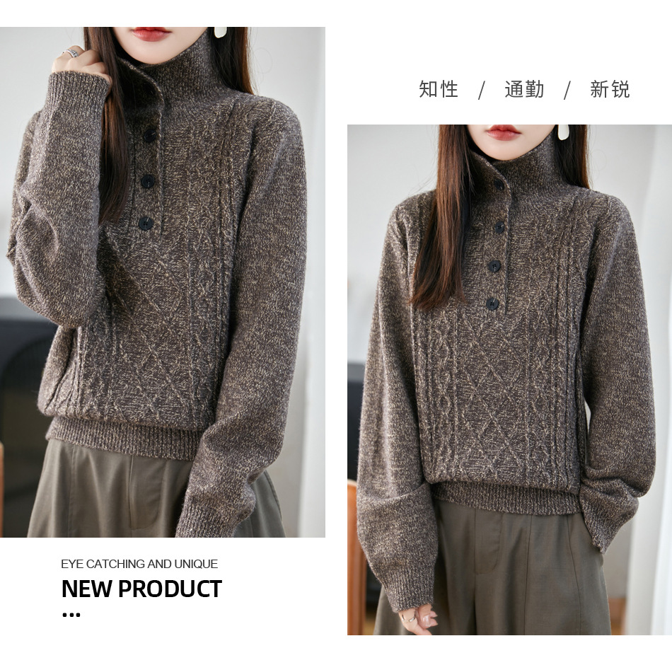 设计感纽扣高领加厚毛衣,外穿复古绞花打底针织衫上衣NJR-2130-52