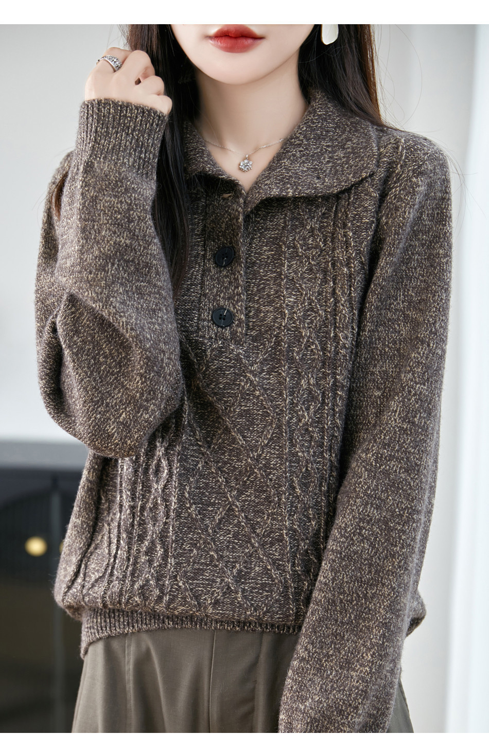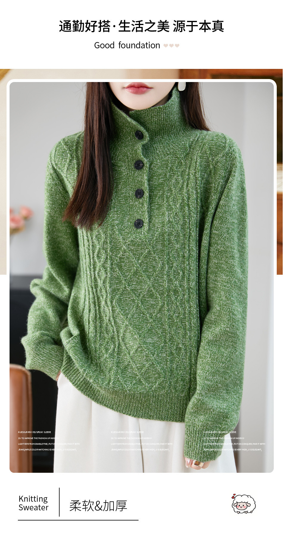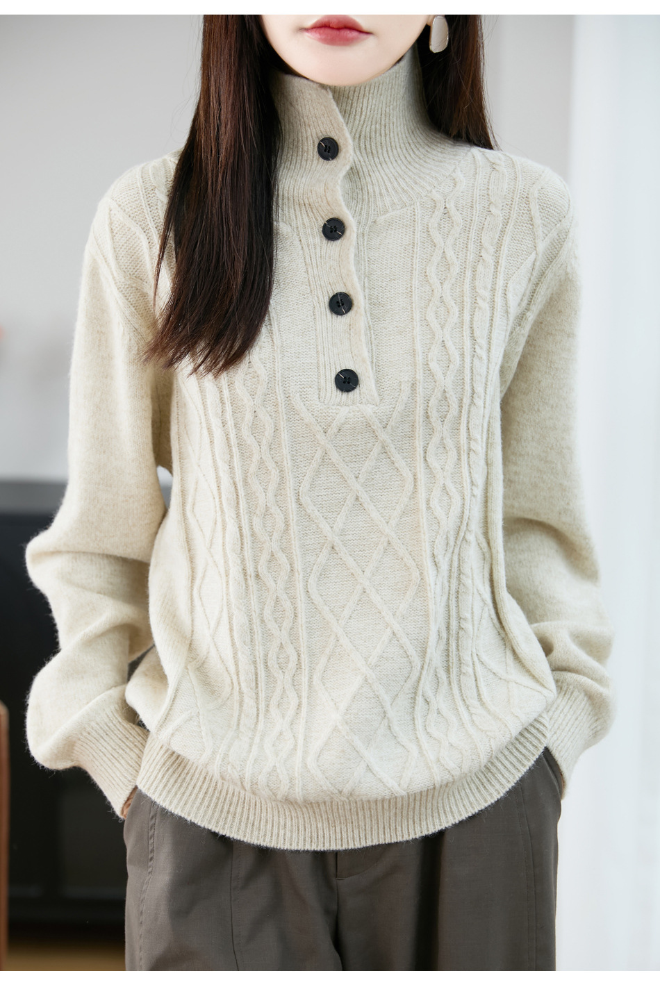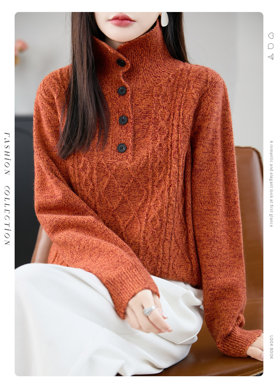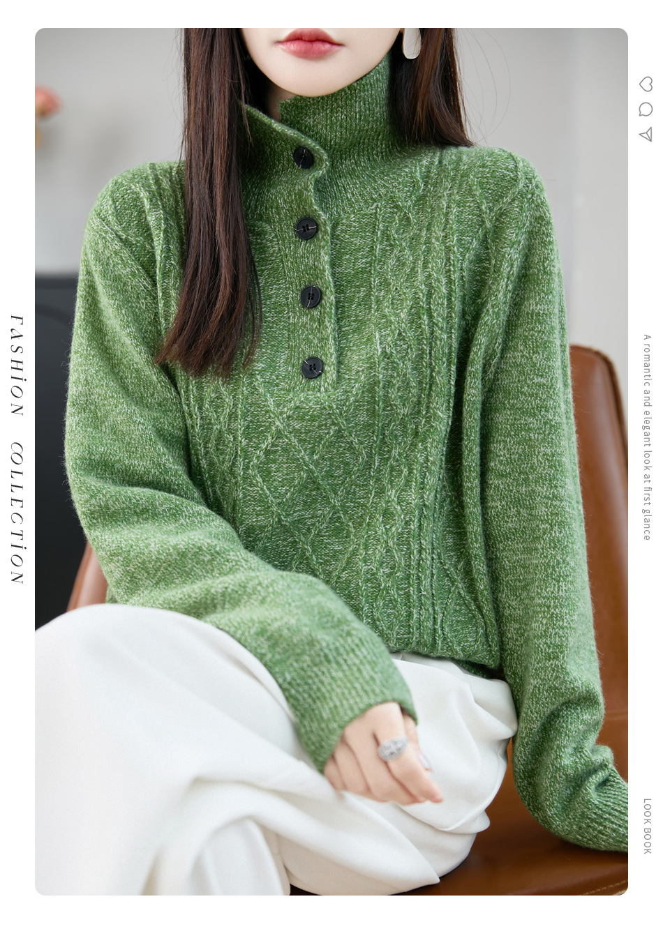 设计感纽扣高领加厚毛衣,外穿复古绞花打底针织衫上衣NJR-2130-52