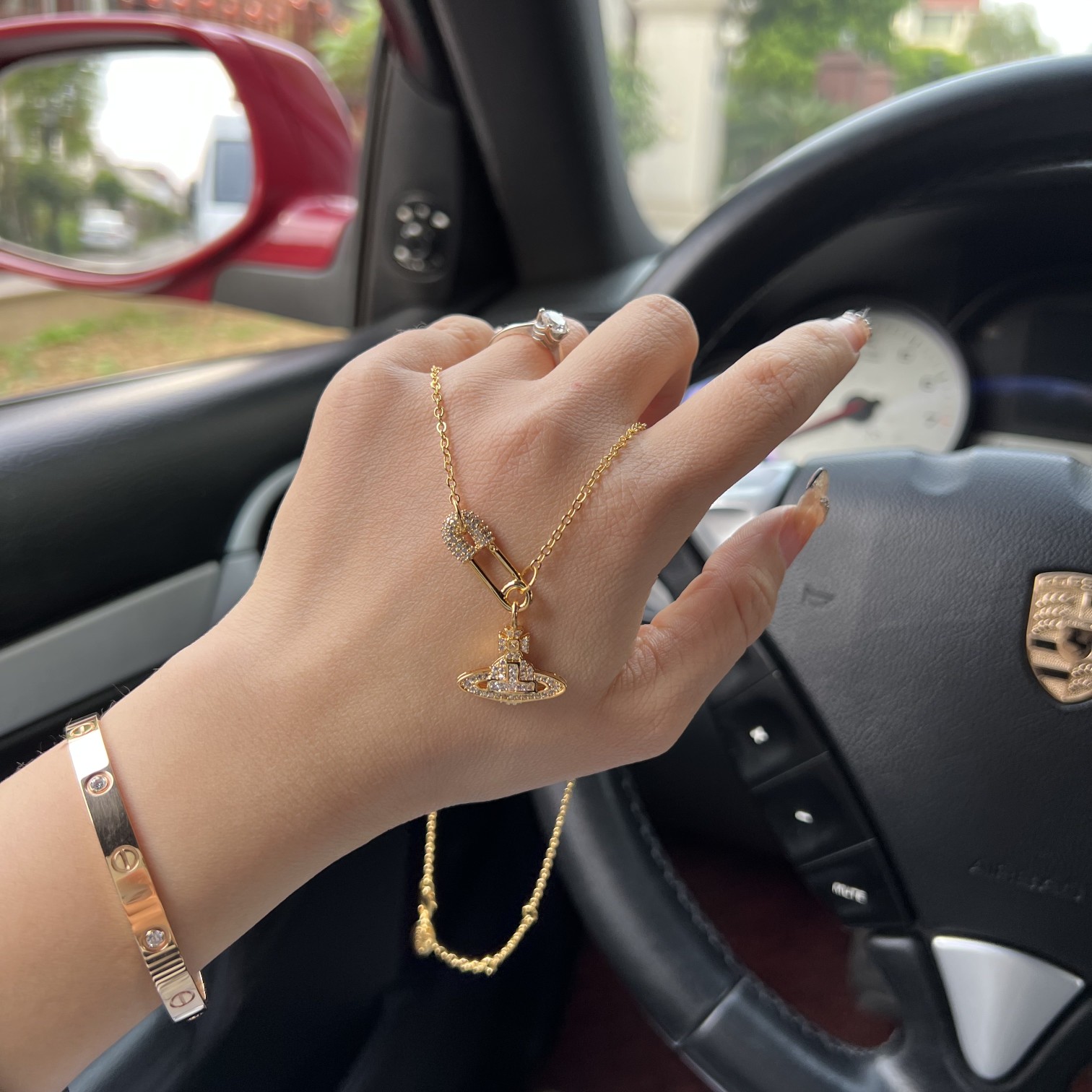 【VivienneWestwood】西太后绝美别针土星项链,金色,Z包装没做,重磅推荐,一定要整套入,闭眼入准没错!纯粹王冠球是经典的象征,闪耀土星环勾勒未来波光流转间,开启一场与未来的崭新际遇!土星上边的钻采用定制的施华洛水钻,拿到手完完”全全可以感受到它的质感,手感超nice👍🏻用水钻的点缀出现在土星的设计上,增添不少冷艳时髦的俏丽模样,使得朋克同时又有点小少女,自带一群时尚粉!真的敲好看,可盐可甜,可纯可欲!一眼便钟情,绝对是“实用+高级”界的杠把子,绝对的yyds,绝对的宝藏永不过时的珍珠项链!