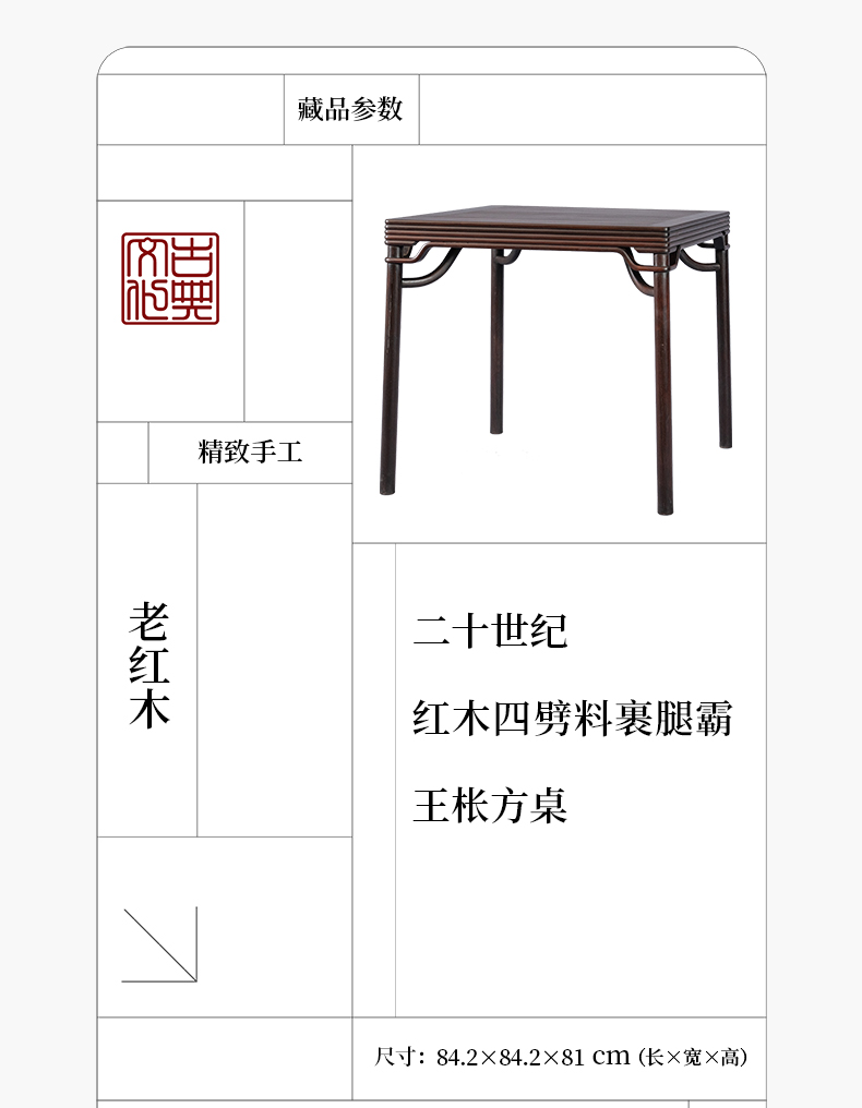 二十世纪 红木四劈料裹腿霸王枨方桌