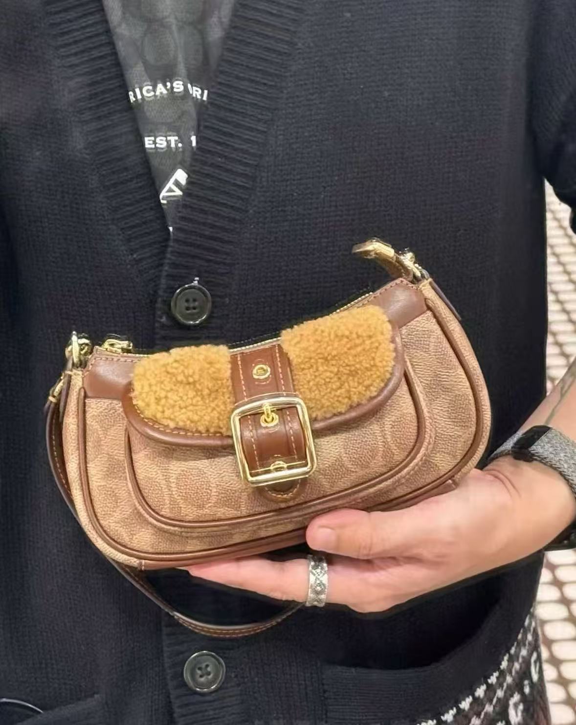 复古设计👍焦糖色➕可爱绒绒包,尺寸19.6*8.9*5.7cm