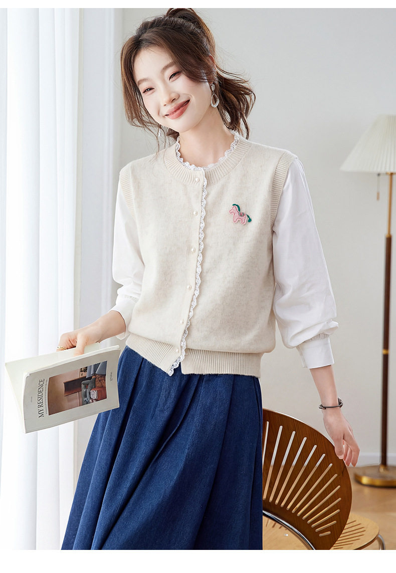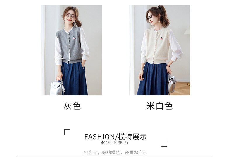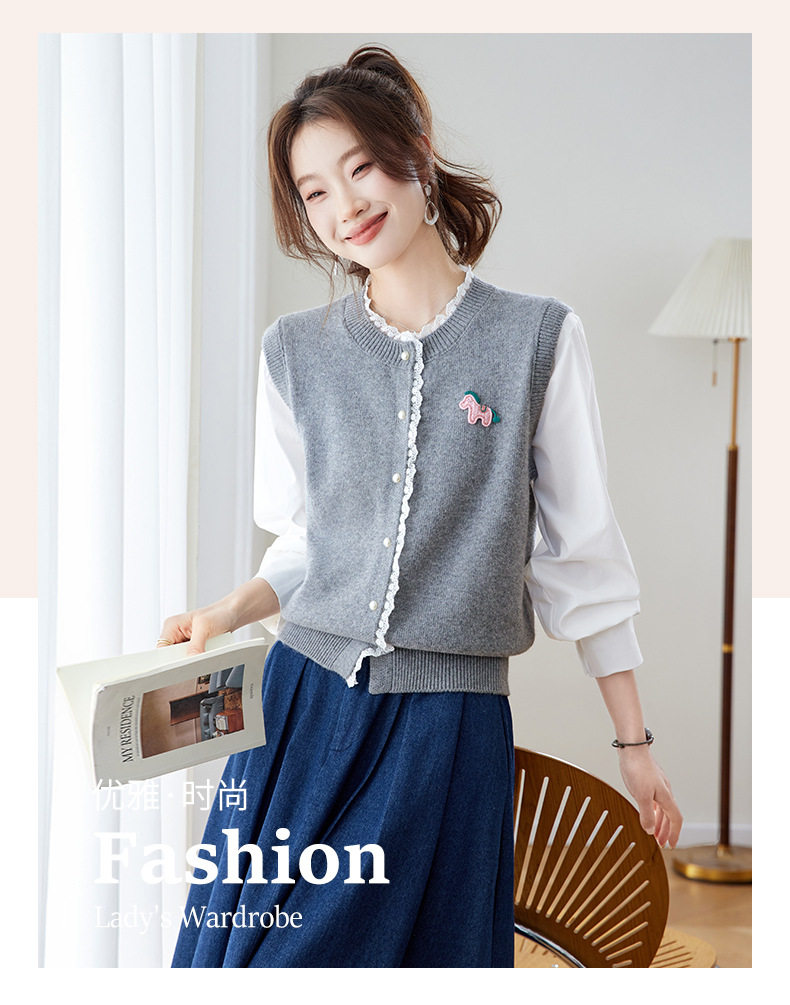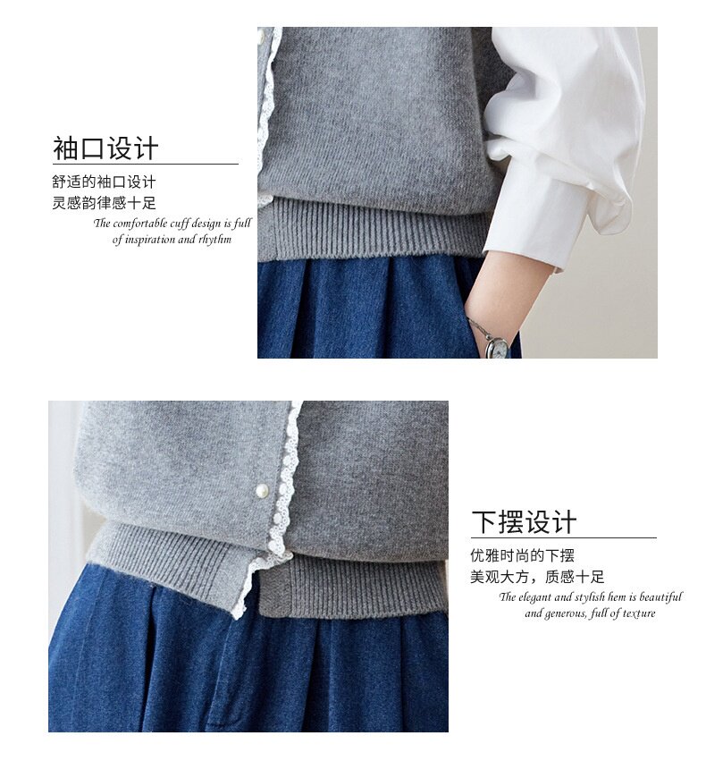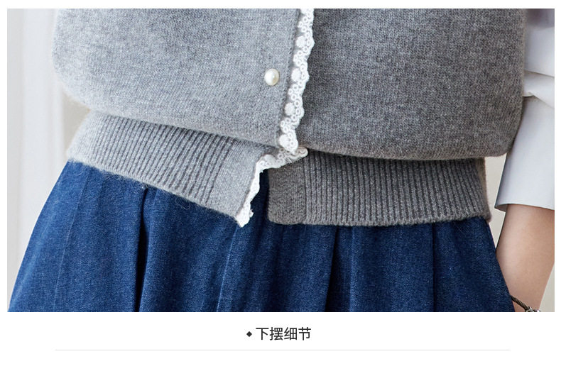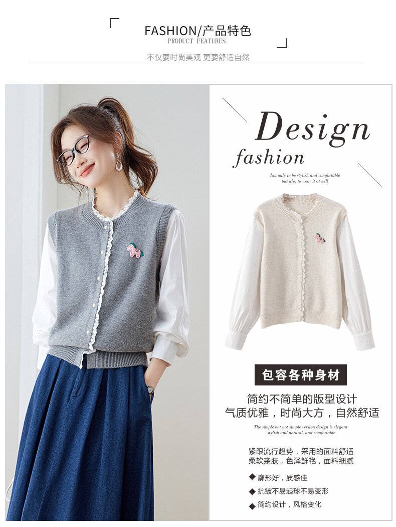 「自」全新升级【铂金会员192/天猫259/差价67】(02211)洛诗琳设计感花边针织开衫2026春季新款衬衫袖拼接毛衣外套