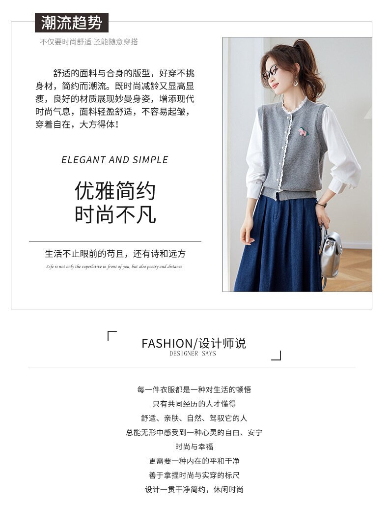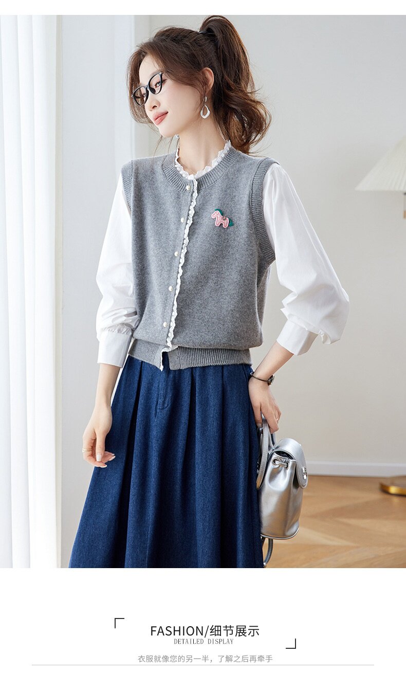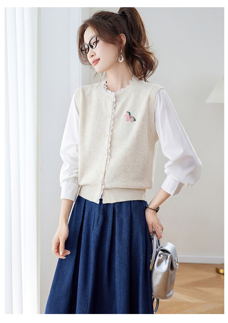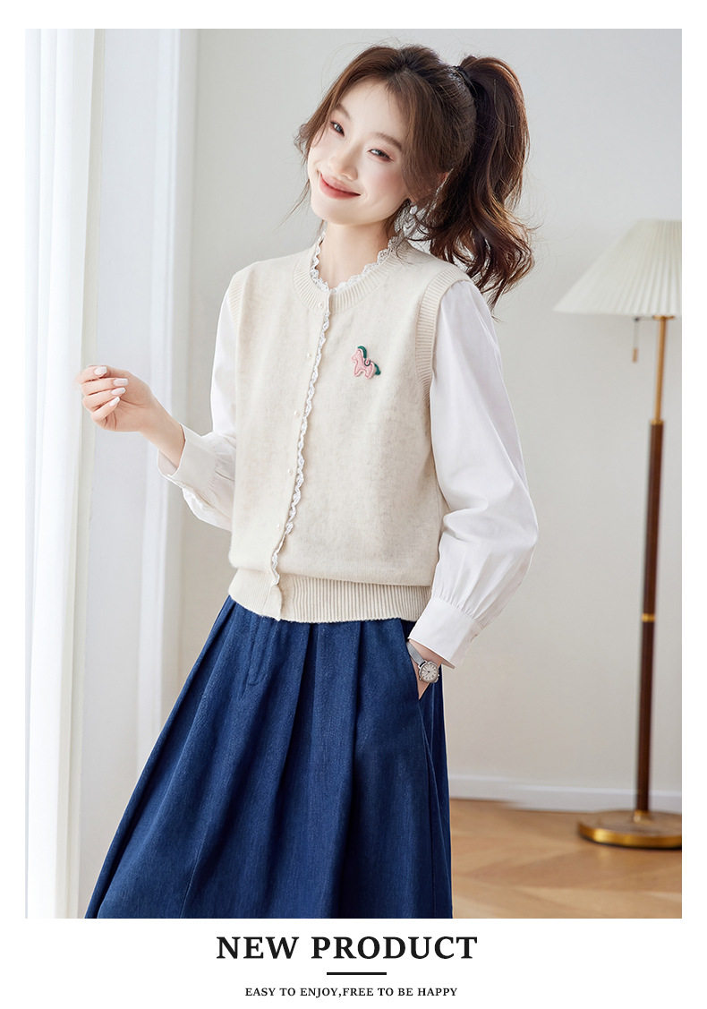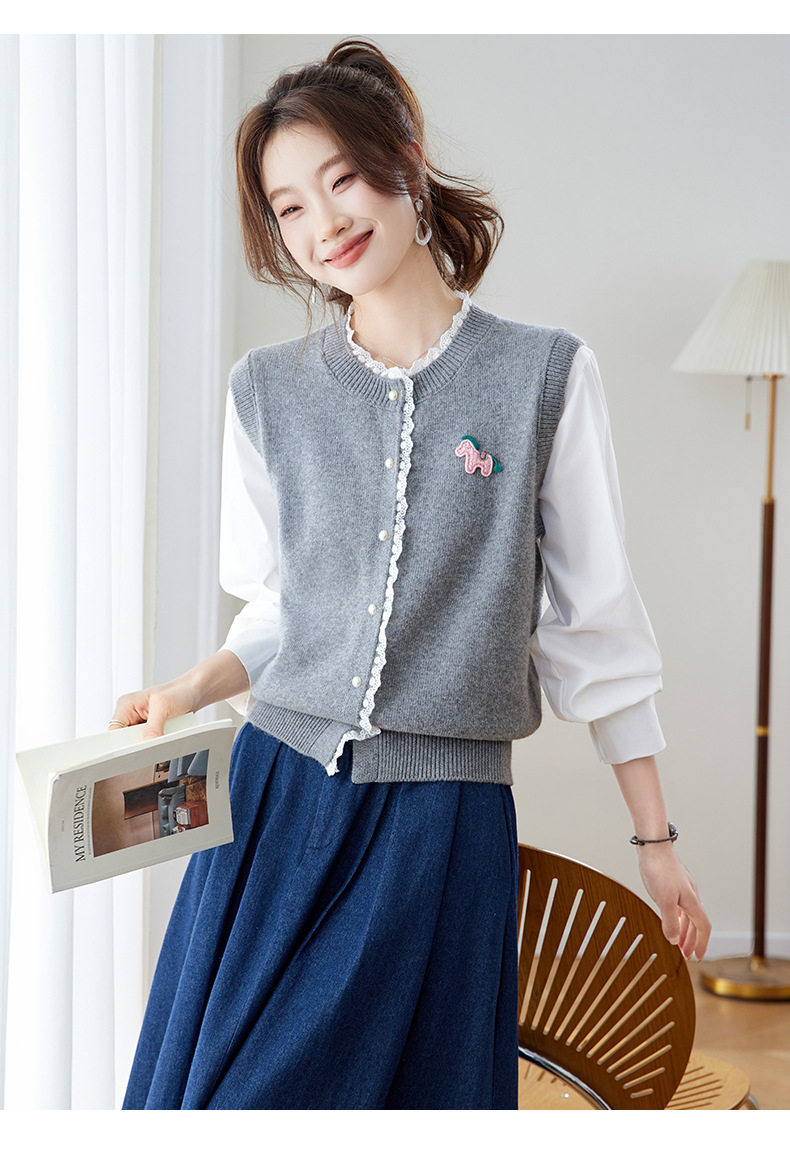 「自」全新升级【铂金会员192/天猫259/差价67】(02211)洛诗琳设计感花边针织开衫2026春季新款衬衫袖拼接毛衣外套