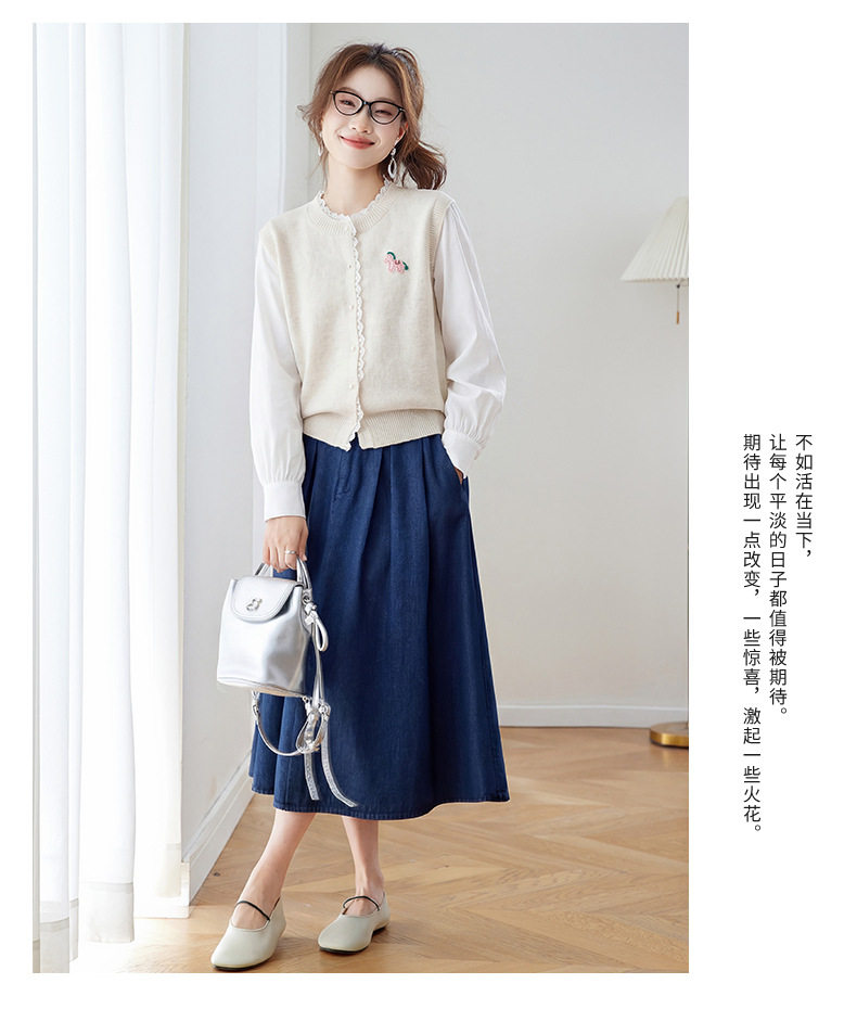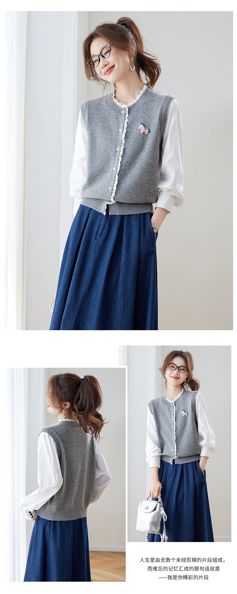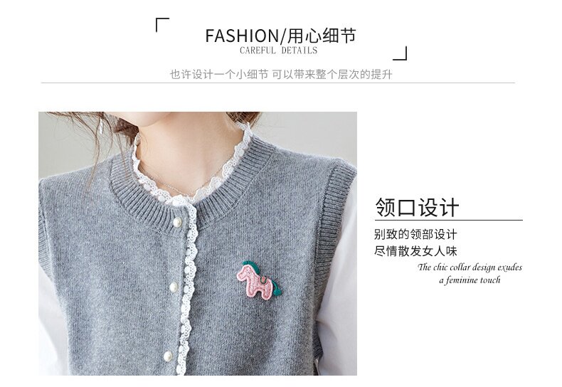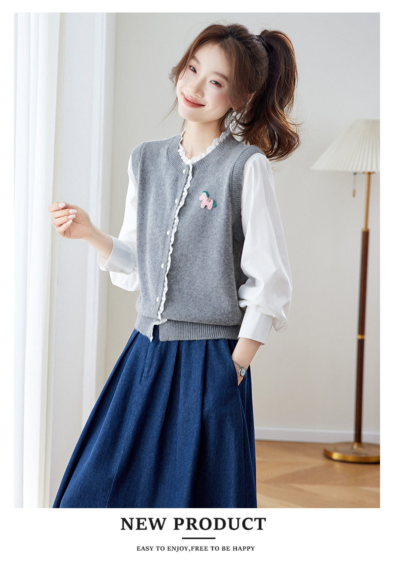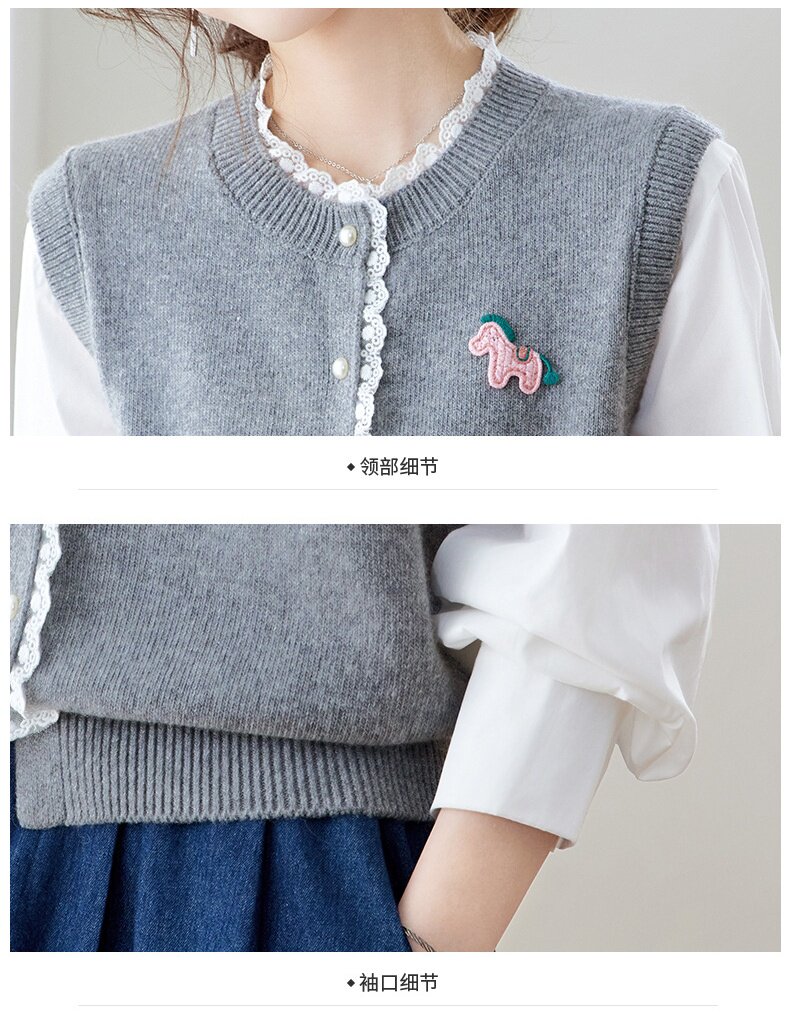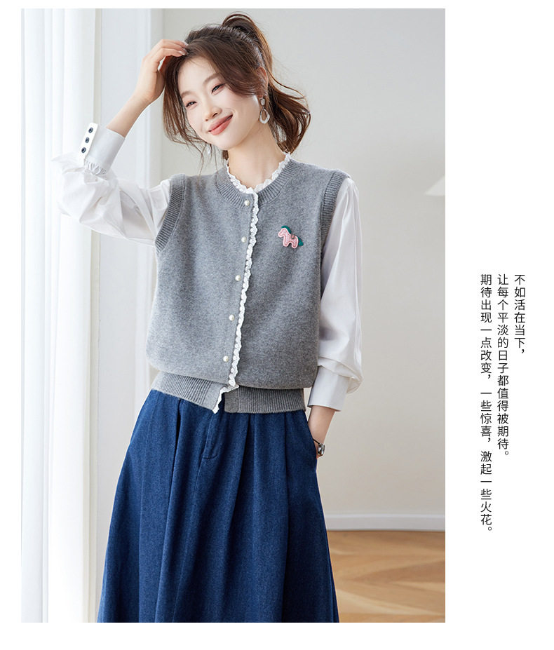 「自」全新升级【铂金会员192/天猫259/差价67】(02211)洛诗琳设计感花边针织开衫2026春季新款衬衫袖拼接毛衣外套