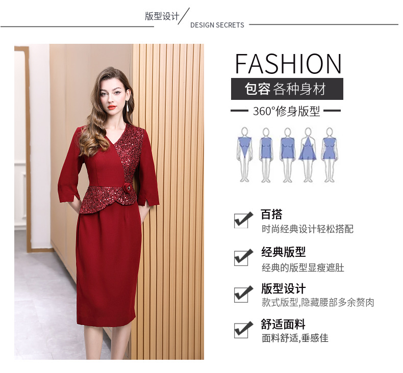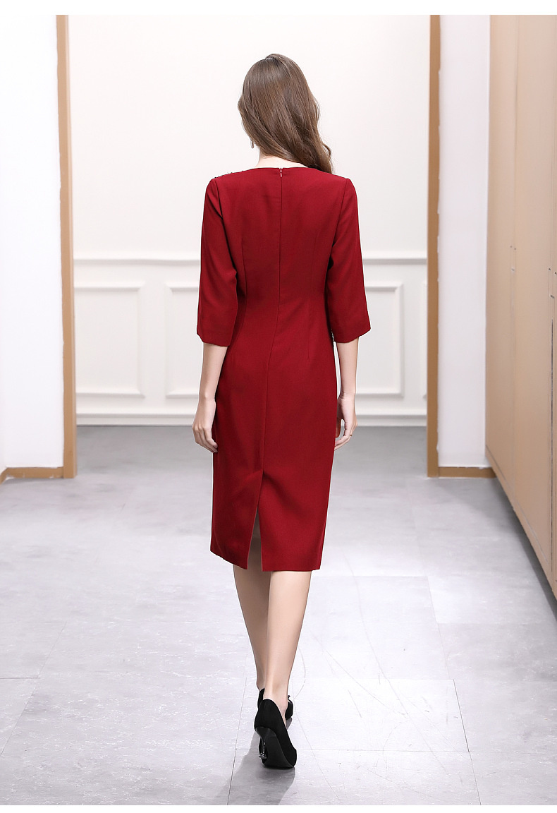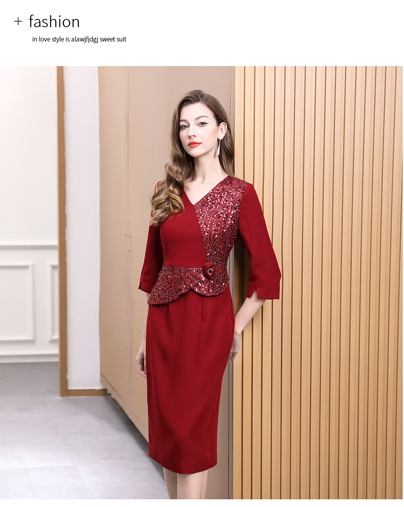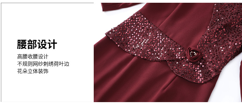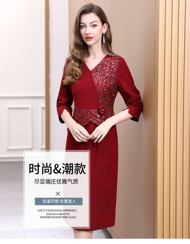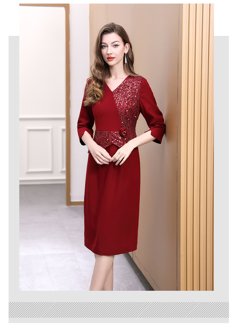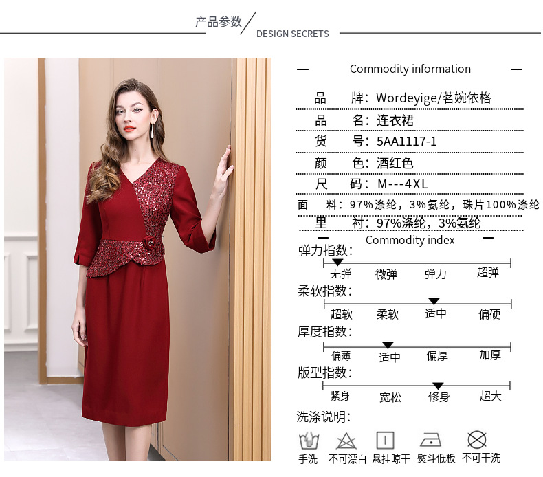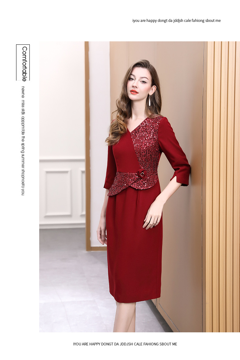 DNO-5AA1117-1春秋季新款2025年大码酒红色连衣裙喜婆婆平时可穿婚宴礼服
