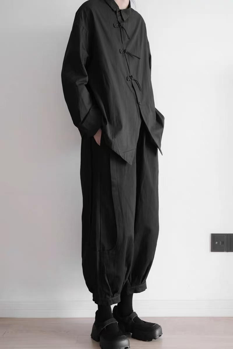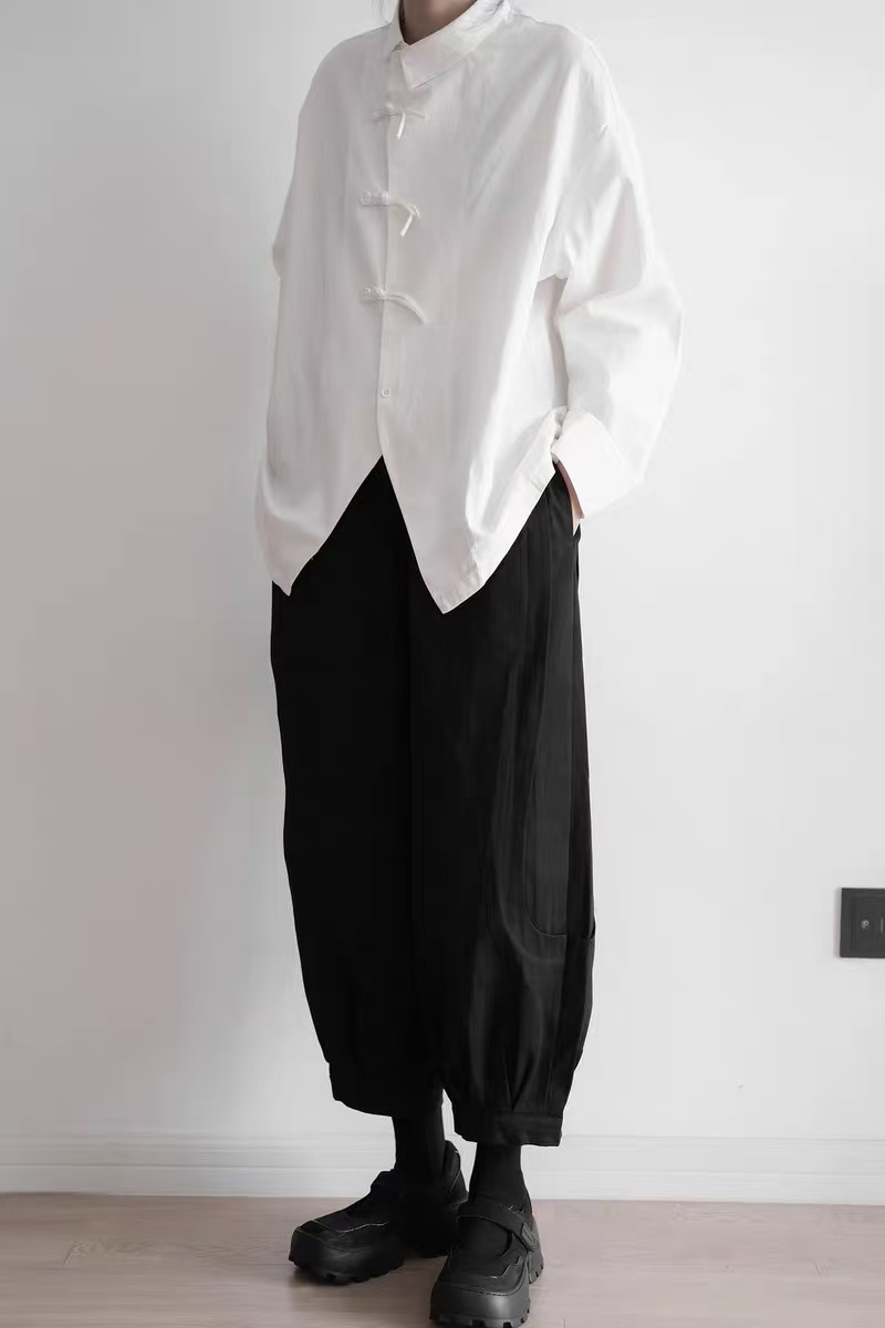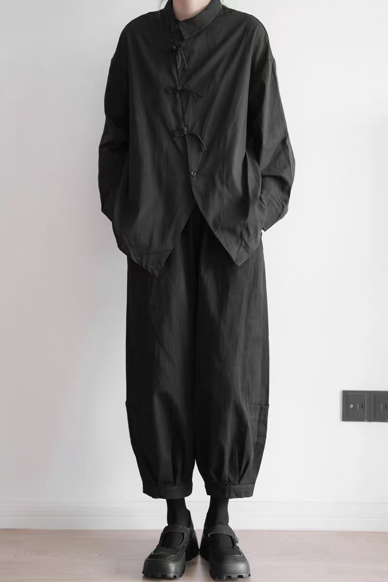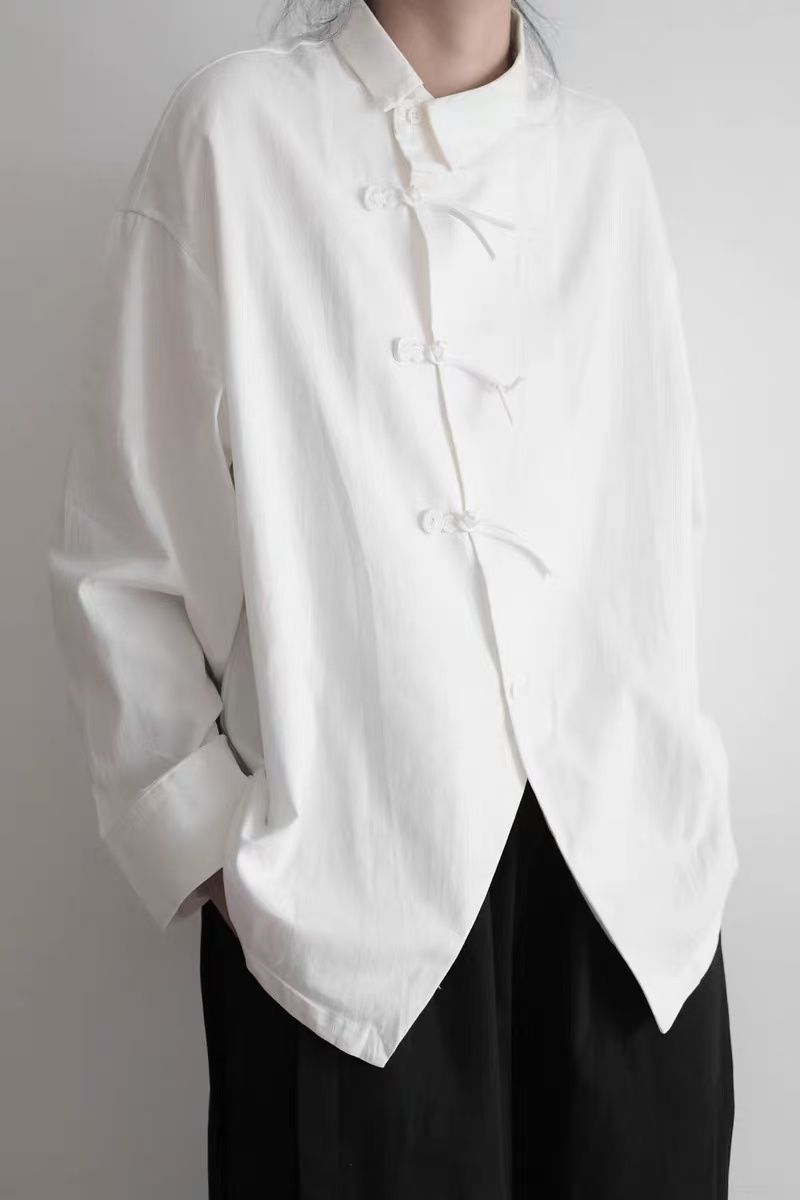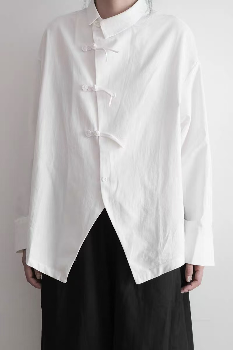 【秋新品】古泥7528新中式盘扣斜开襟衬衫(有些针脚痕迹)-喜出