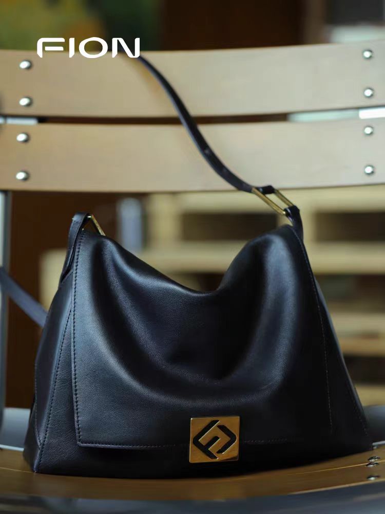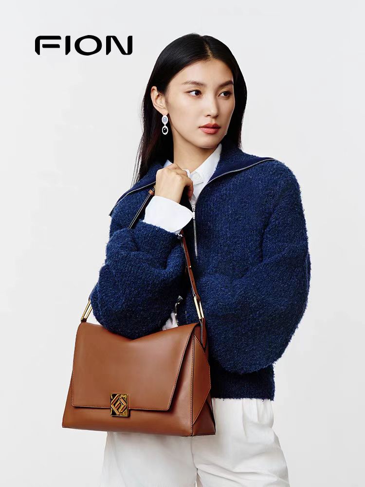 Fion/菲安妮青花瓷叠叠包真皮托特包通勤斜挎腋下包单肩包包女