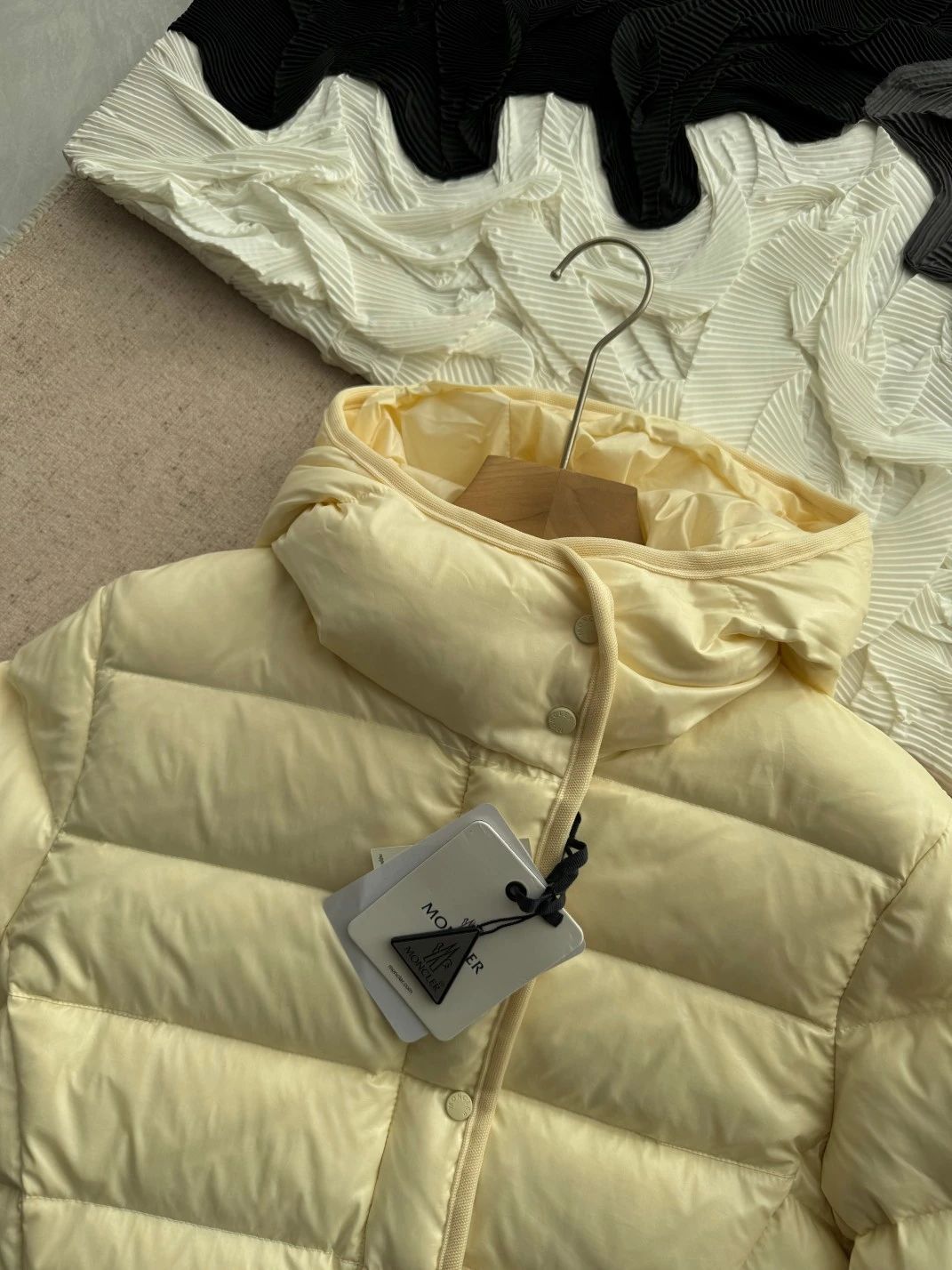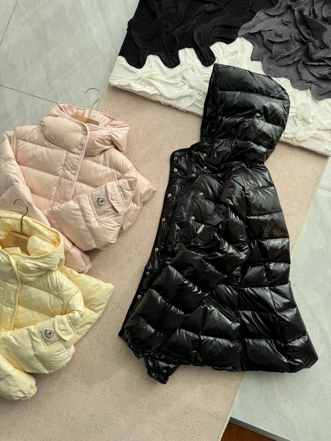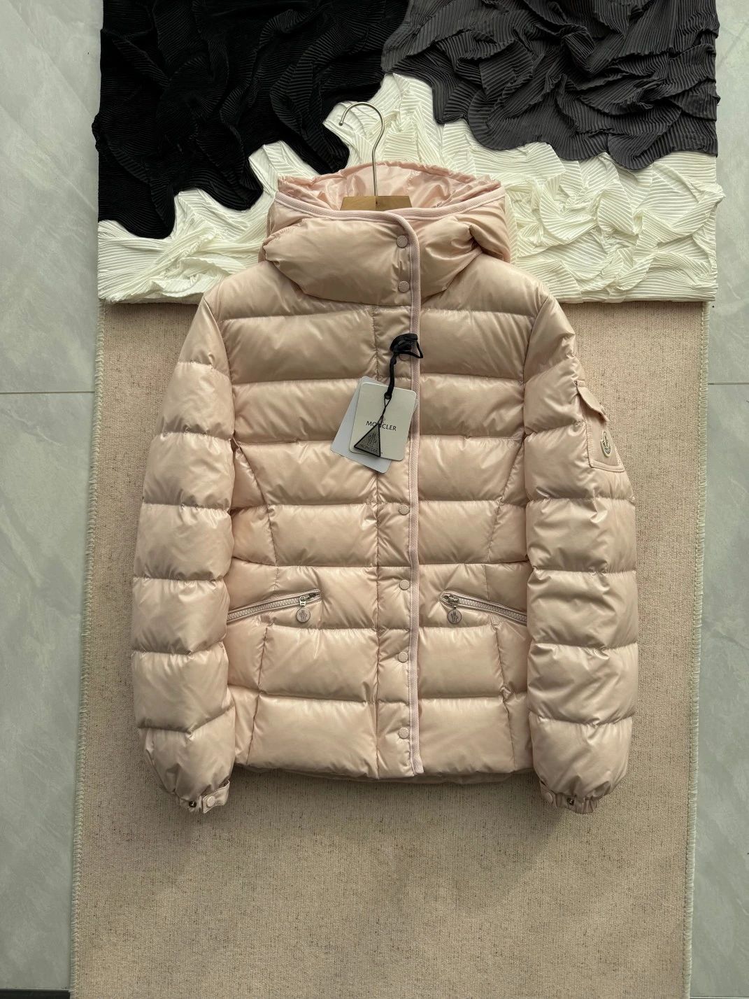 GW18000,最特别的粉色,亮亮的漆面尼龙面料,淡淡的樱花粉色,时尚年轻好打理!奶油白,冬天买不错的浅色羽绒服,温暖色调 黑色!漆面尼龙的面料,黑色是最明显的亮眼!特别款的特别颜色~采用具有拒水性能的轻盈尼龙面料制成,新颖绗缝个性十足!特别!气质拉满~日常运动都合适!充绒超级饱满诚信满满当当~无敌保暖!所见即所得!Moncle*重新诠释的经典单品,可在转季时作为都市外套穿着,或在寒冷季节穿着于夹克之下。长方各衔缝,白鸭绒填充,含绒量90%以上,顶所有细节对位,立领设计,可调节袖口,保暖又不臃肿,五金辅料一比一!