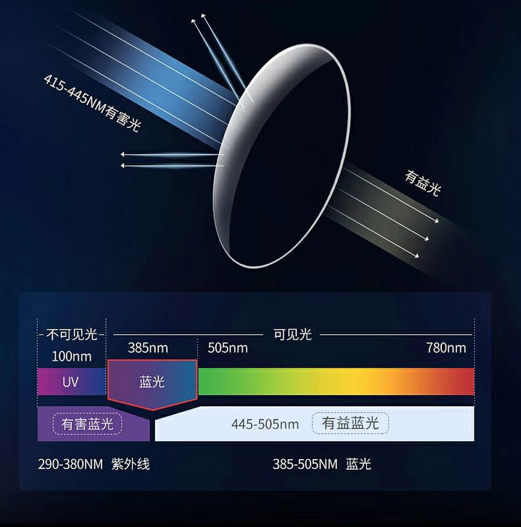 因为防蓝光镜片能够将电子设备的有害蓝光隔离在外,让进入眼球的光线变得柔和。