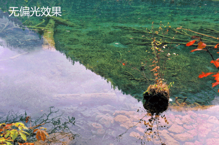 动图会更明显,也一并放上来给大家瞧瞧,亮得不行的光线一戴上偏光太阳镜,立马清晰了。