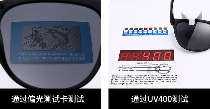 偏光款带有UV400的防紫外线值,还能阻挡紫外线和眩光。