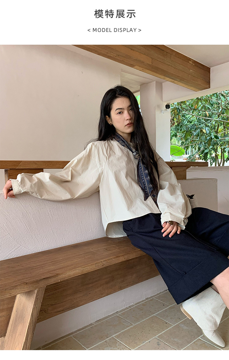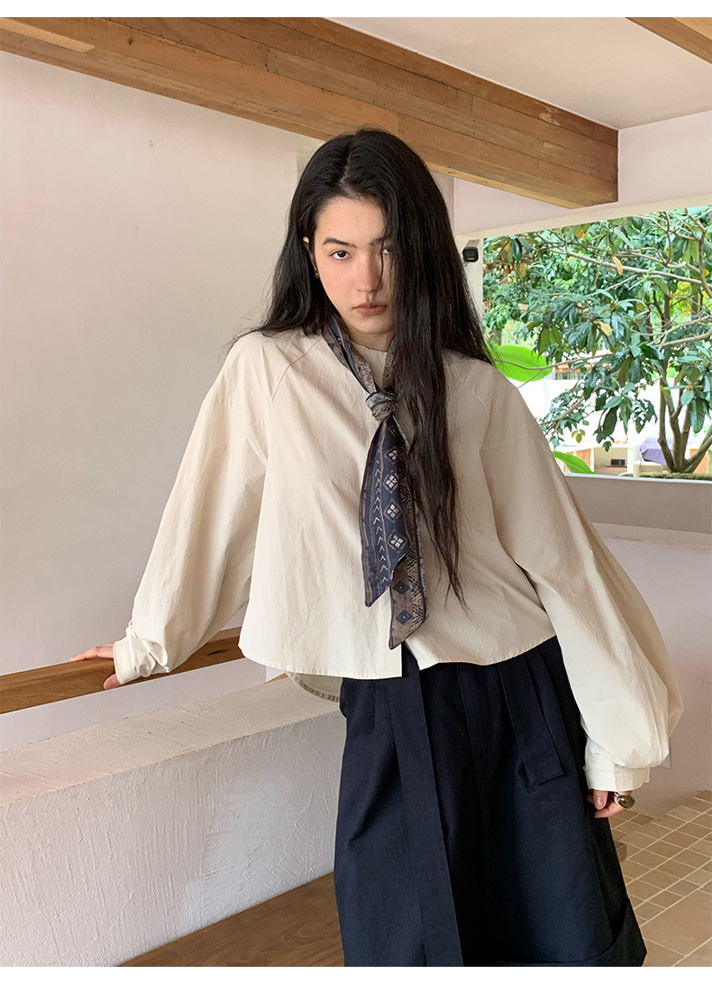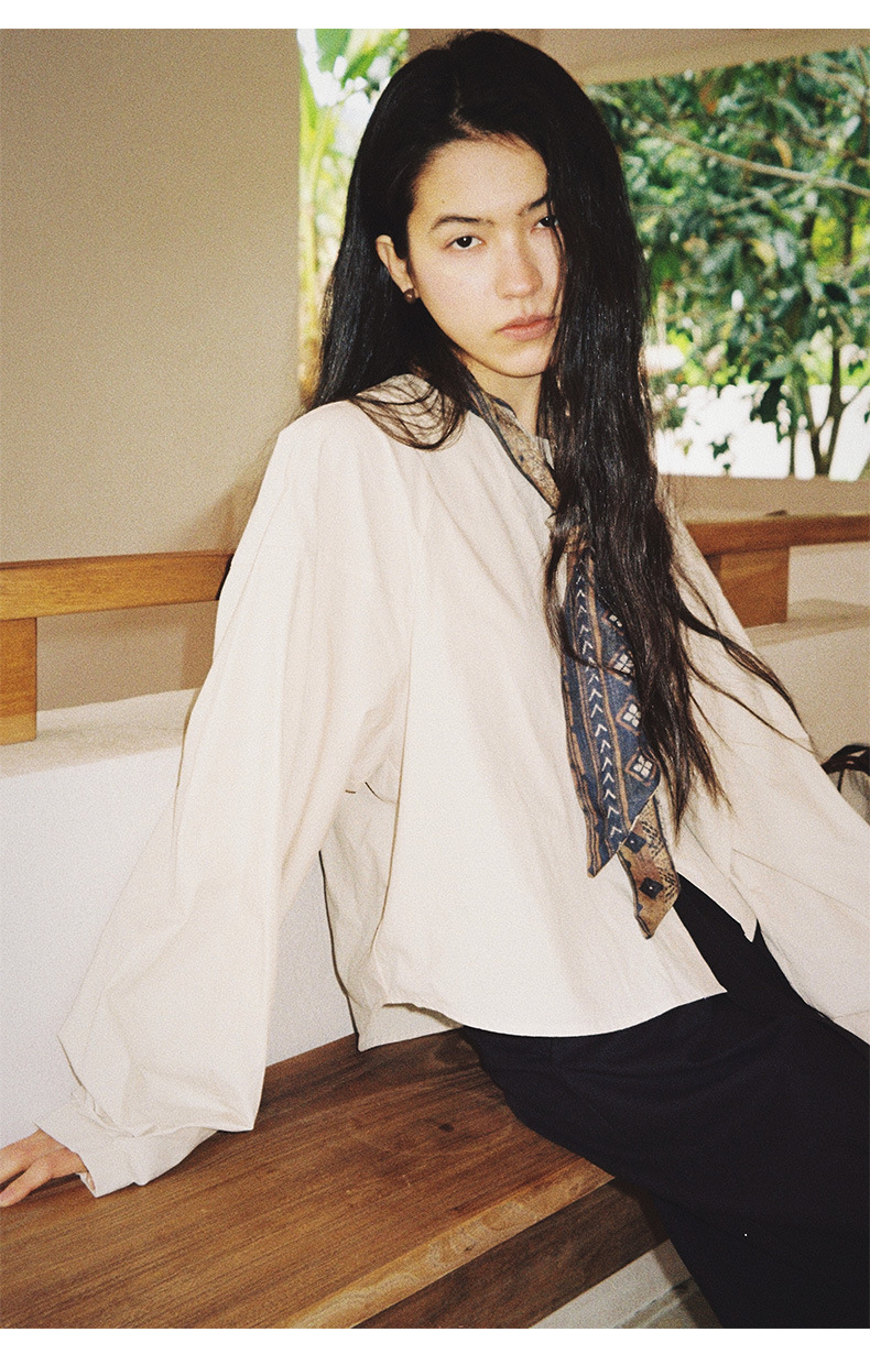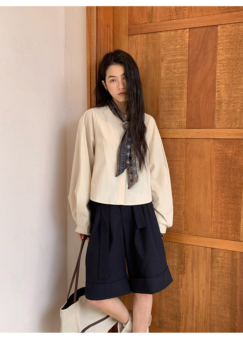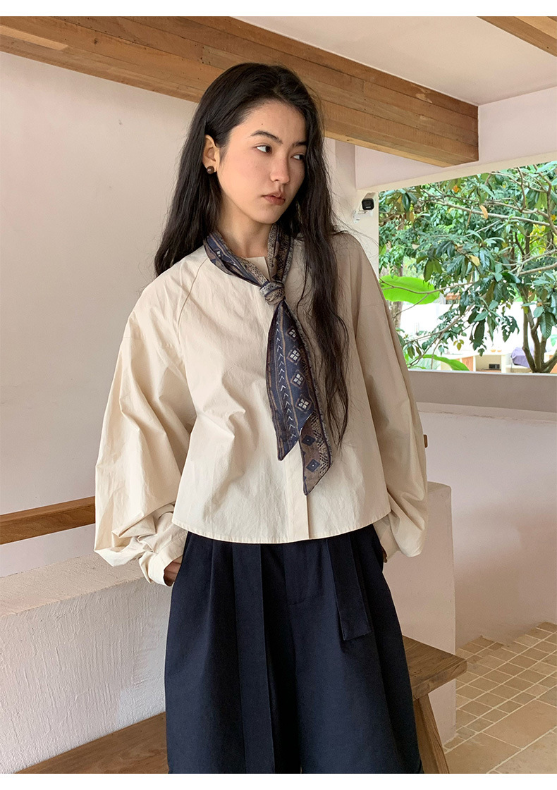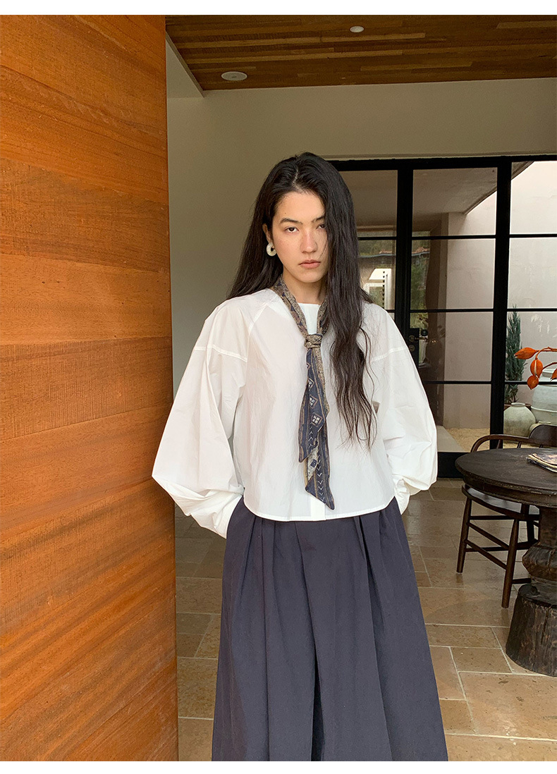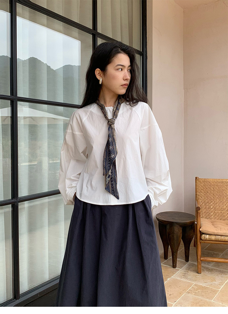 雀说【送苎麻丝巾】春款女装圆领长袖衬衣气质女式衬衫上衣ALW258112