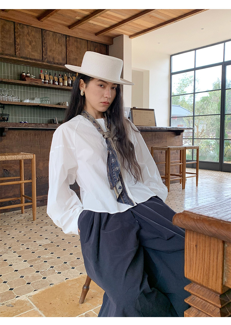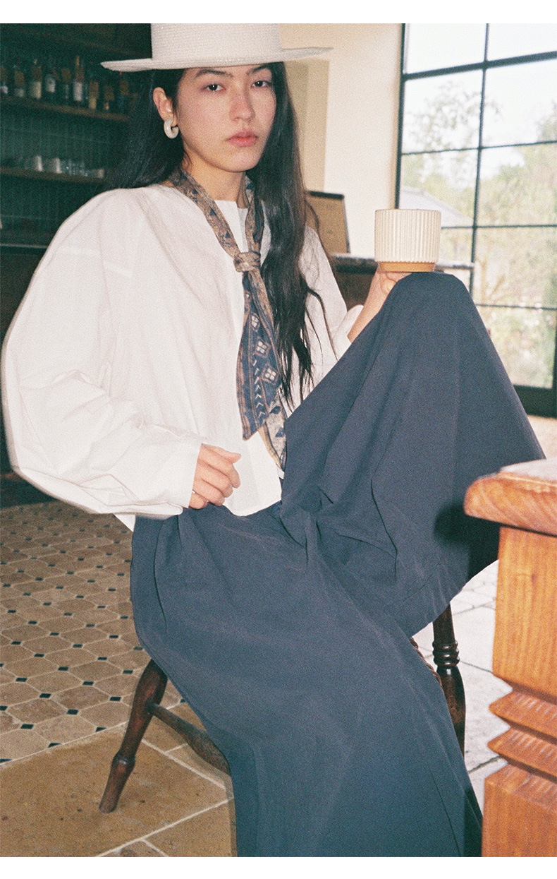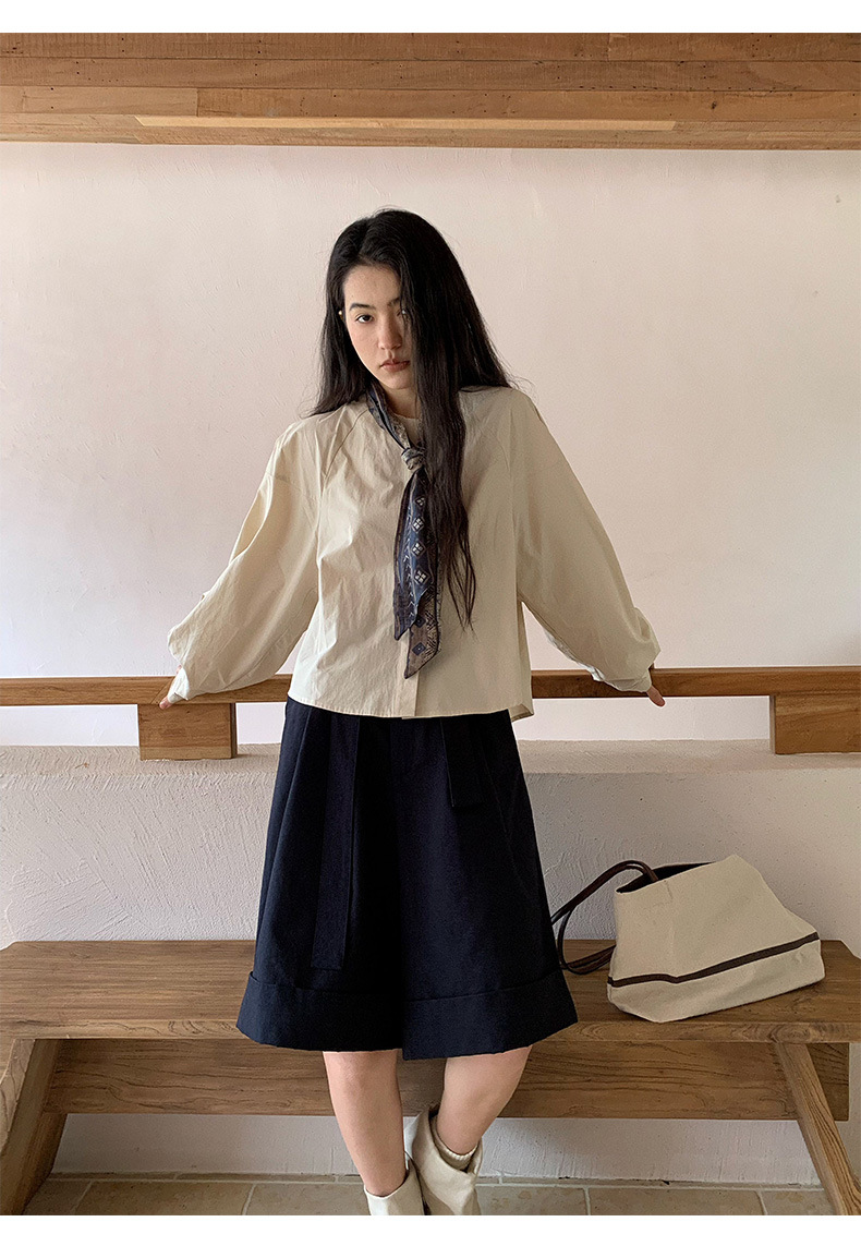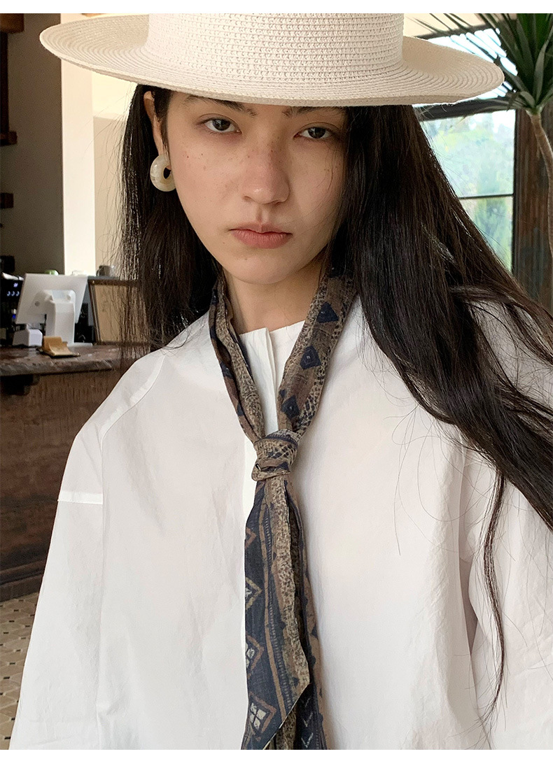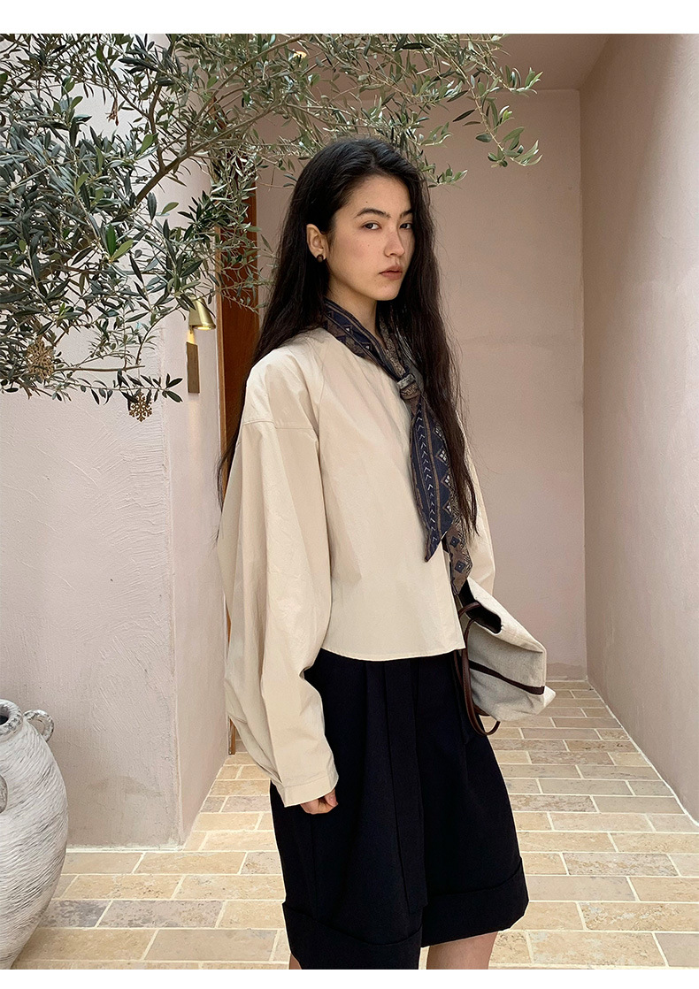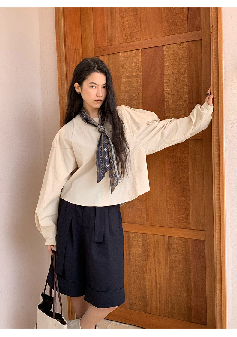 雀说【送苎麻丝巾】春款女装圆领长袖衬衣气质女式衬衫上衣ALW258112