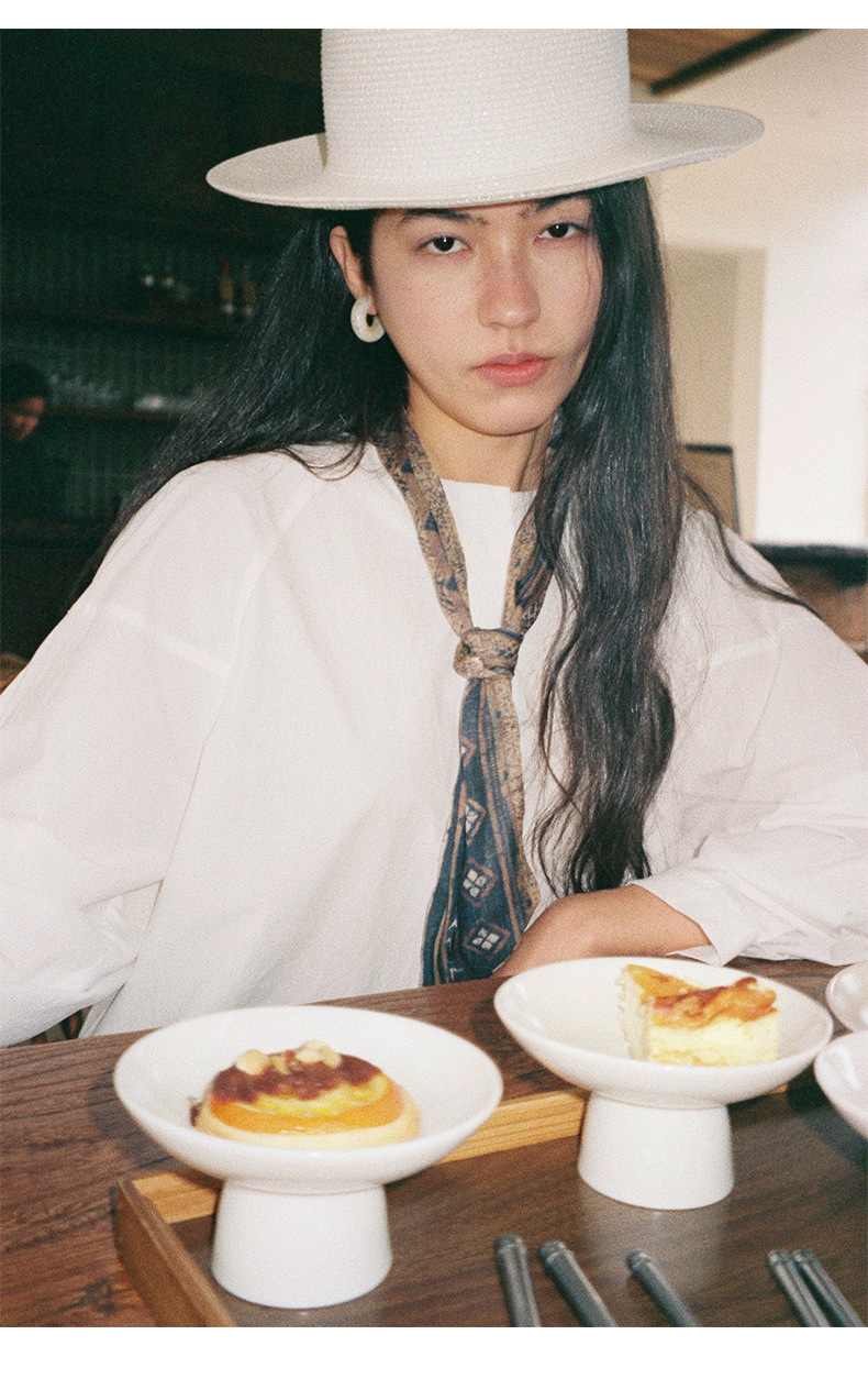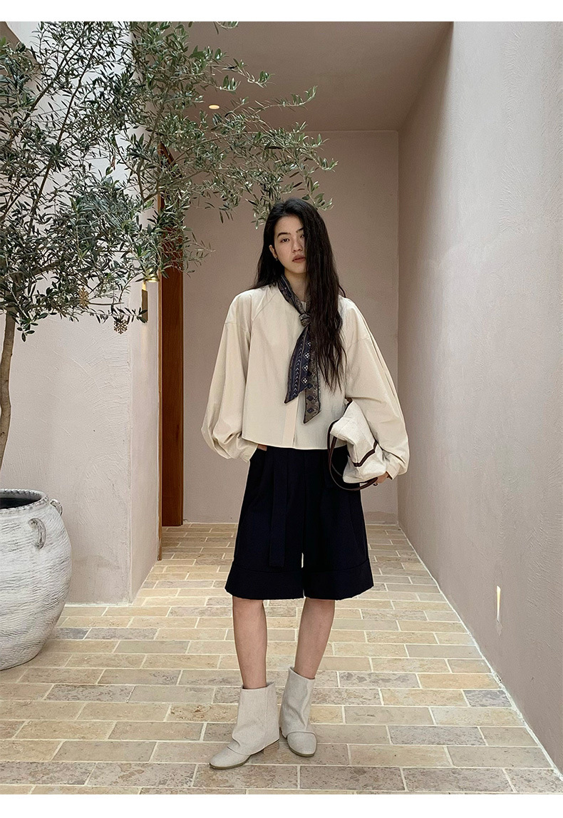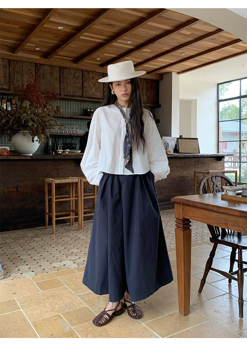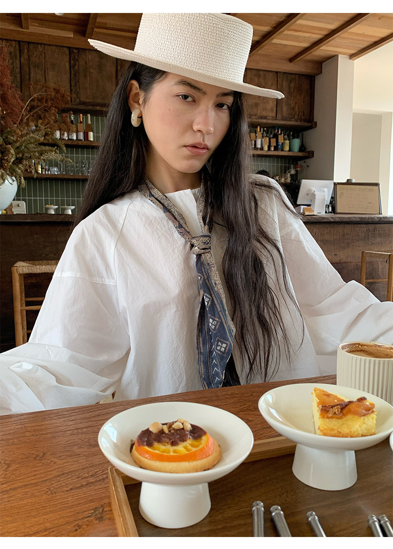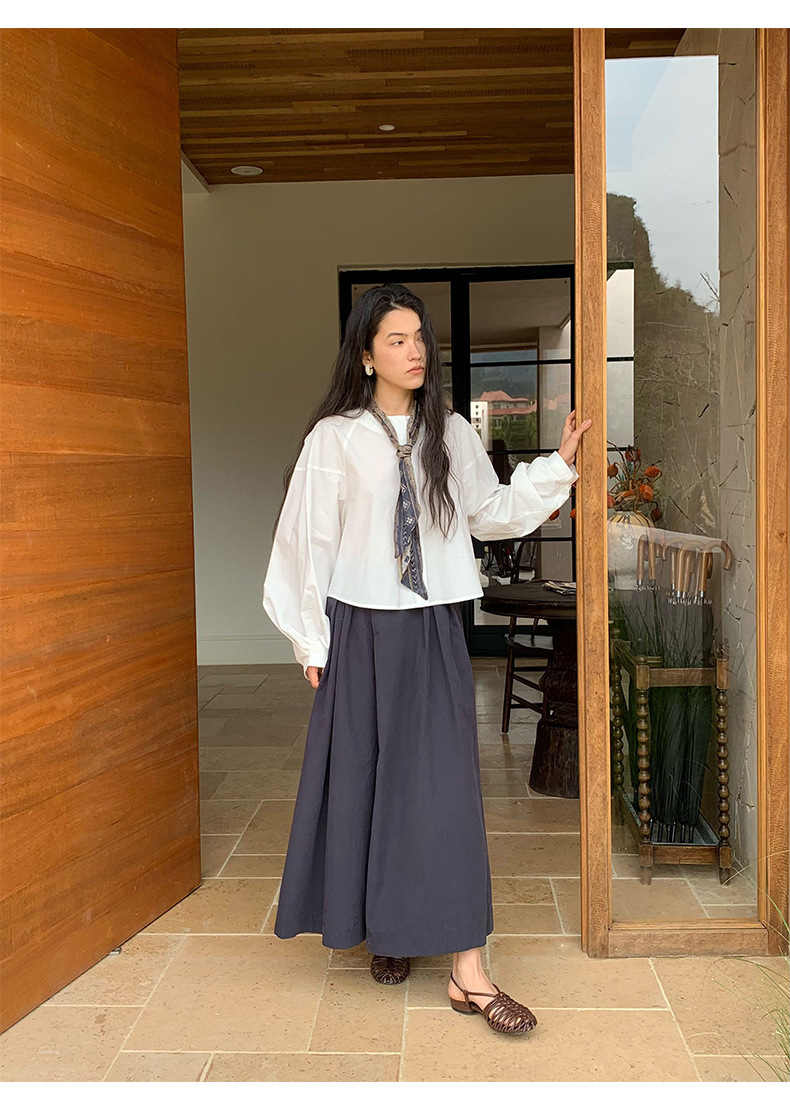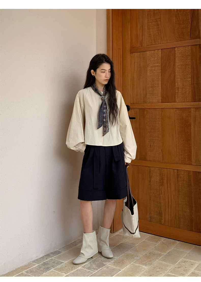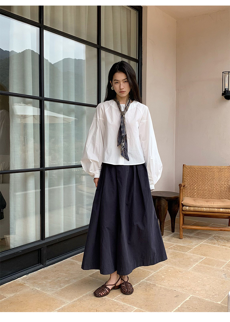 雀说【送苎麻丝巾】春款女装圆领长袖衬衣气质女式衬衫上衣ALW258112