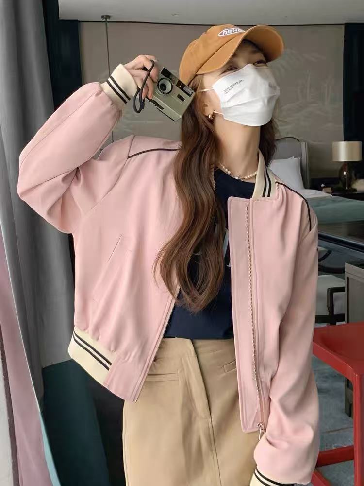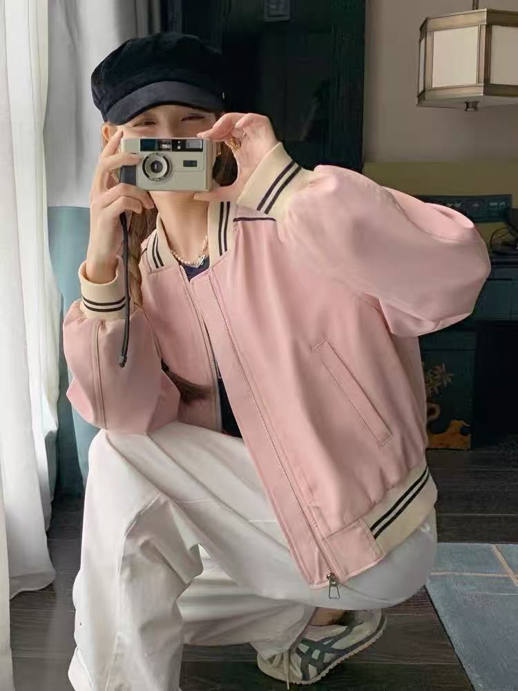 【秋新品】剪标款-粉色棒球休闲外套-喜出