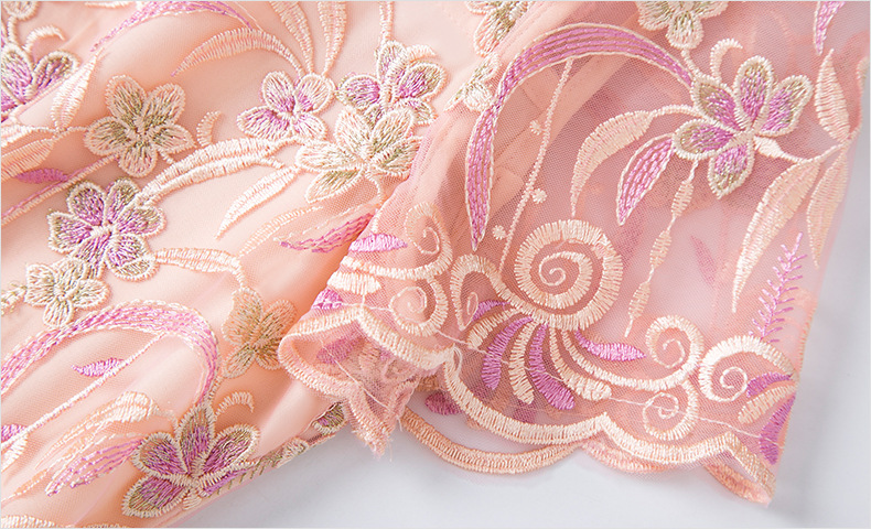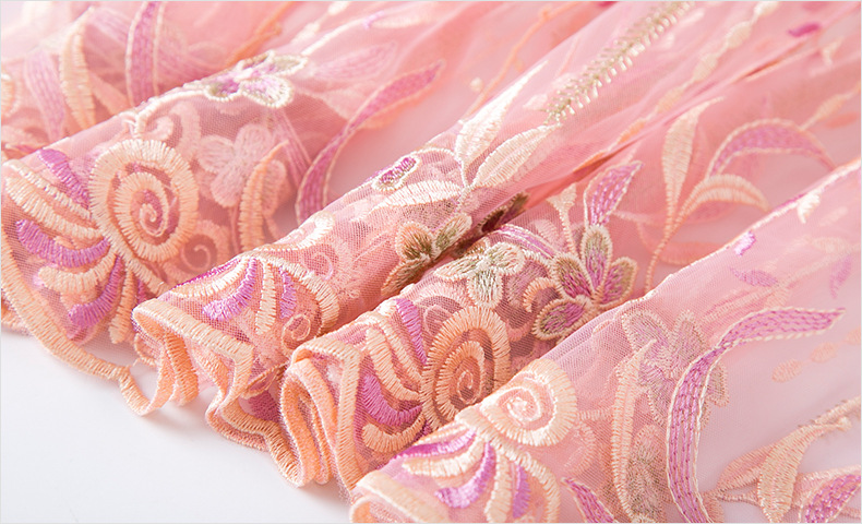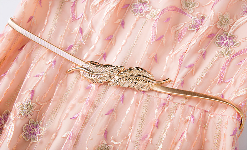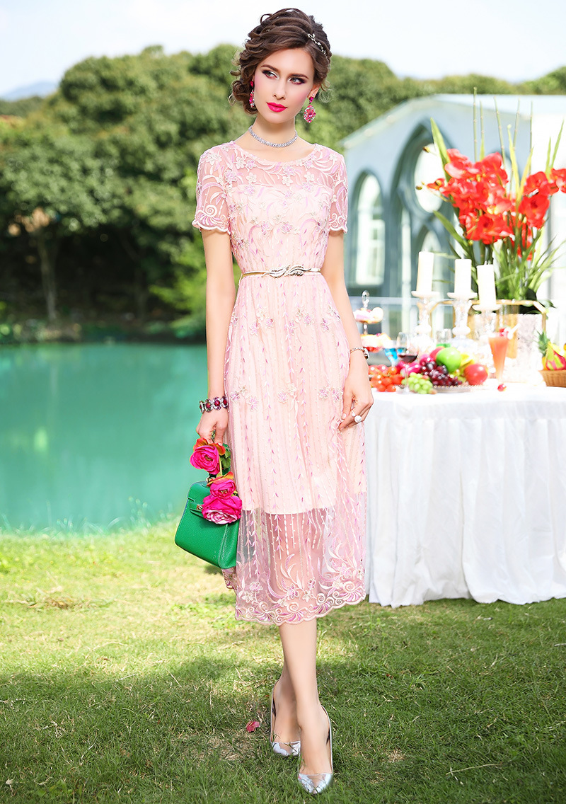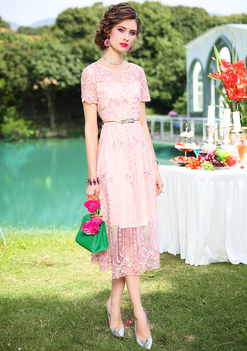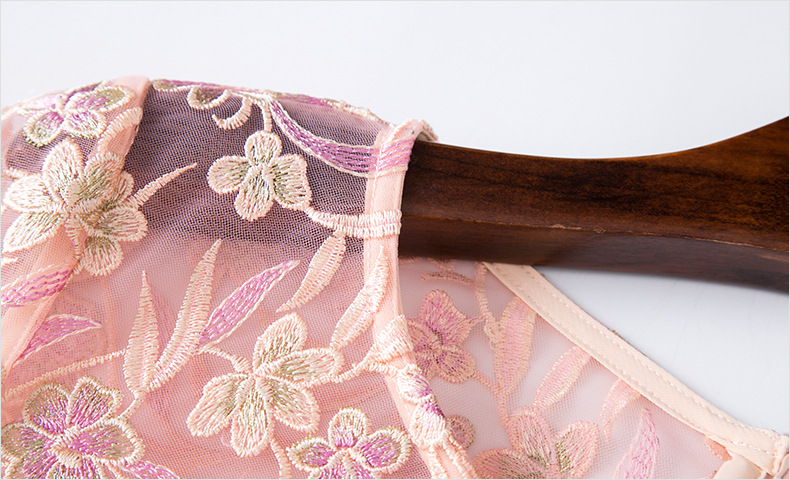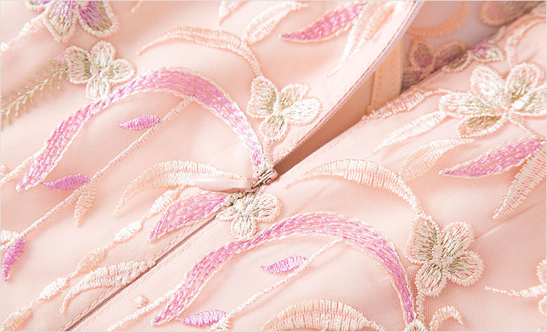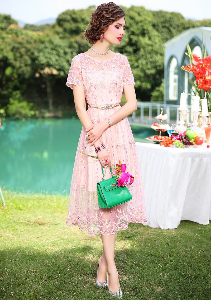 FMY-F20XL31121网布绣花连衣裙温柔风时尚修身收腰中长裙