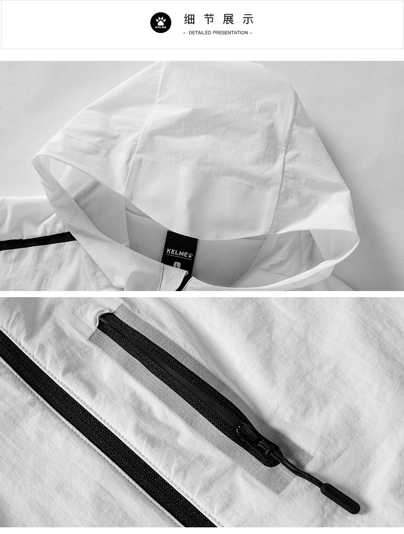 卡尔美运动休闲外套夏季新款薄款连帽夹克梭织男皮肤衣