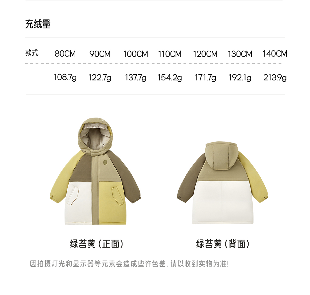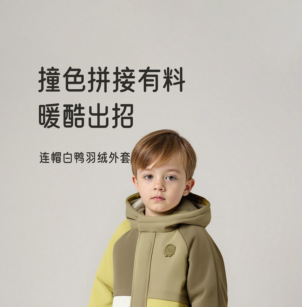 【商场同款】英氏儿童连帽外套长款羽绒服冬季保暖男宝舒适新款超韧绒