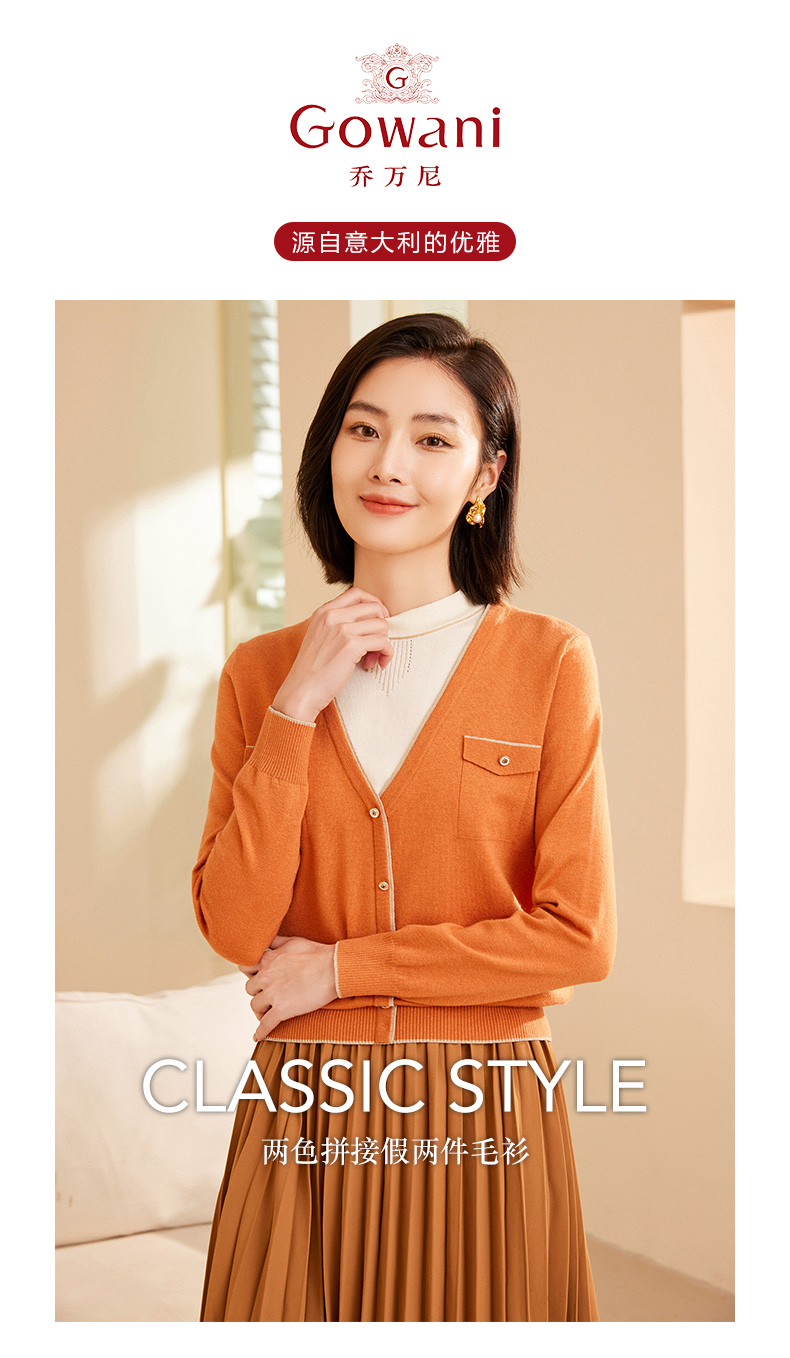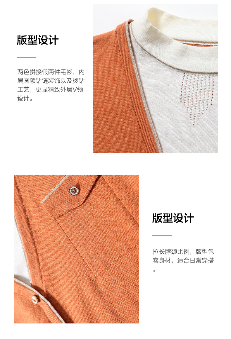 乔万尼秋新品羊毛衫假两件撞色针织衫ET3M768