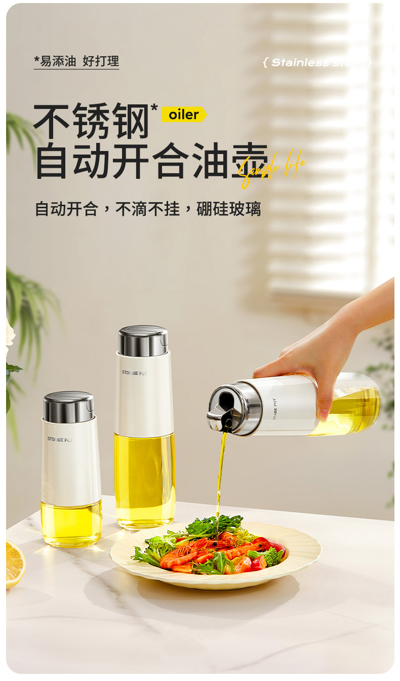 摩登主妇自动开合油壶家用厨房不挂油食品级酱油瓶油罐壶玻璃油瓶