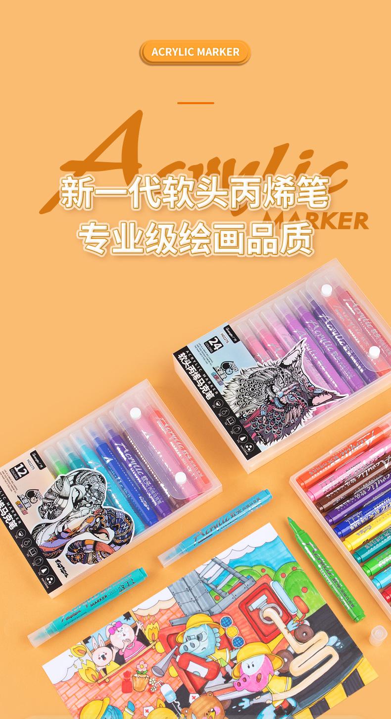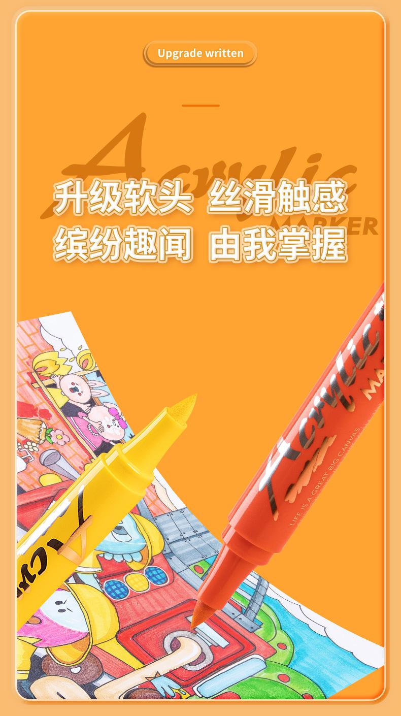 【广博】软头专业丙烯马克笔不透色小学生绘画水彩笔专用画笔丙烯笔