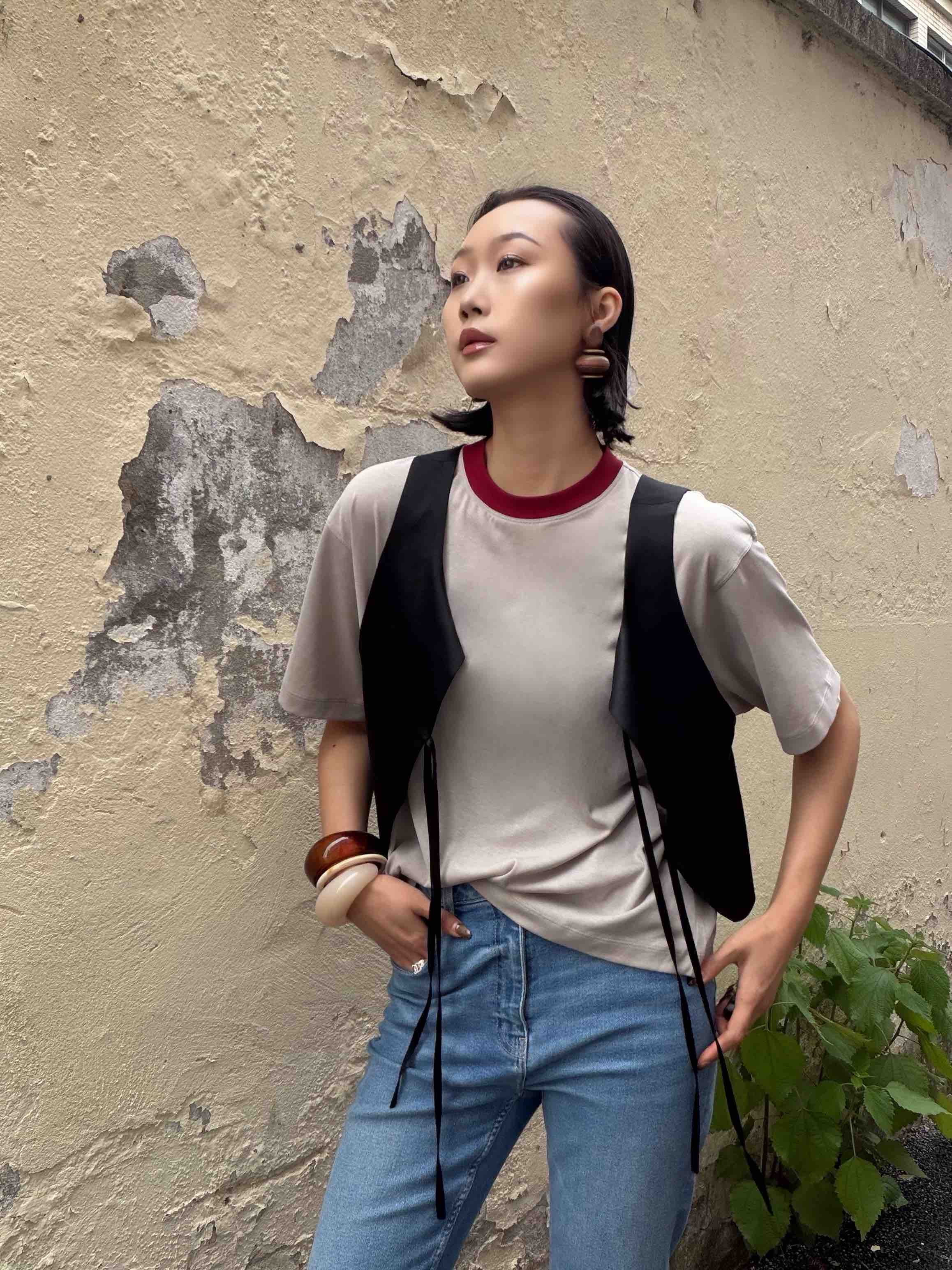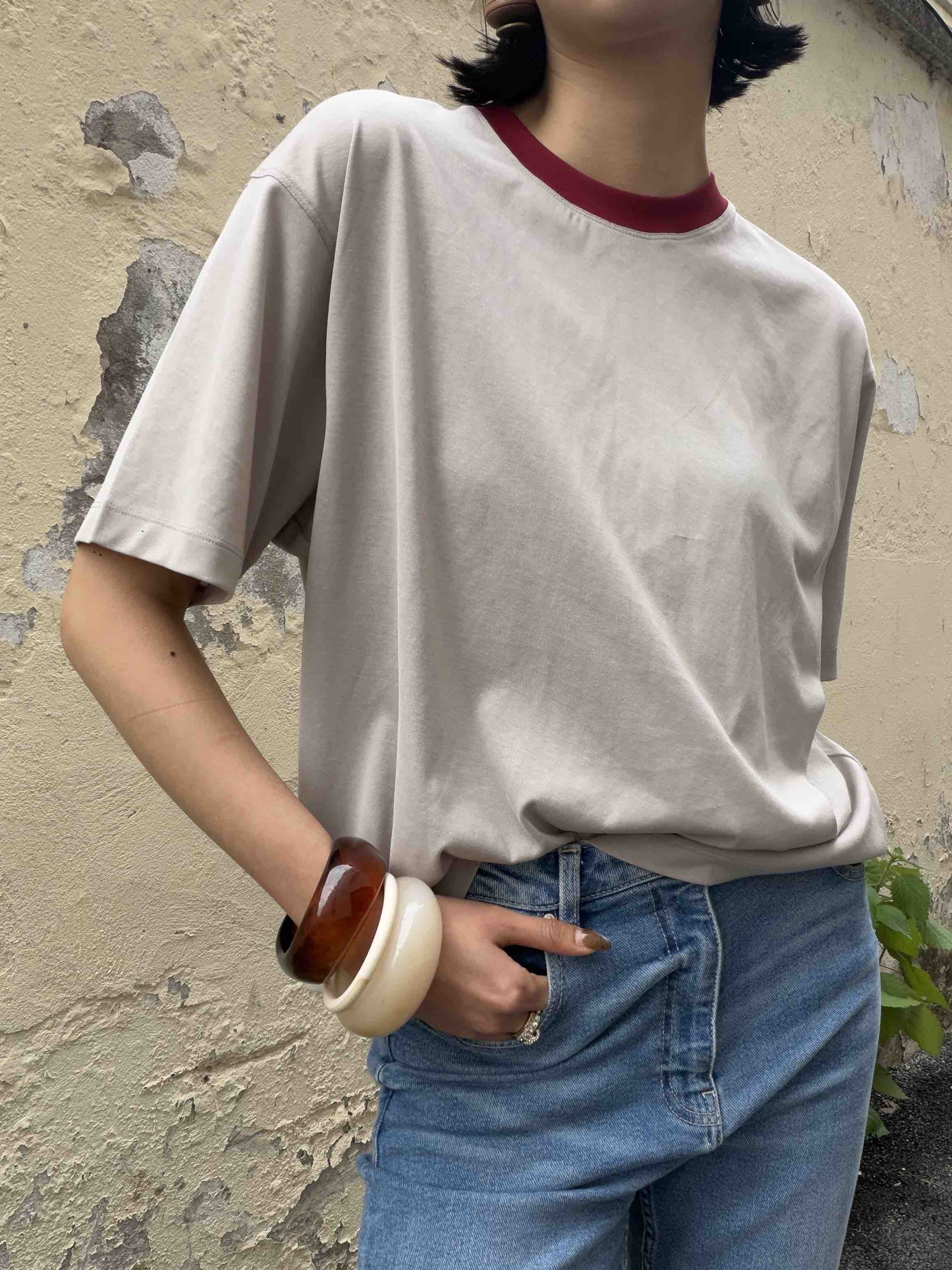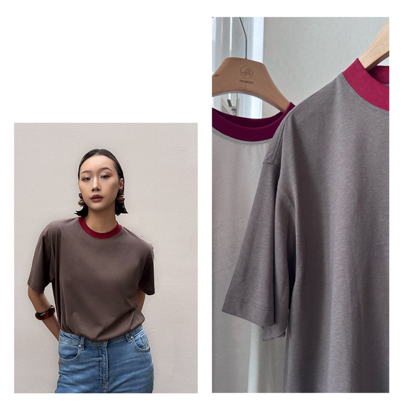 撞色红领短袖T|175g混纺"外爽内糯"×挺阔骨感,复古松弛感拉满
