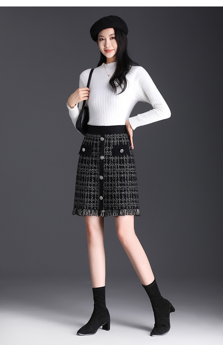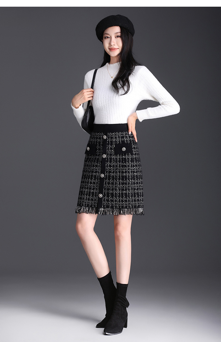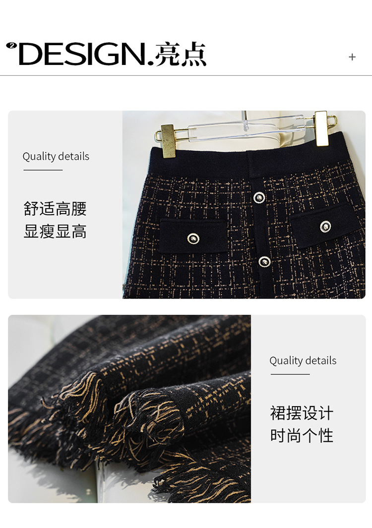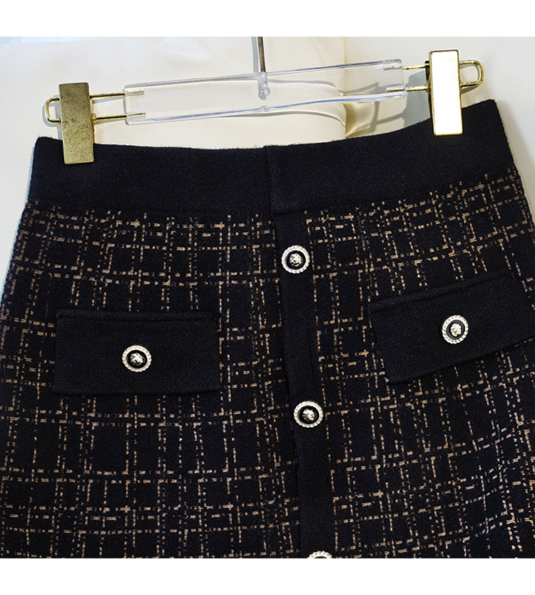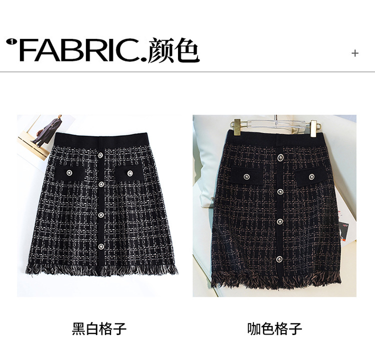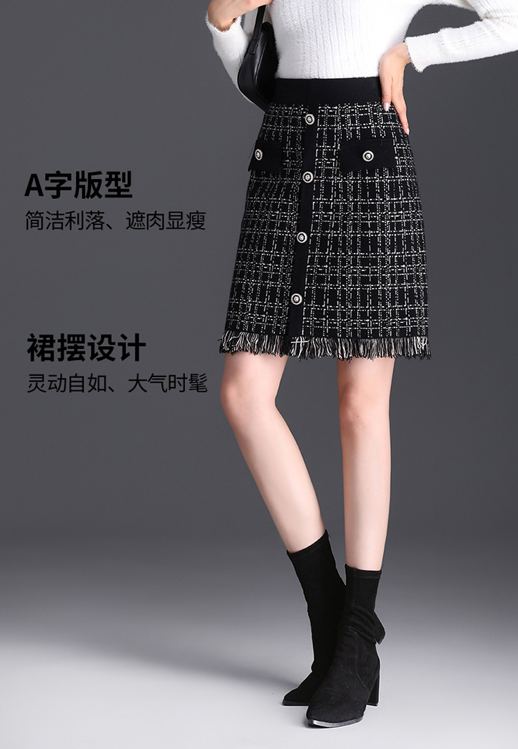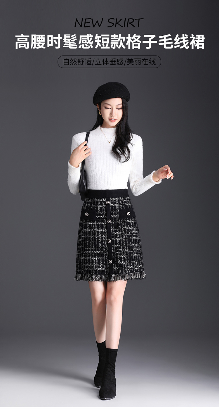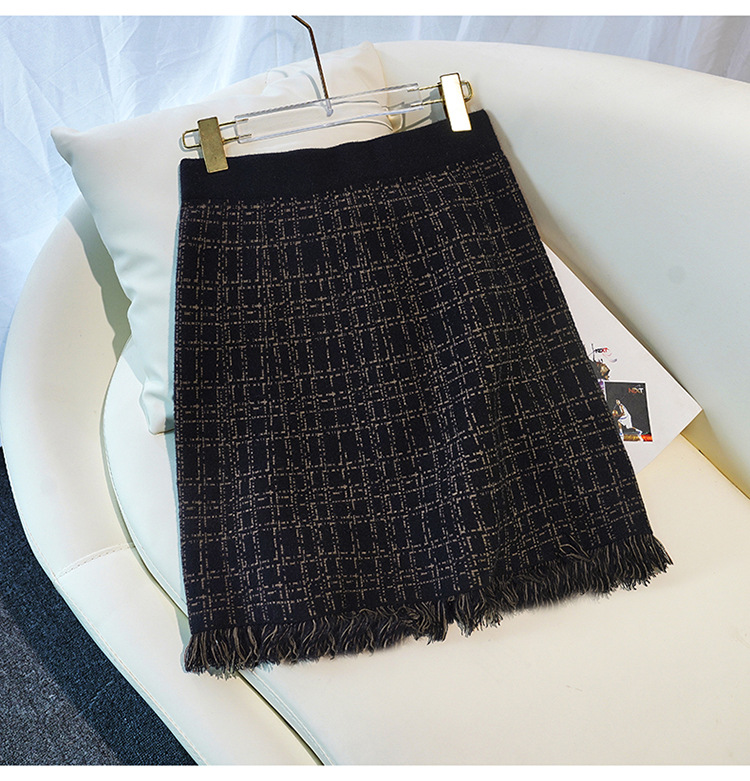 MYX-YGLR-1218-L小香风格纹短款包臀裙松紧腰针织毛线裙秋冬款显瘦半身裙一步裙