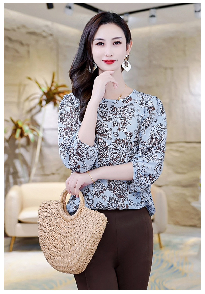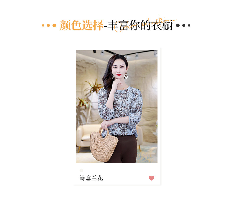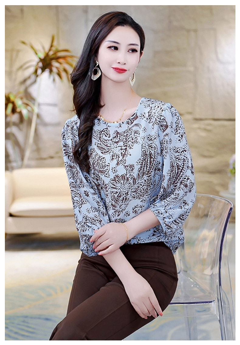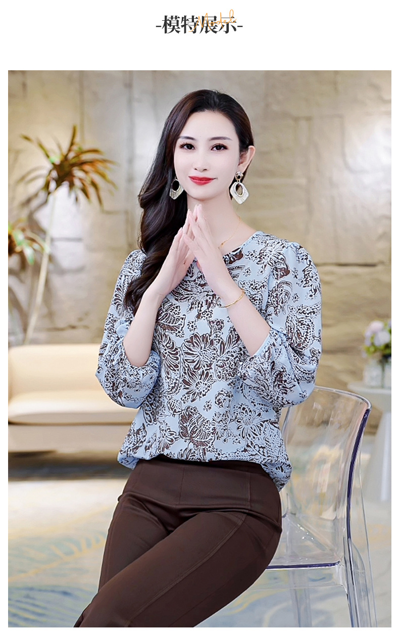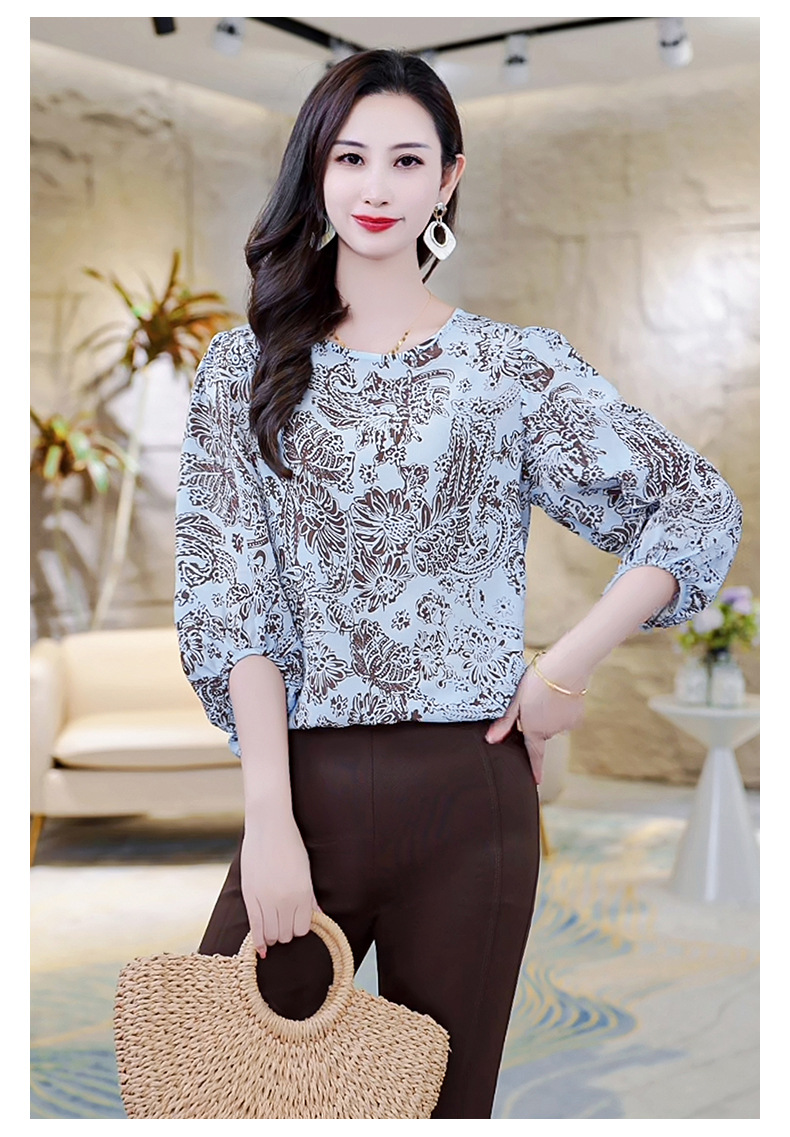 LS-AS0329七分袖双绉真丝上衣女2024年秋装新款印花时尚桑蚕丝气质显瘦上衣