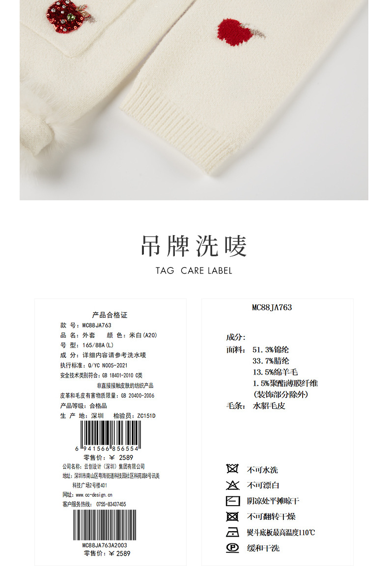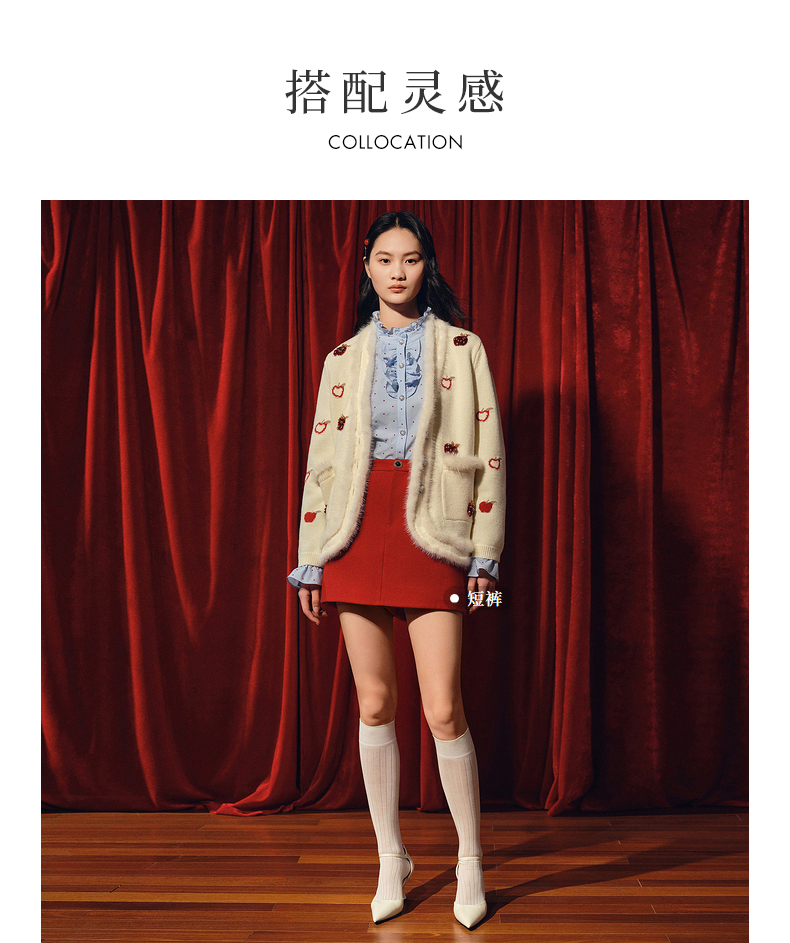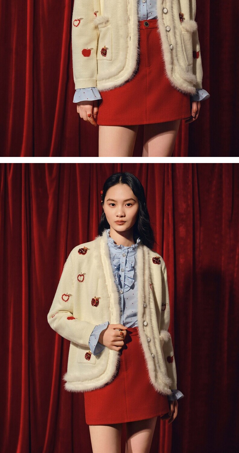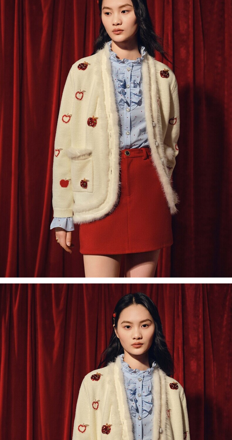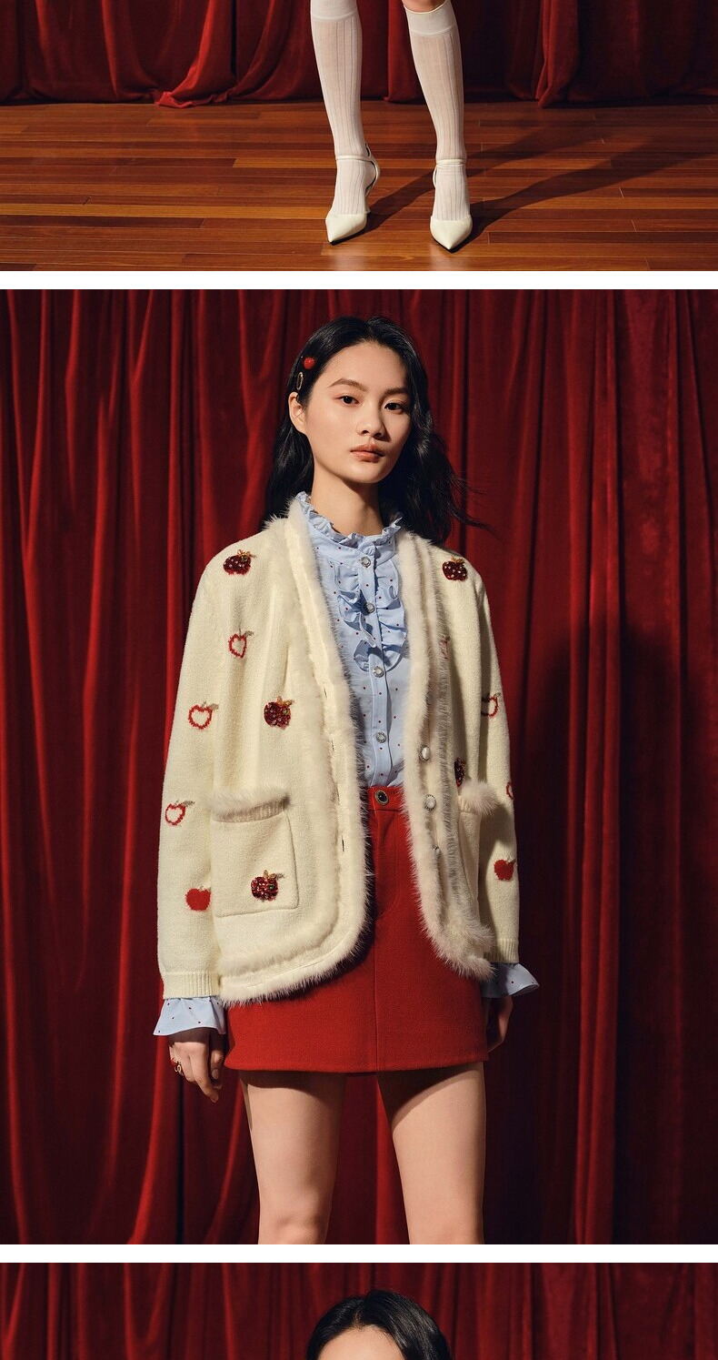 【商场同款】MAXRIENY苹果钉珠外套精致复古感苹果毛织钉珠外套(货号:MC88JA763)