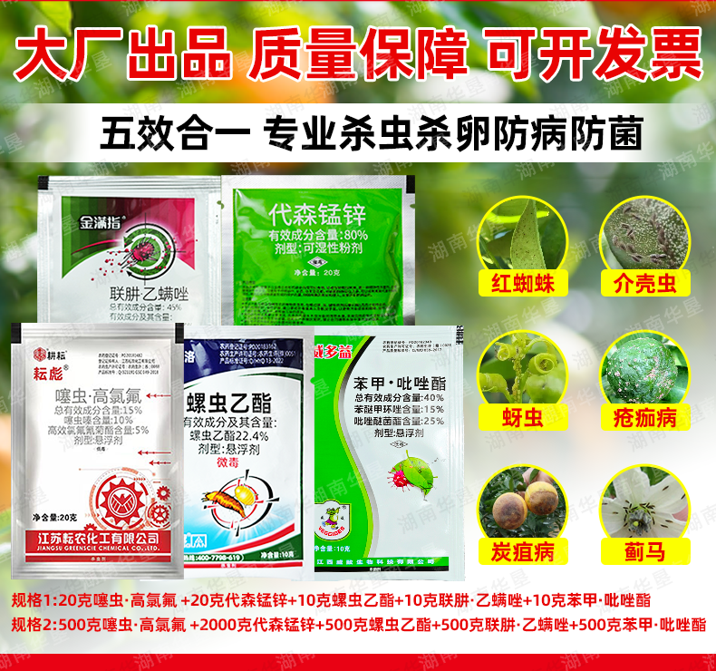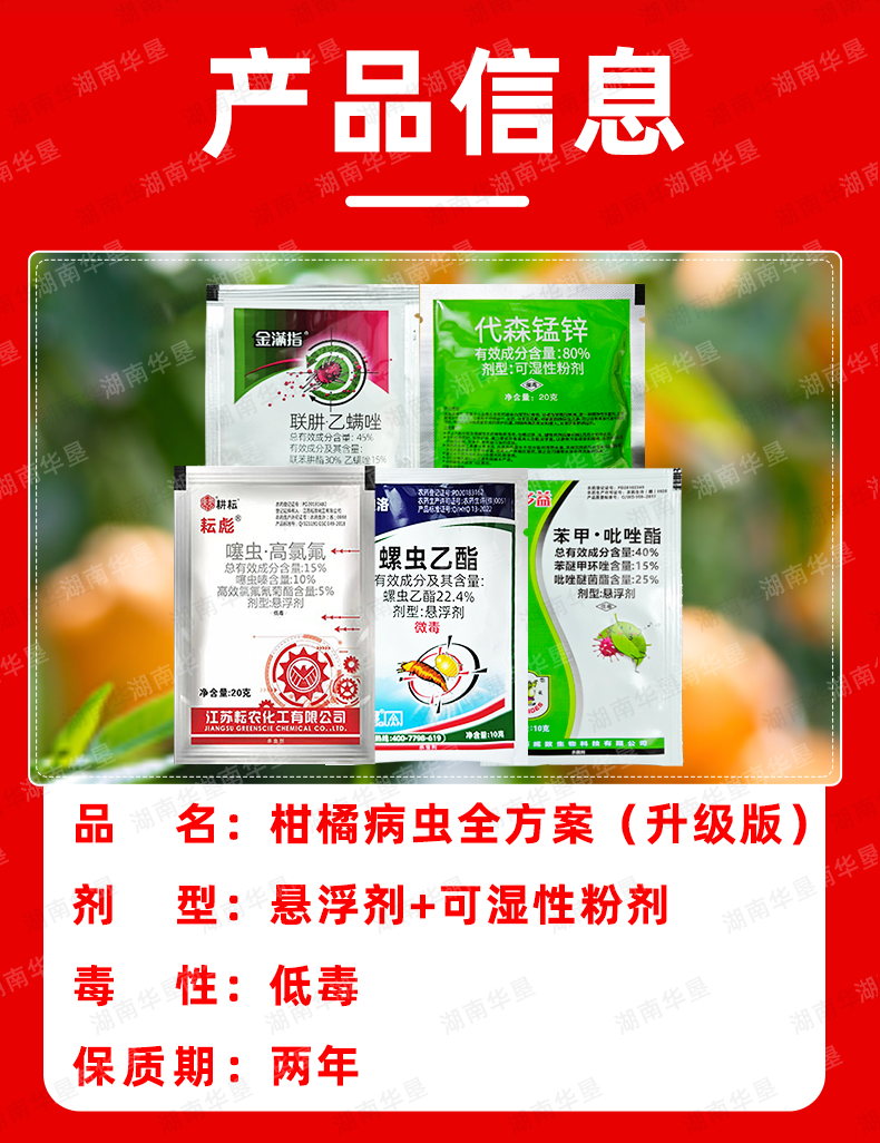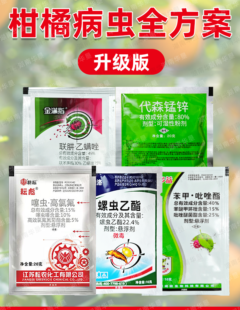 柑橘病虫防治全方案红蜘蛛专用杀虫剂杀螨剂杀菌剂正品五件套套餐