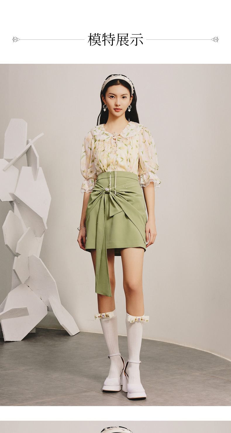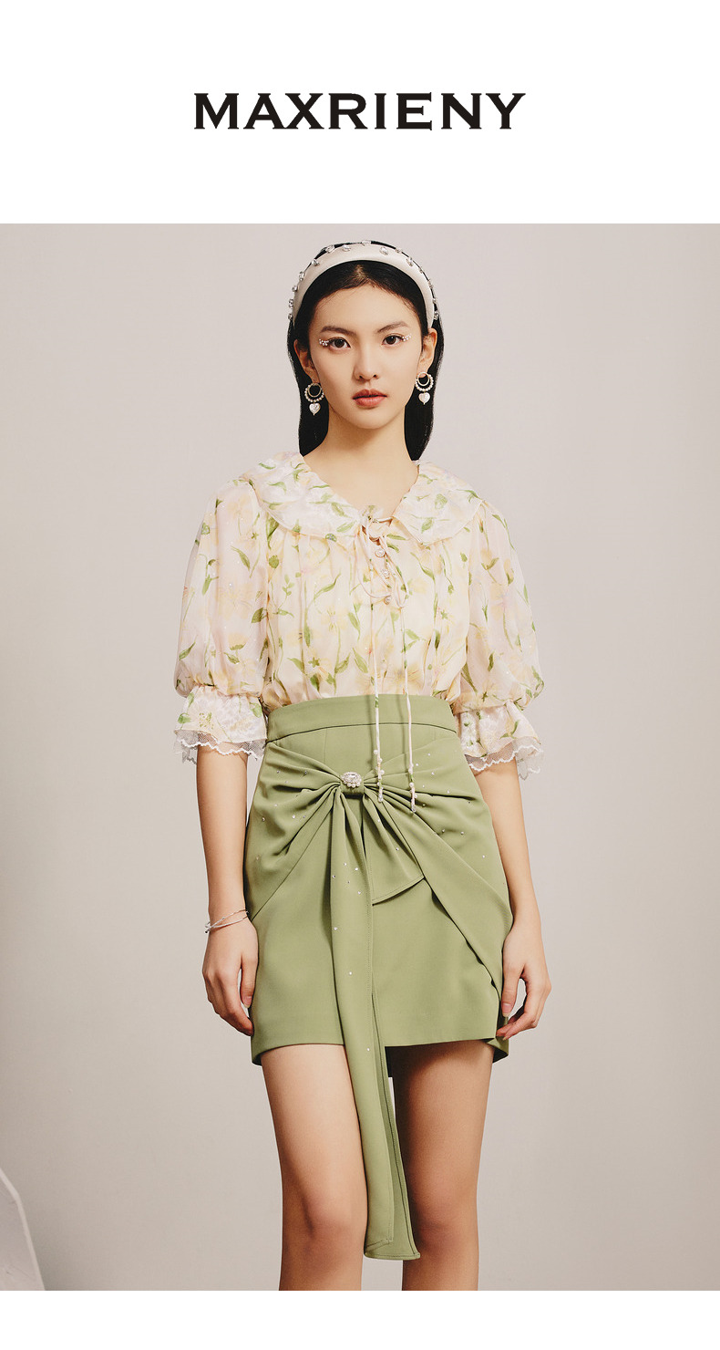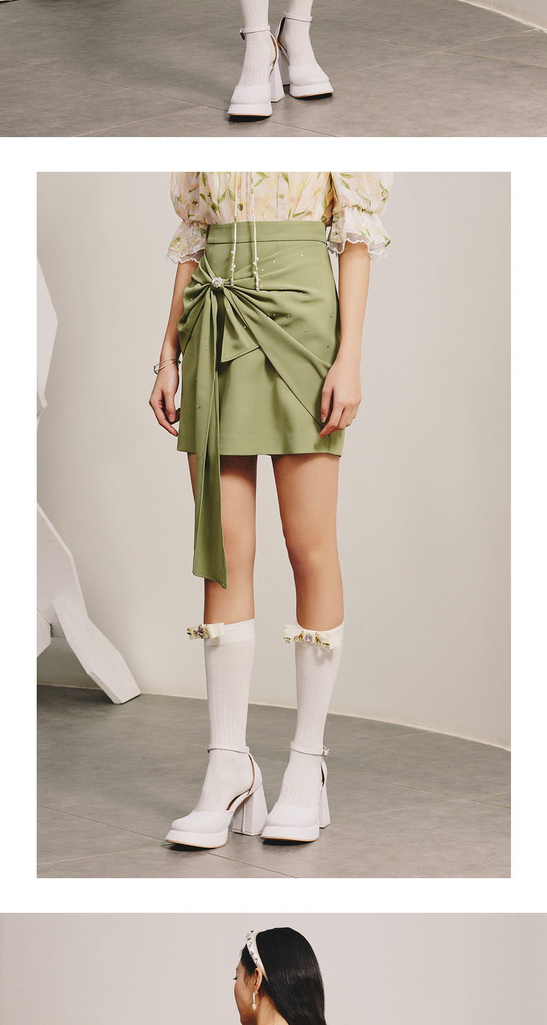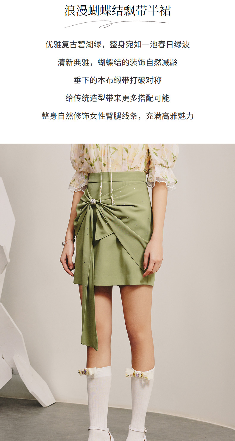 【商场同款】MAXRIENY精致复古感蝴蝶结短裙碧湖绿蝴蝶结飘带半裙(货号:MC88SK070)