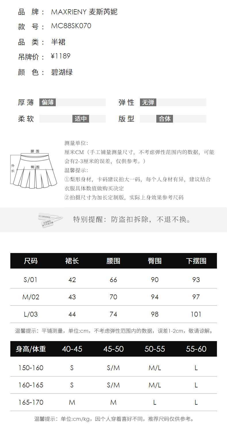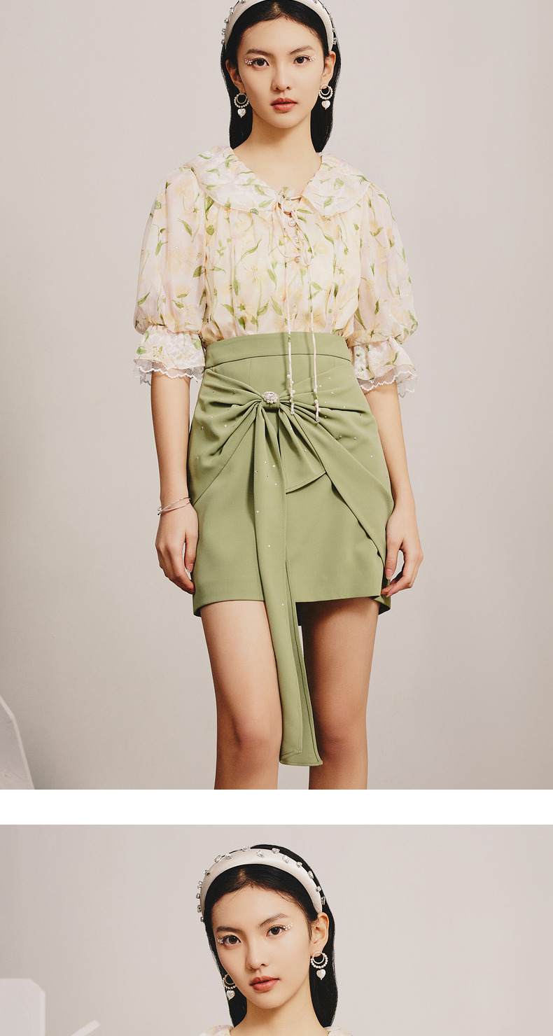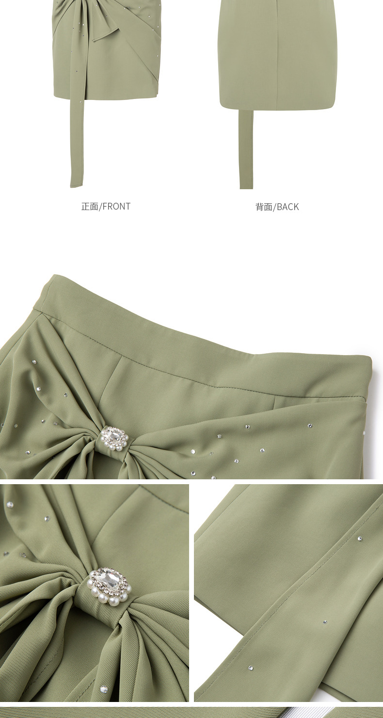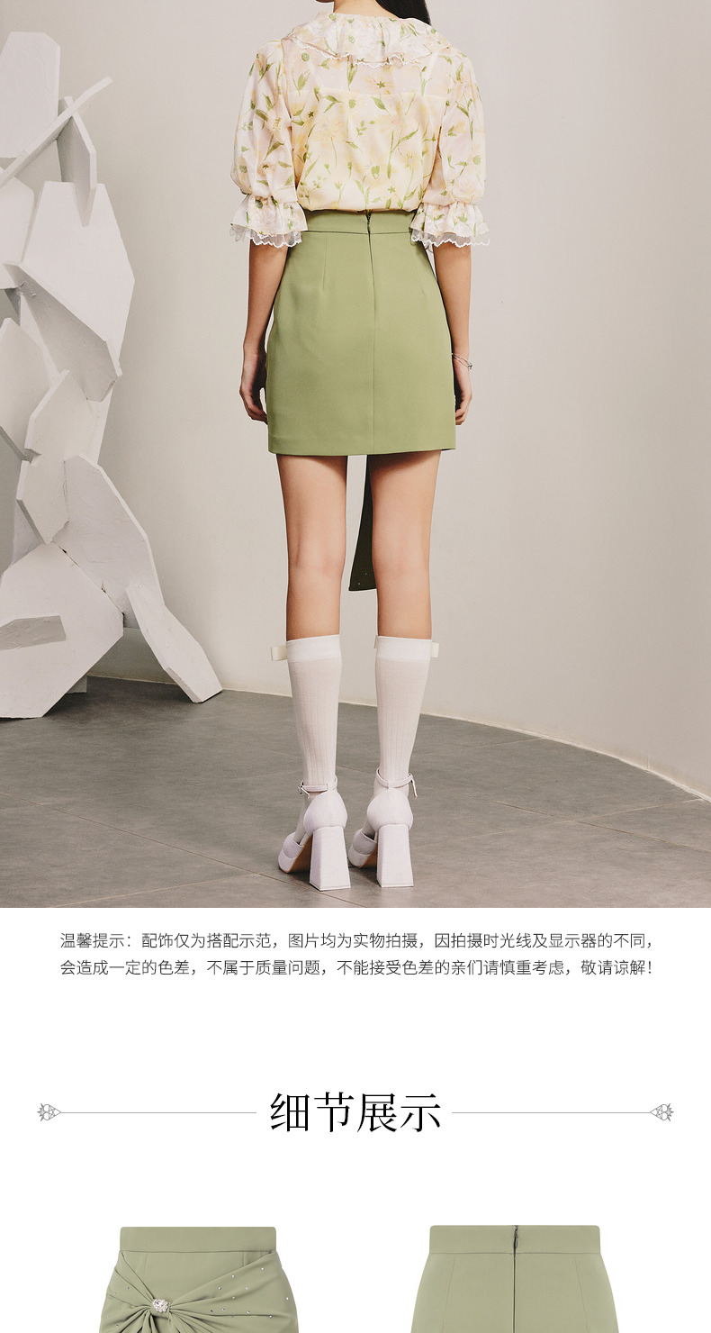 【商场同款】MAXRIENY精致复古感蝴蝶结短裙碧湖绿蝴蝶结飘带半裙(货号:MC88SK070)