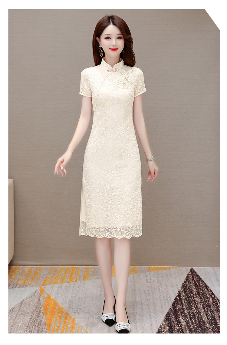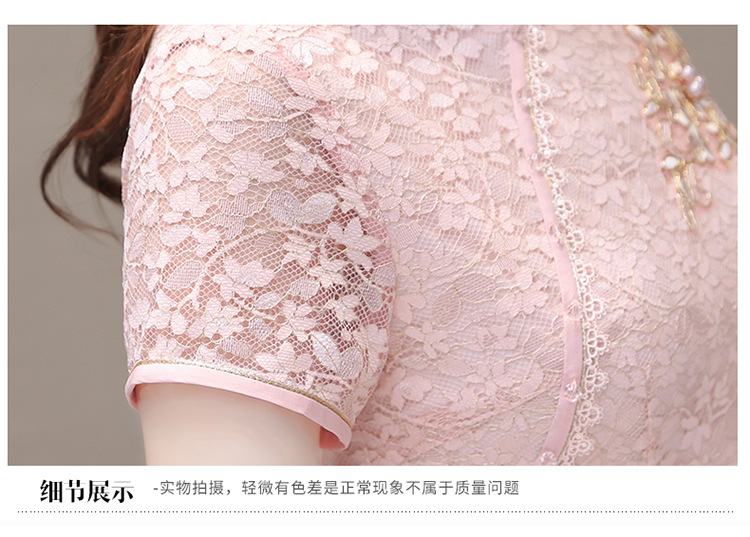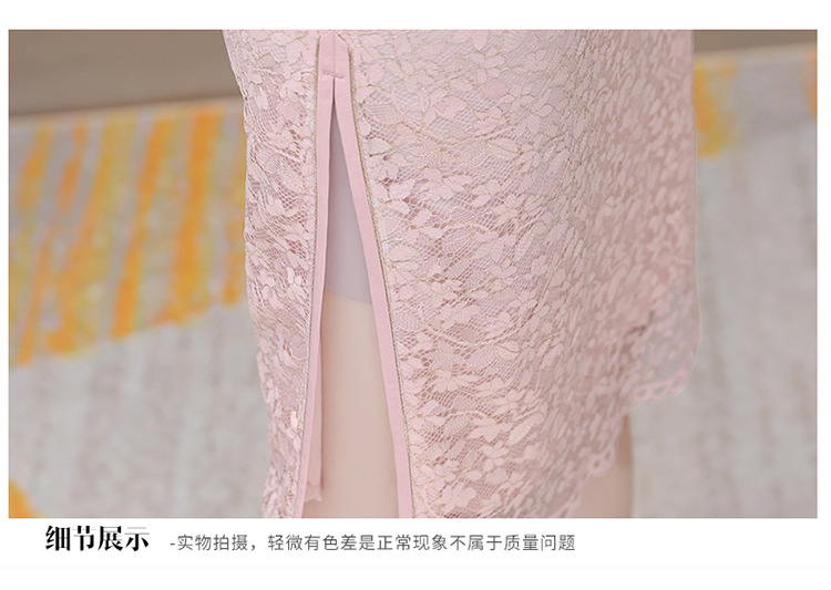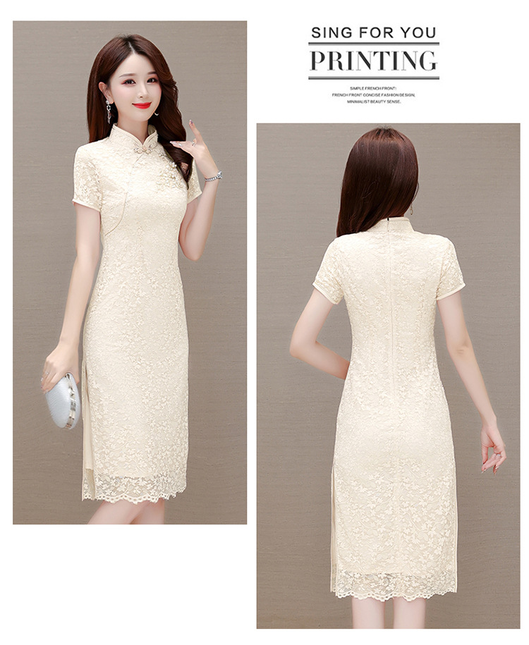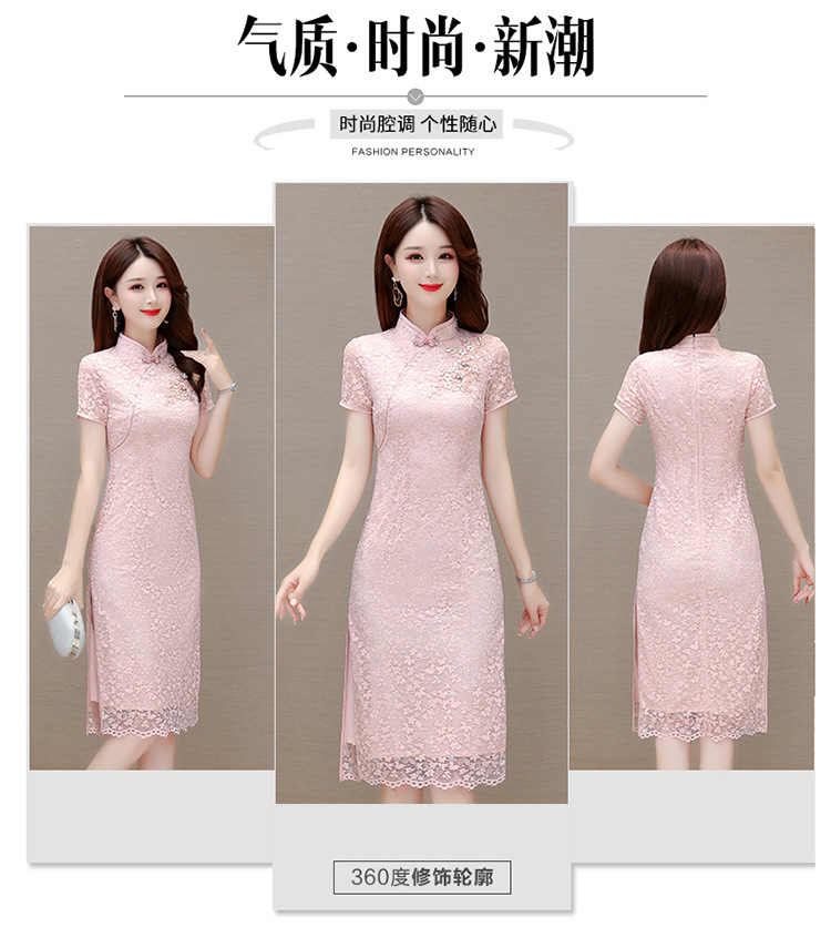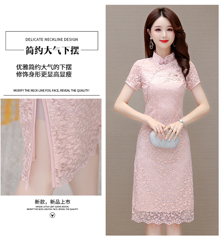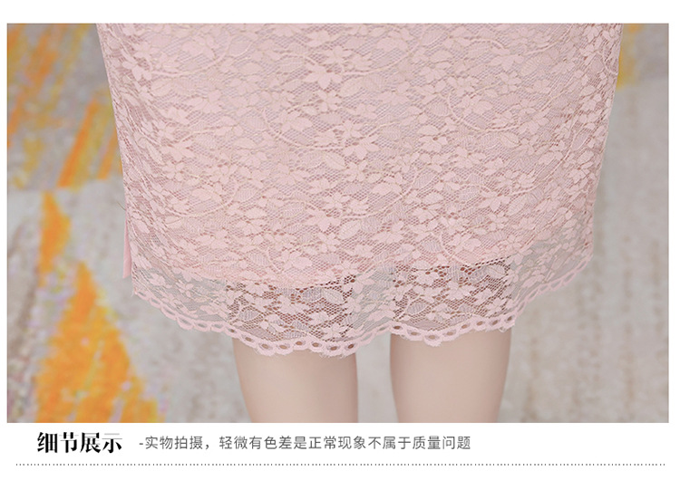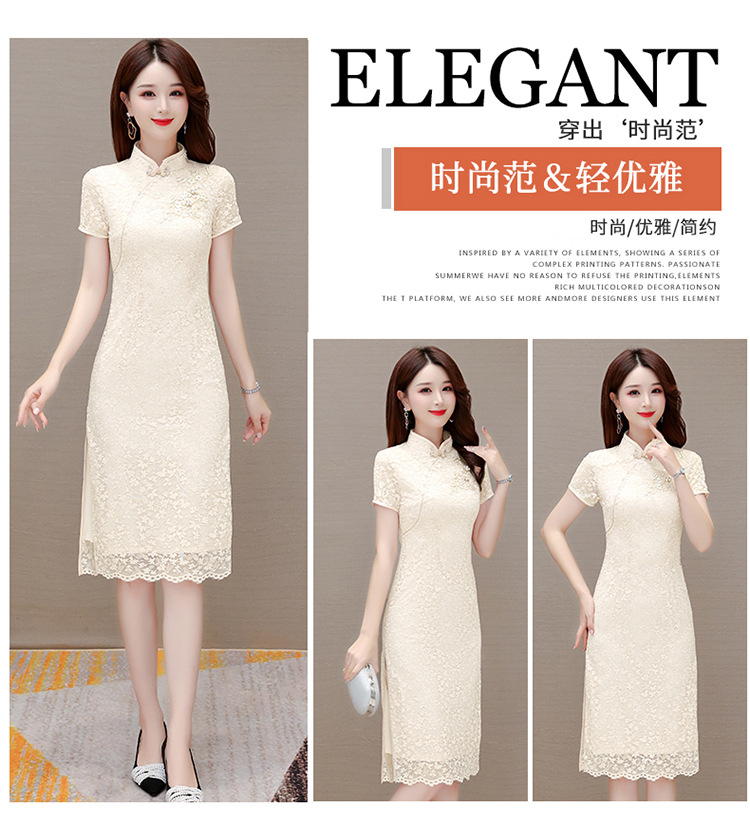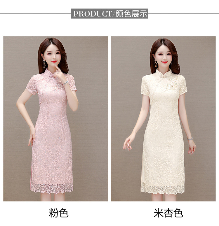 QYMLRX-LZC2320-Y旗袍连衣裙2023年夏季新款蕾丝裙中长款包臀裙纱网短袖A字裙
