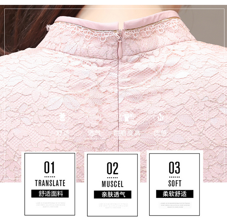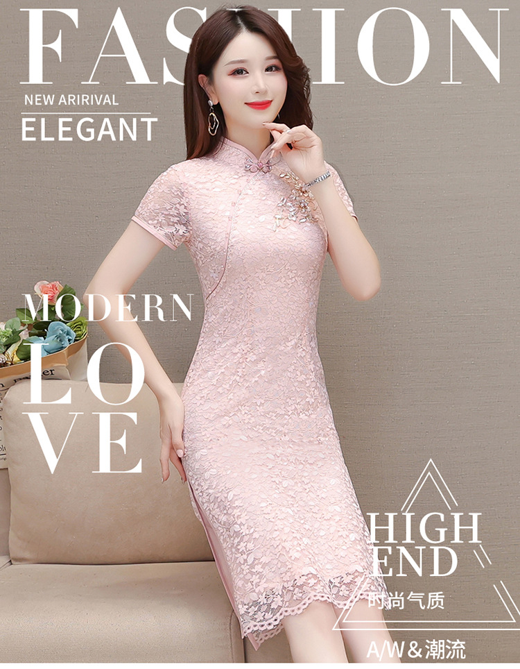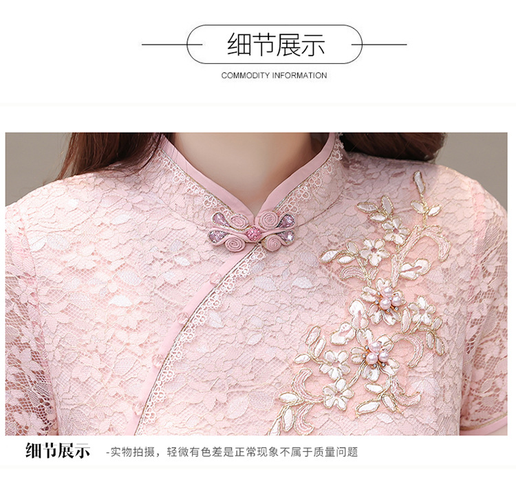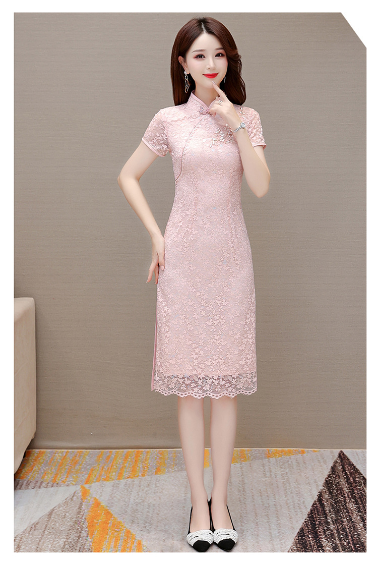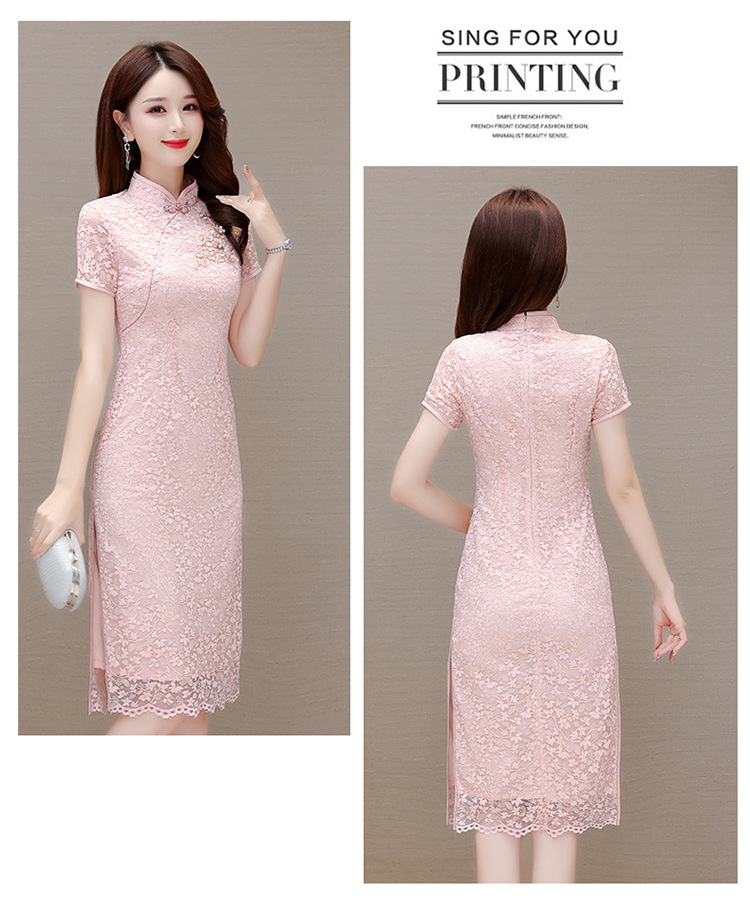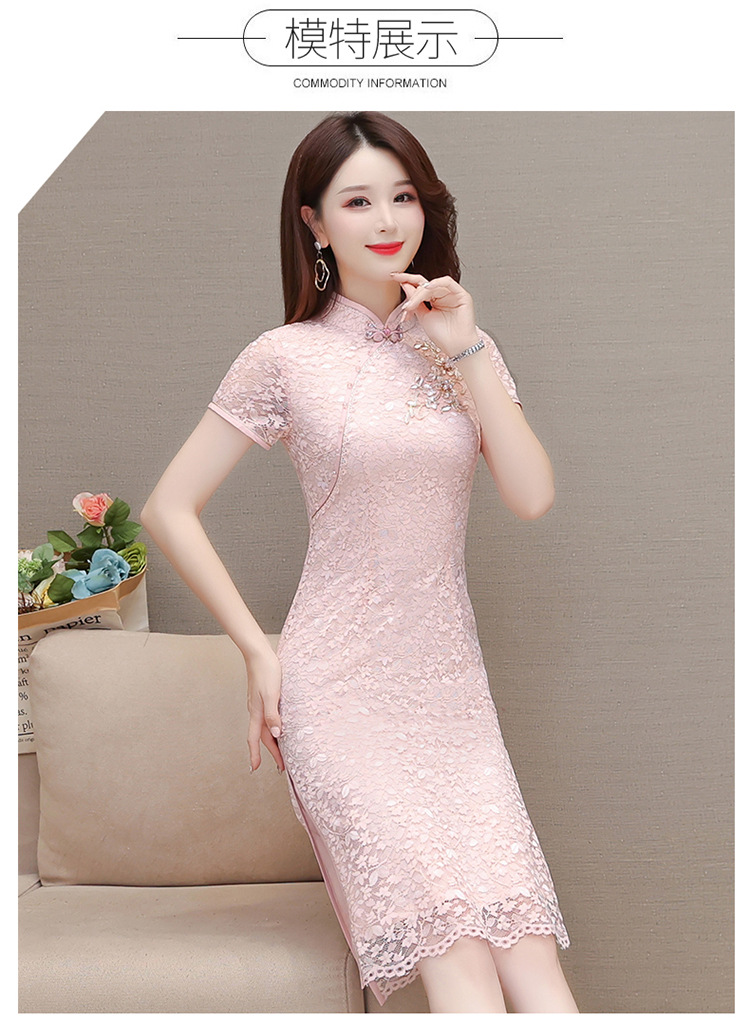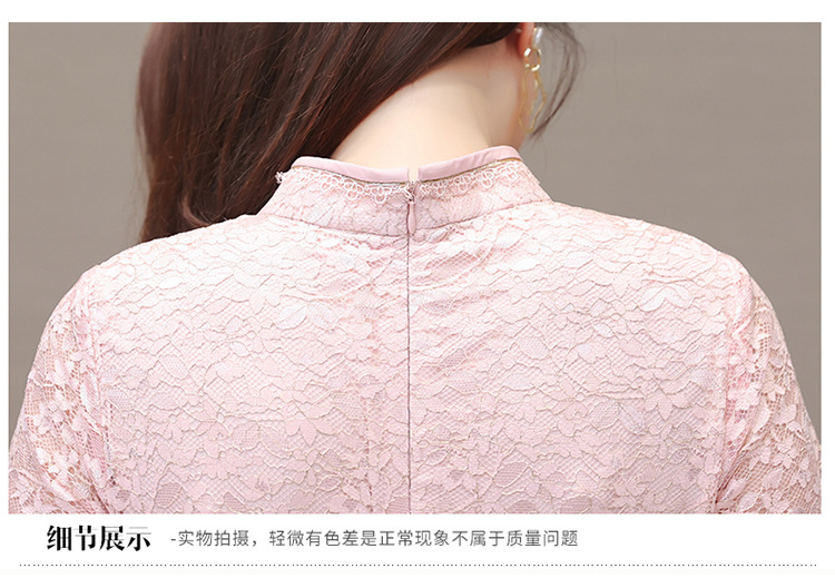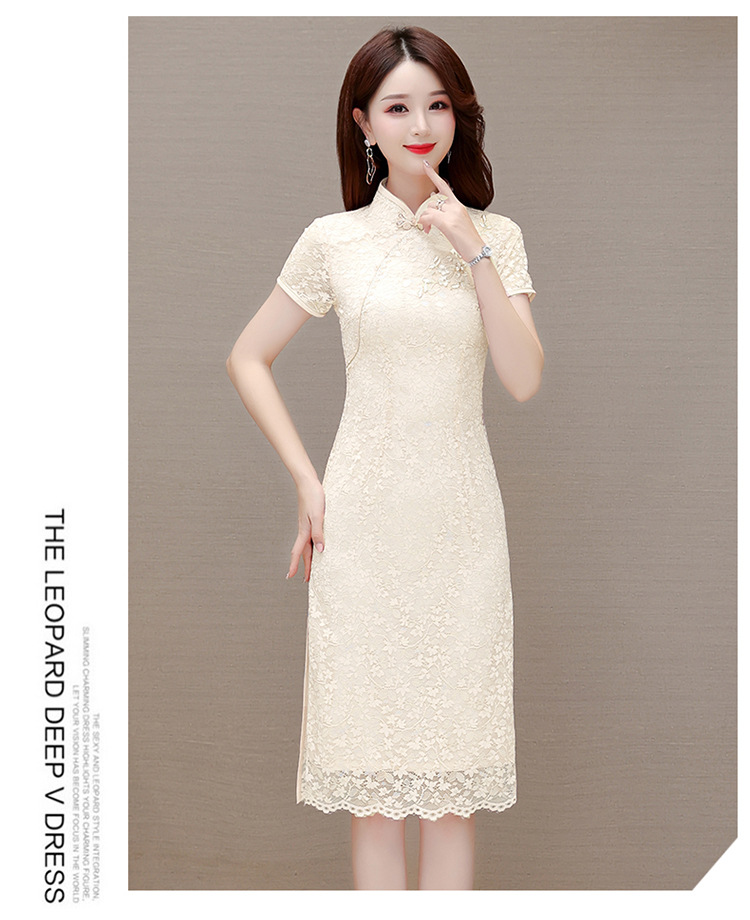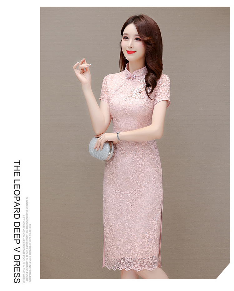 QYMLRX-LZC2320-Y旗袍连衣裙2023年夏季新款蕾丝裙中长款包臀裙纱网短袖A字裙