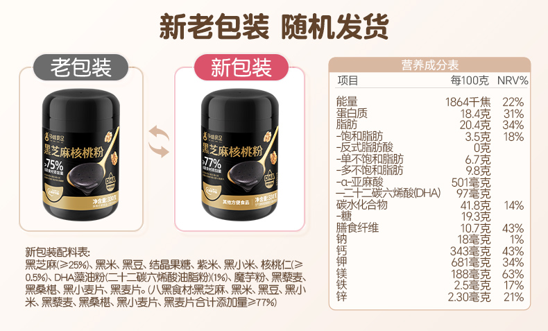 【品牌自营】孕味食足叶酸黑芝麻糊核桃粉孕妇饱腹代餐粉7黑食材孕期营养早餐