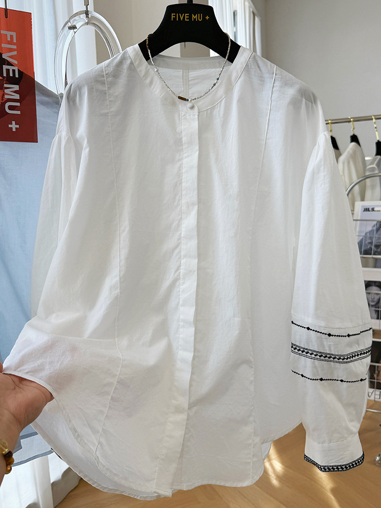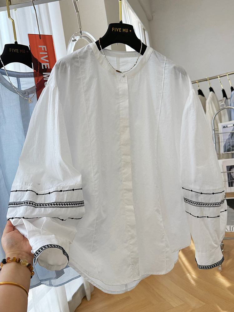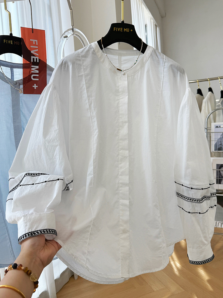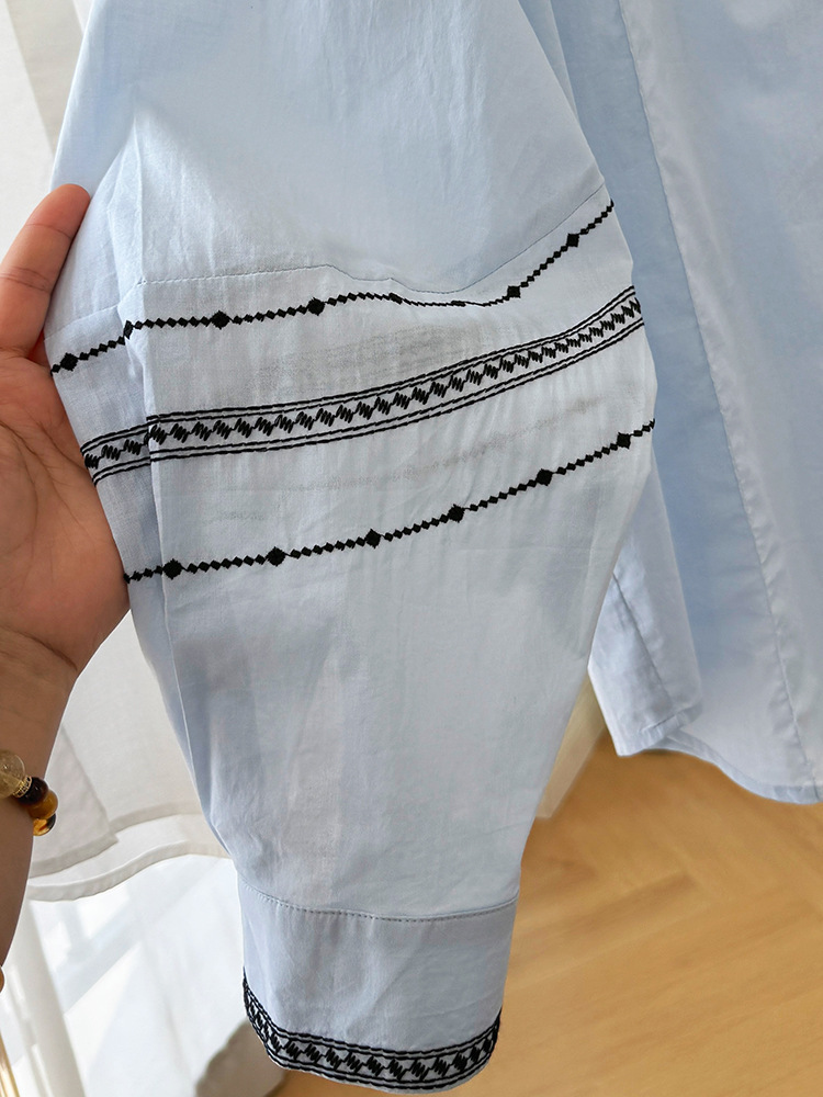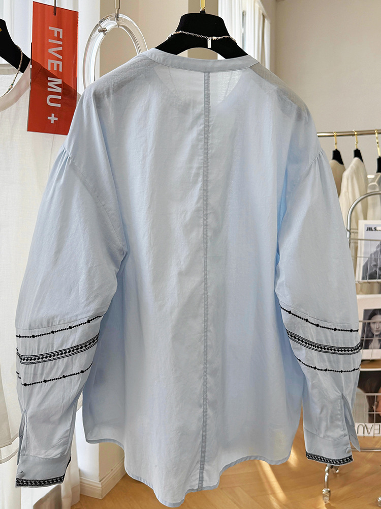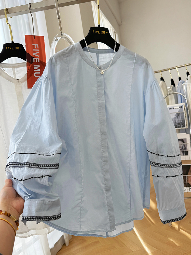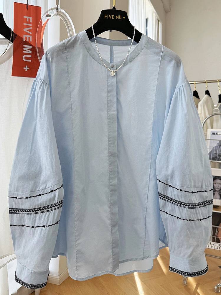 C039-9355高级感重工复古刺绣圆领长袖衬衫女春夏韩系薄款出游防晒小衫上衣