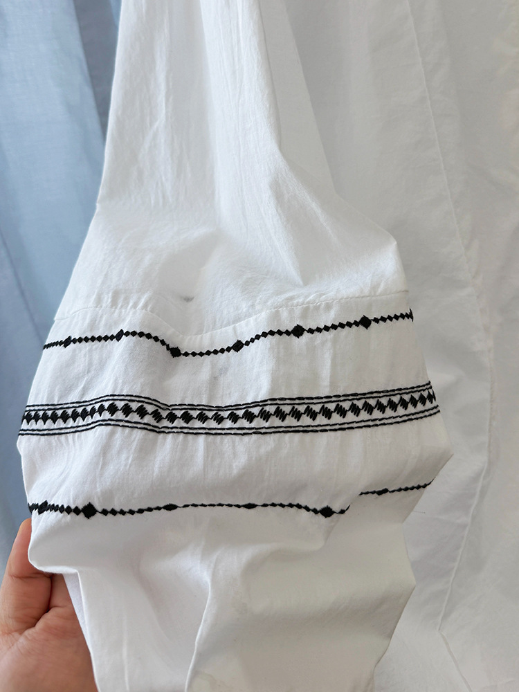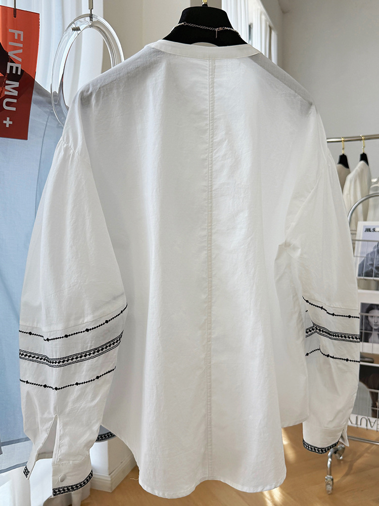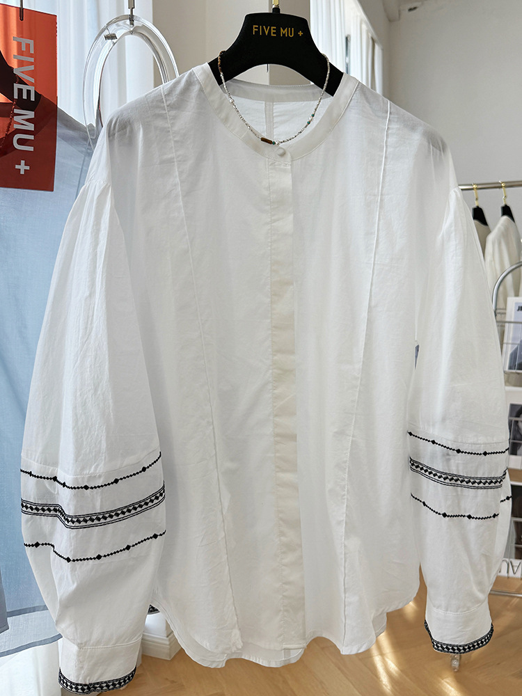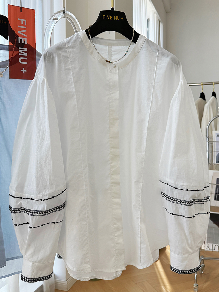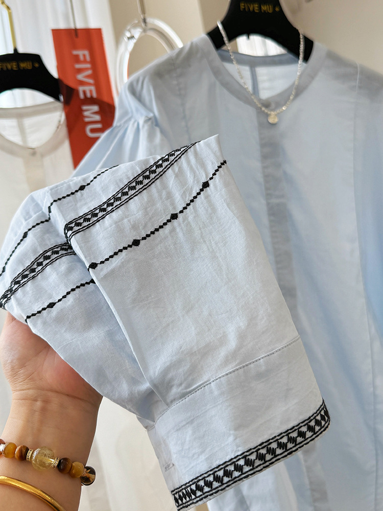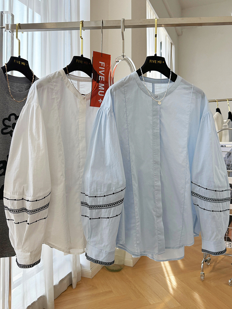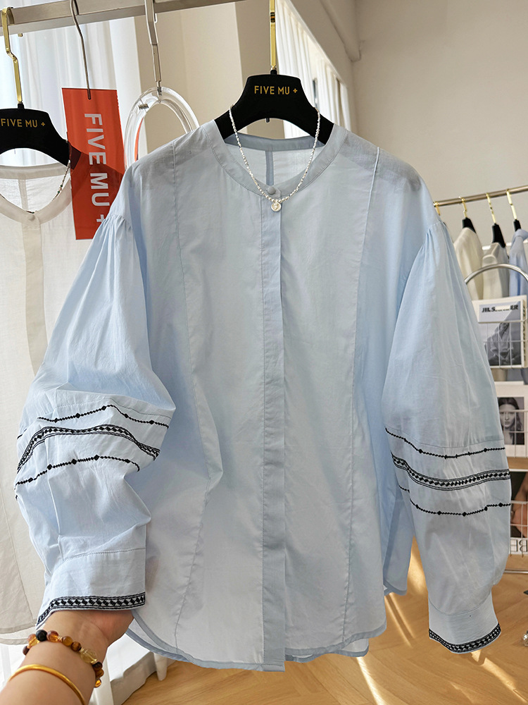 C039-9355高级感重工复古刺绣圆领长袖衬衫女春夏韩系薄款出游防晒小衫上衣