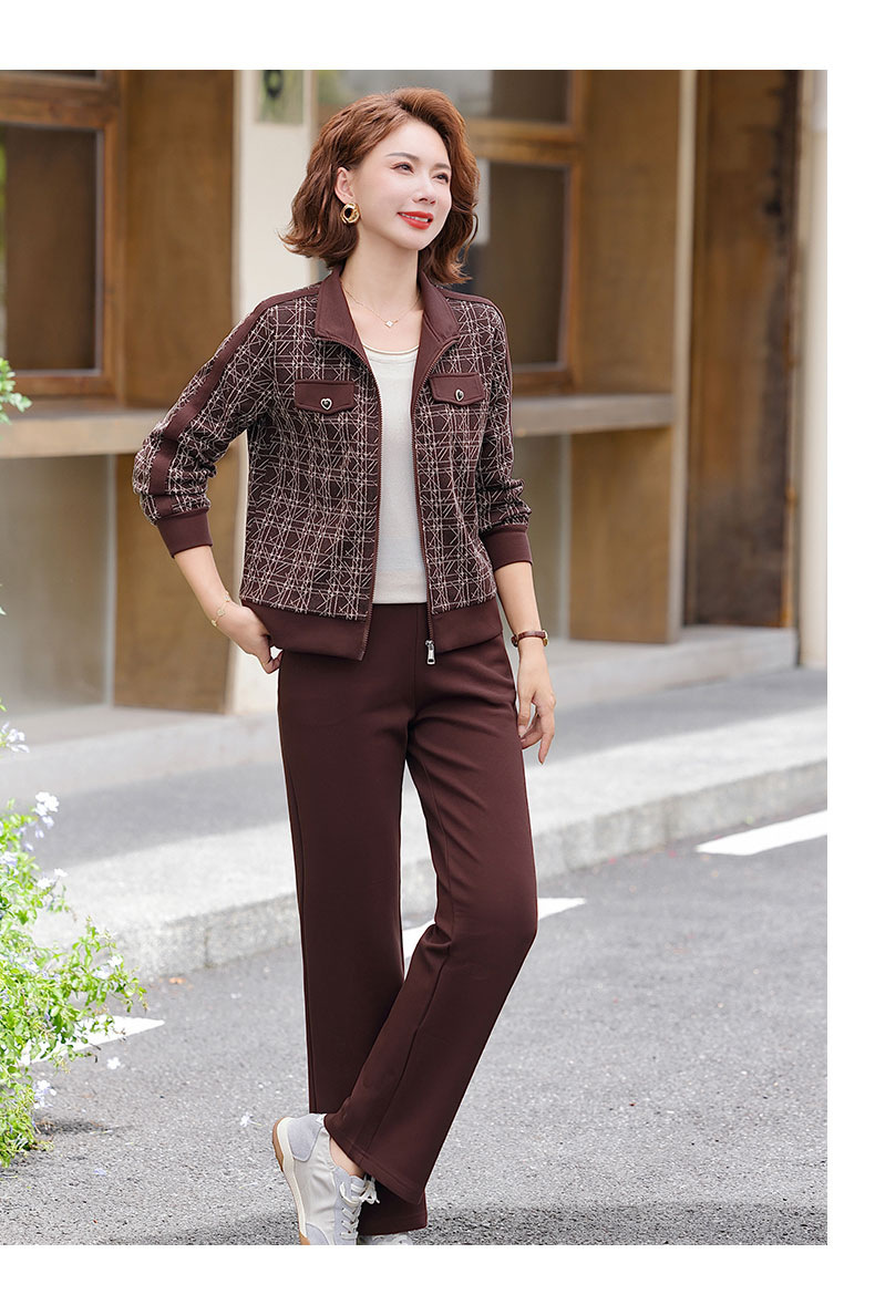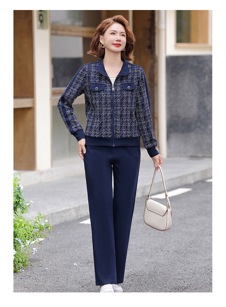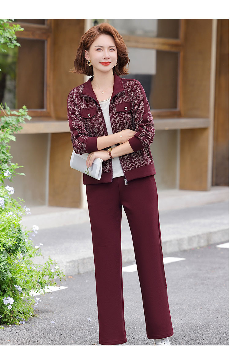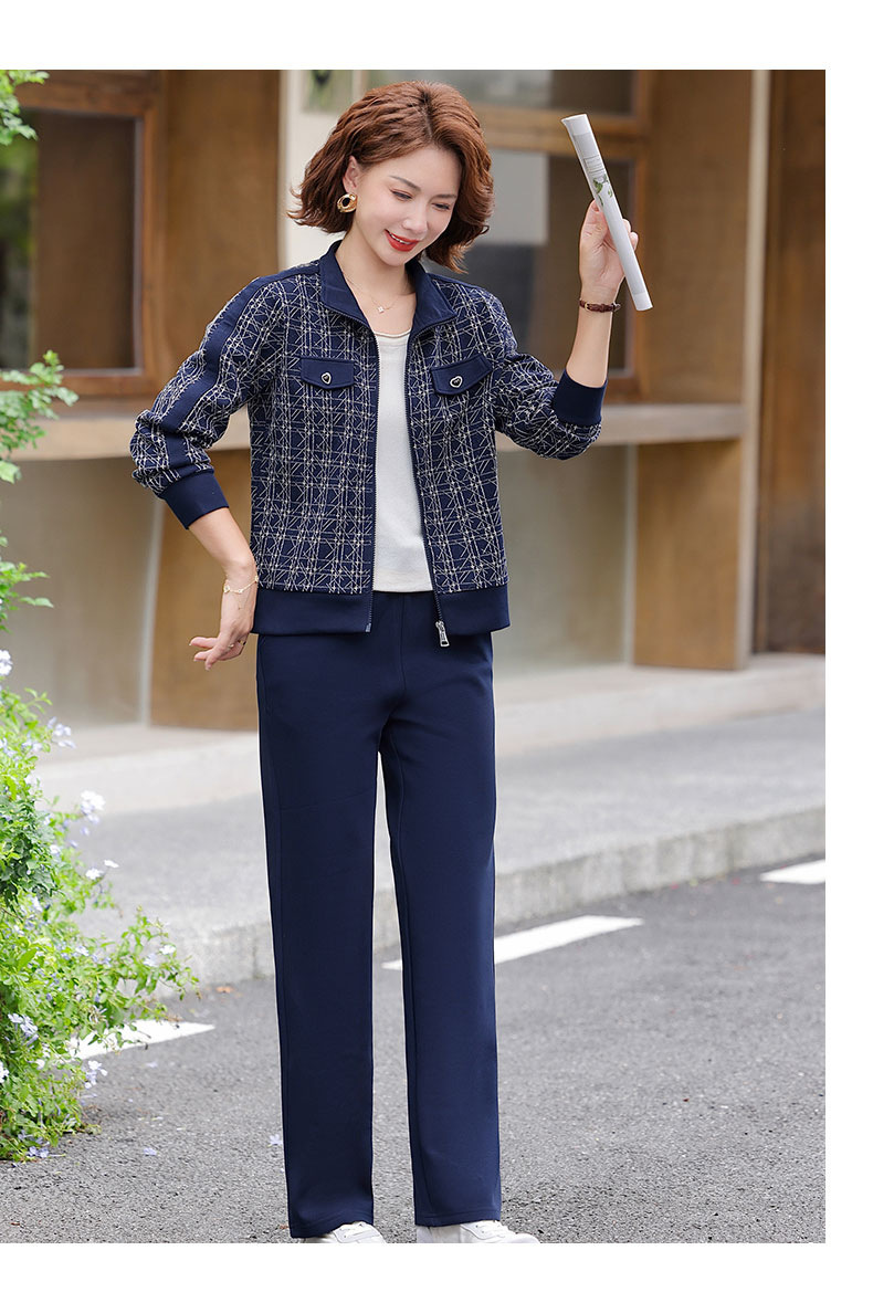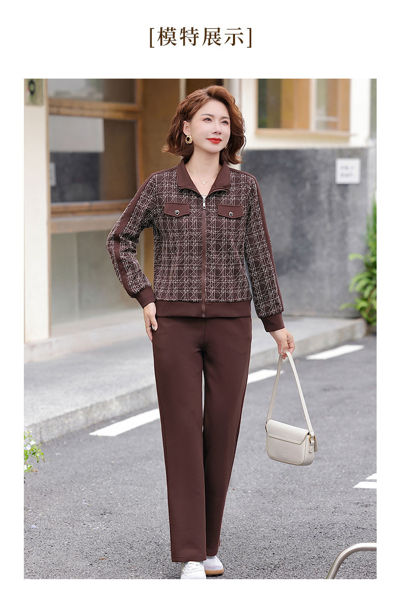 YME-8563洋气妈妈装秋季套装新款长袖运动服外套中老年女装春秋休闲两件套